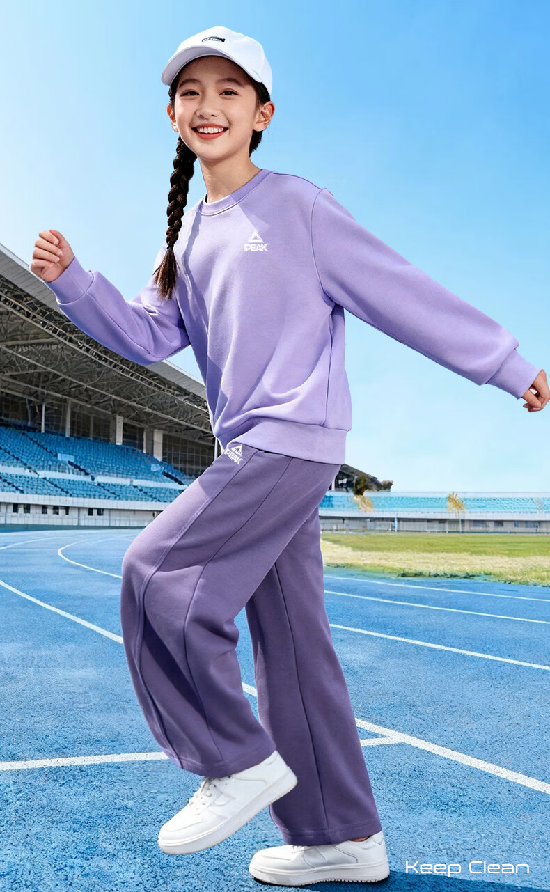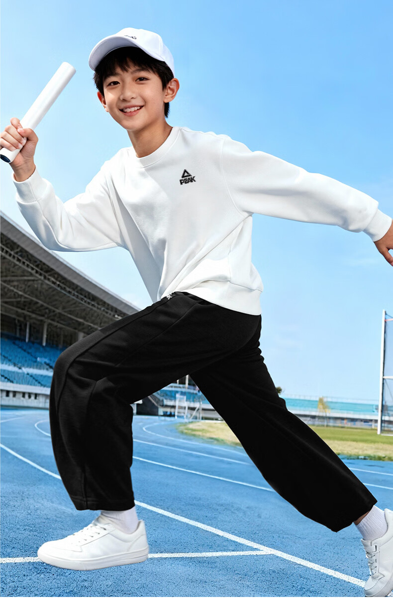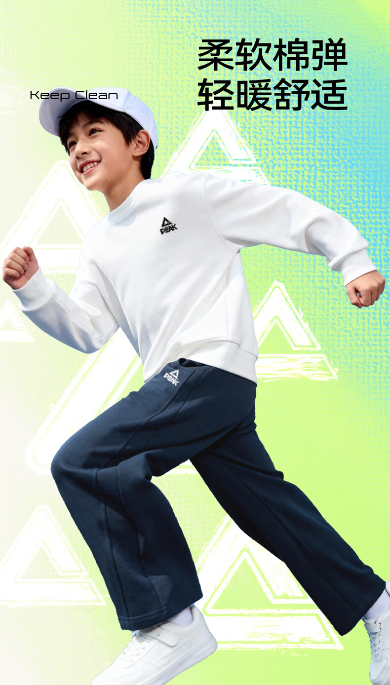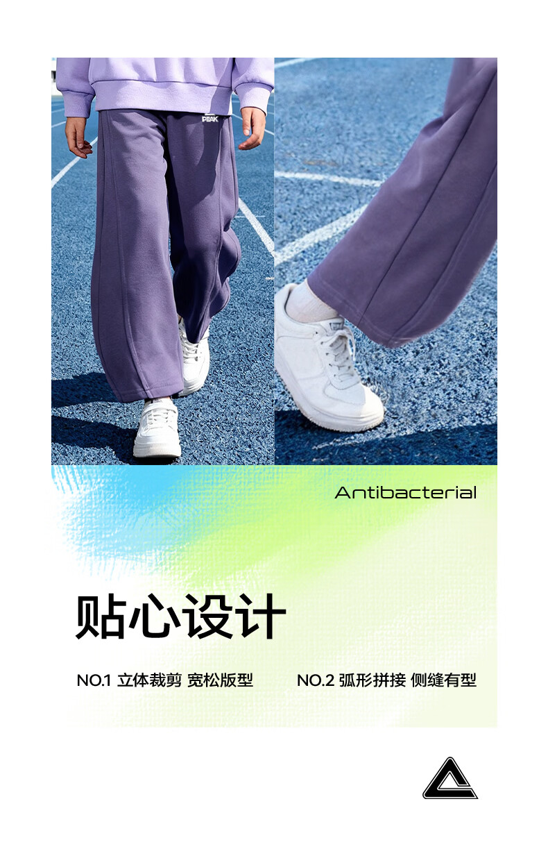 匹克童装儿童裤子春秋2026新款男童薄款运动裤宽松女童弯刀裤春装卫裤 浅花灰/PK标白硅胶K (偏大,建议选小一码) 160