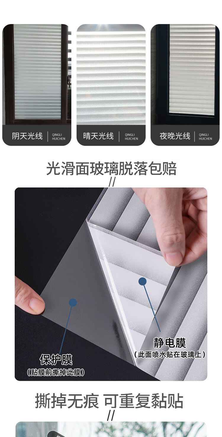 皇昇免胶磨砂玻璃贴膜办公室窗户卫生间防窥不透人玻璃贴纸透光不透明 加厚免胶【黑花藤】防窥隐私好 5米长*90厘米宽【送贴膜工具】