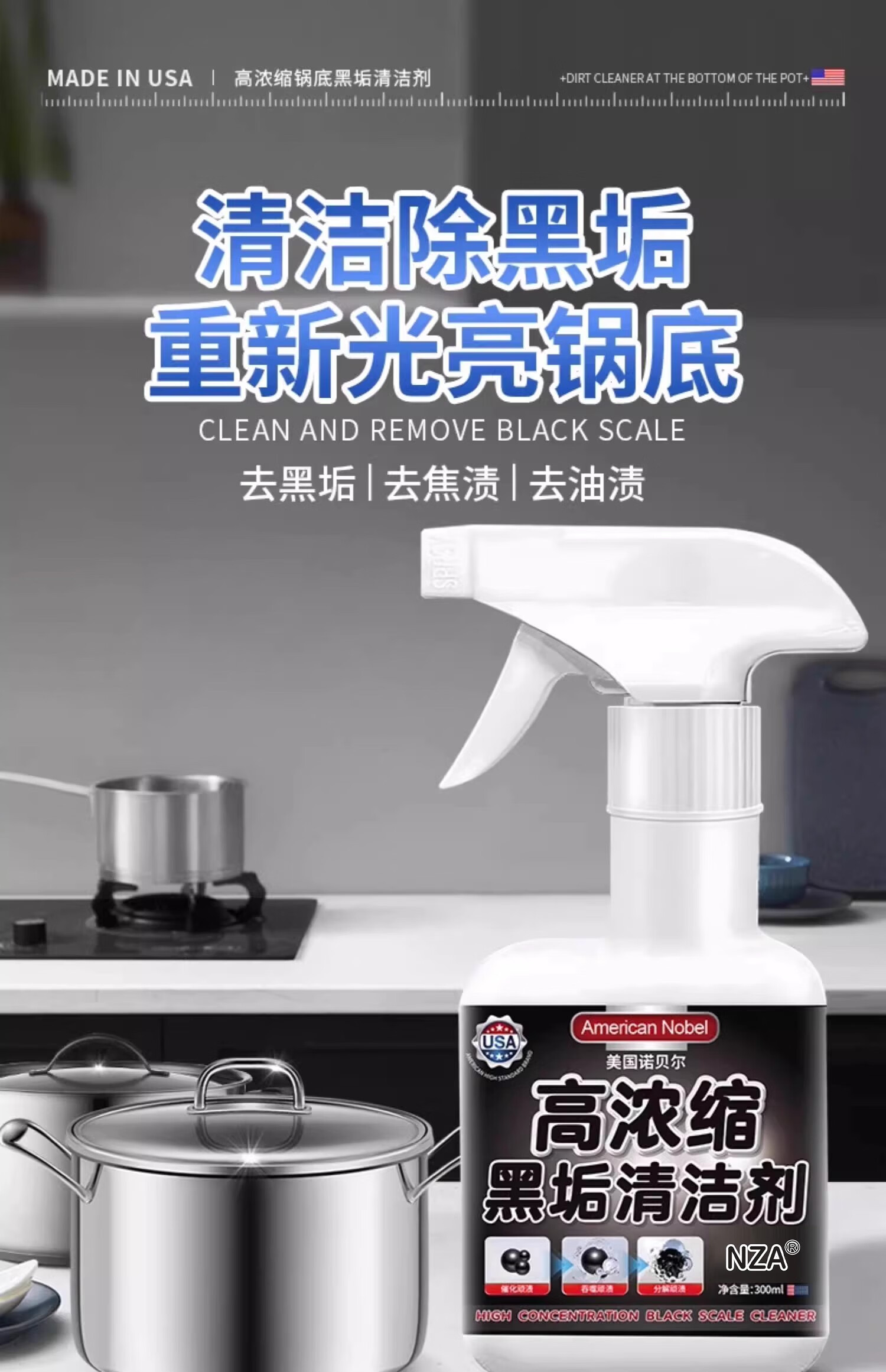 锅底黑垢清洁剂洗锅底黑垢神器黑锅底清洁啫喱油污清洁剂厨房重油 2瓶优惠装【89%顾客选择】*