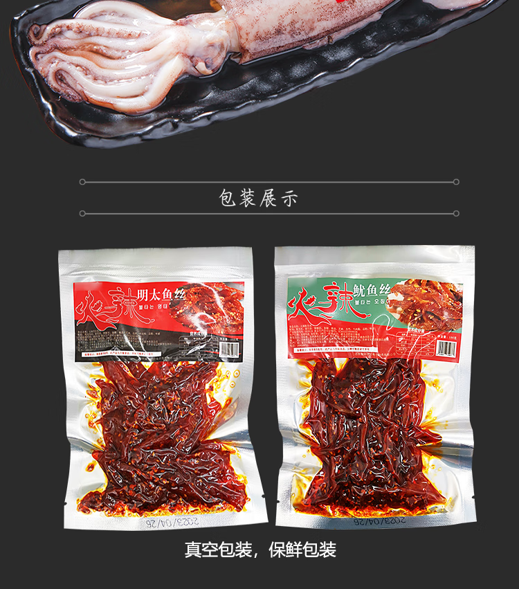 牛味坊火辣鱿鱼丝香辣明太鱼丝100g休闲海鲜即食零食延边朝族鱿鱼 火辣鱿鱼丝1袋