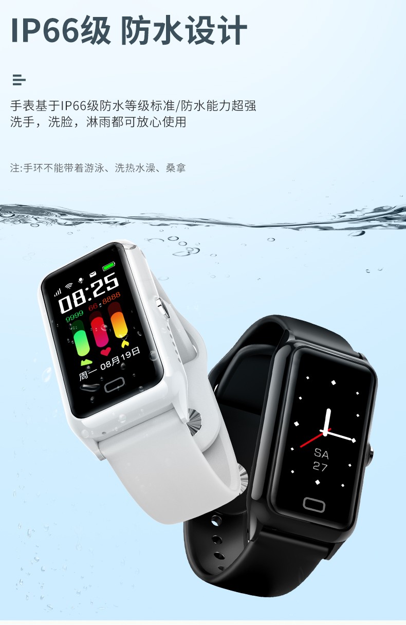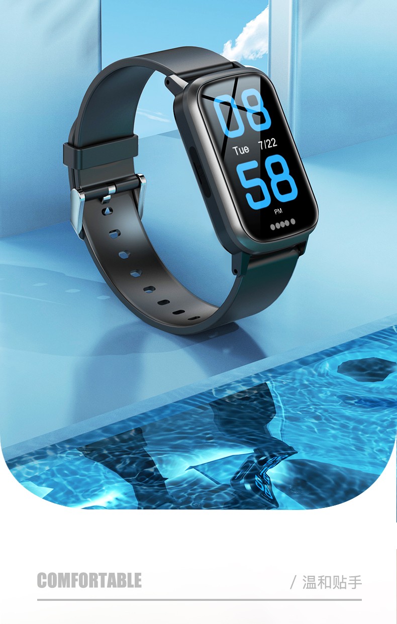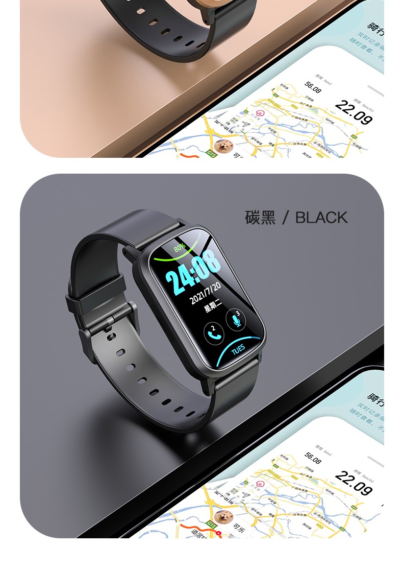 莱思帝HK85智能手表健康监测健身跑步IP68防水防汗长续航蓝牙电话AI语音助手消息提示运动手环 黑色