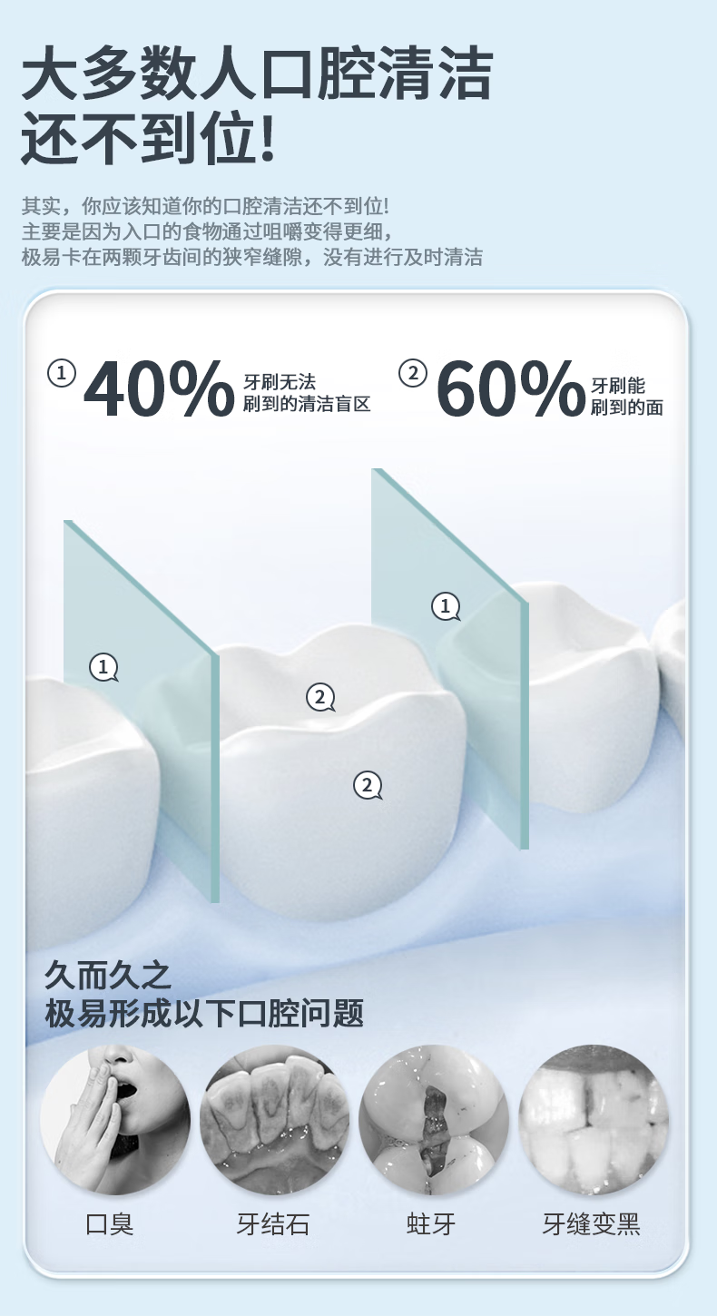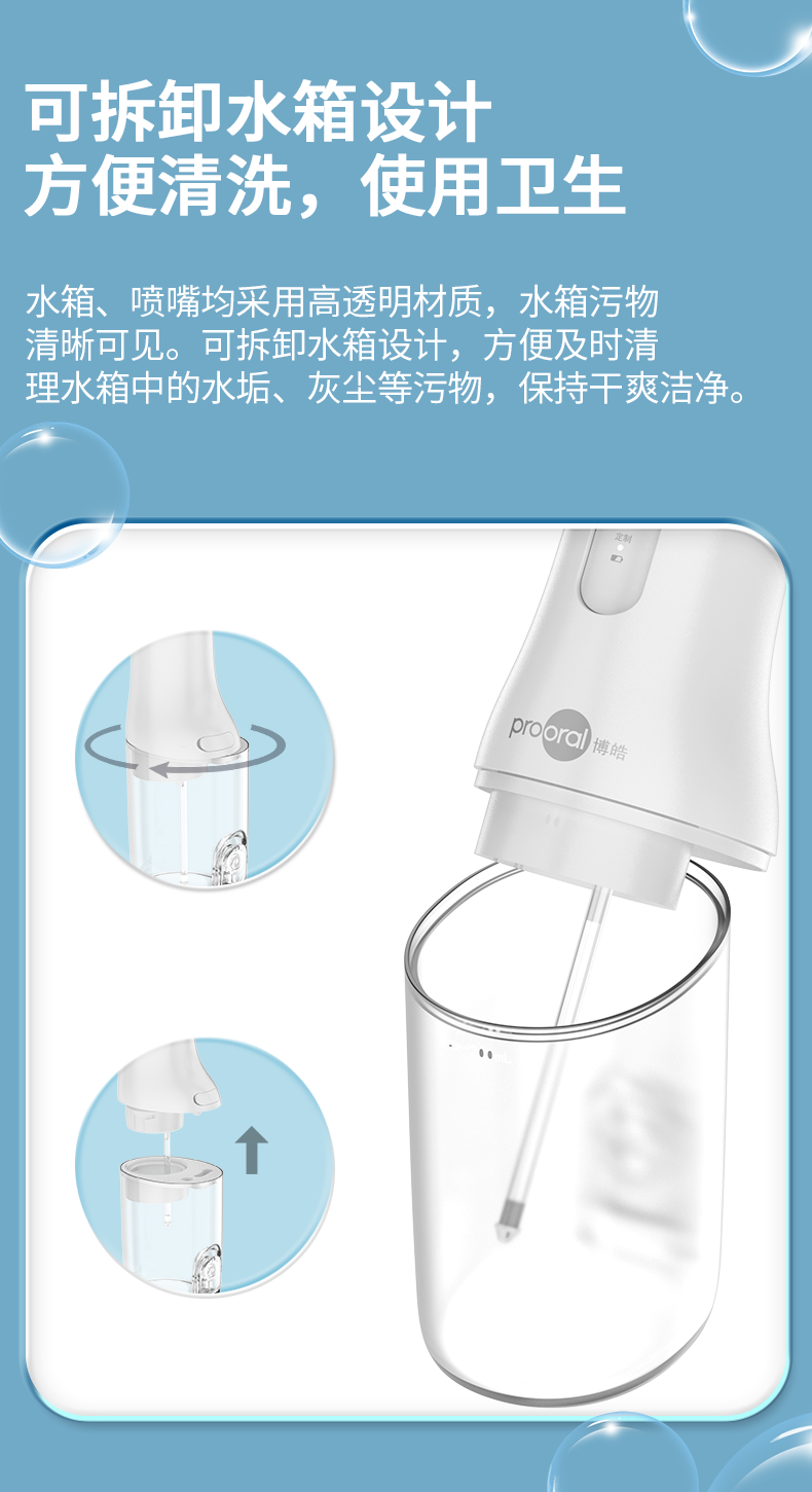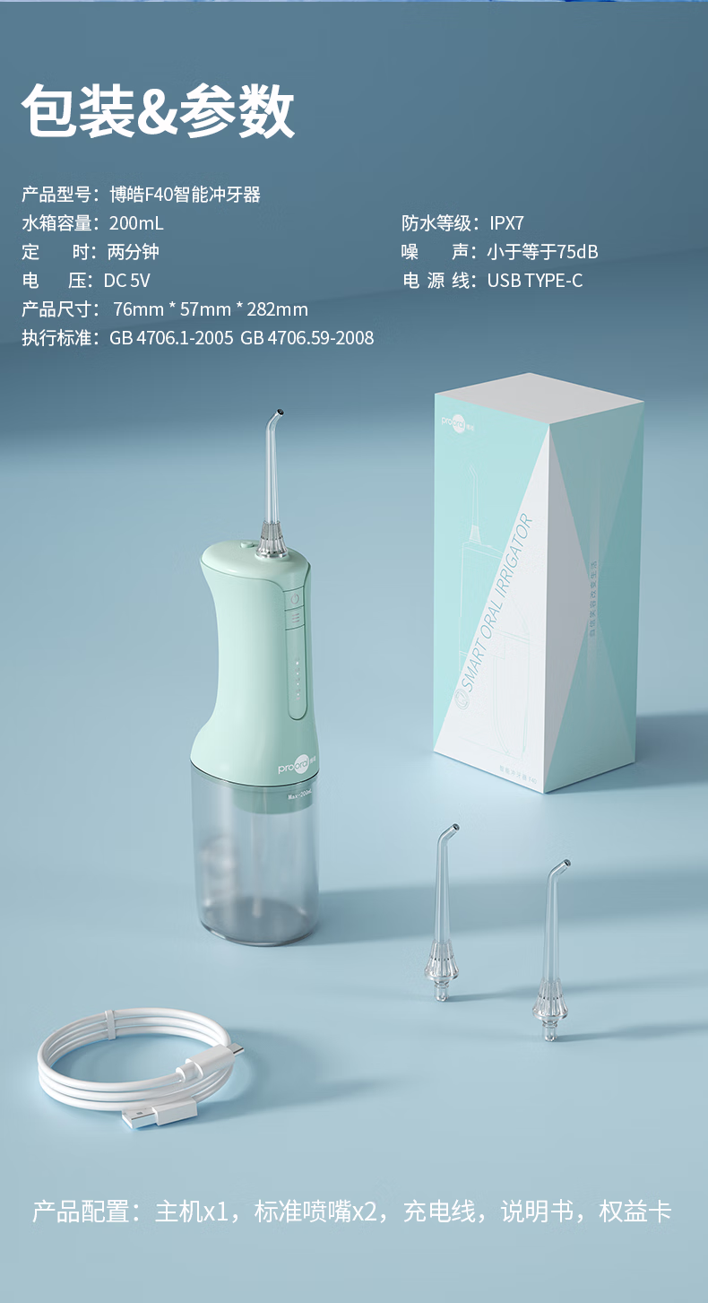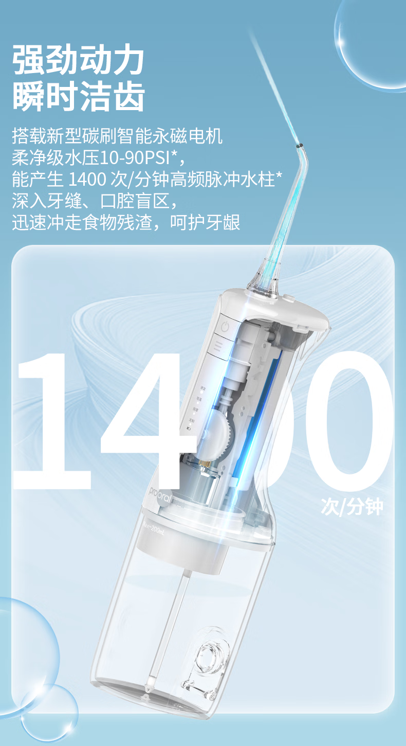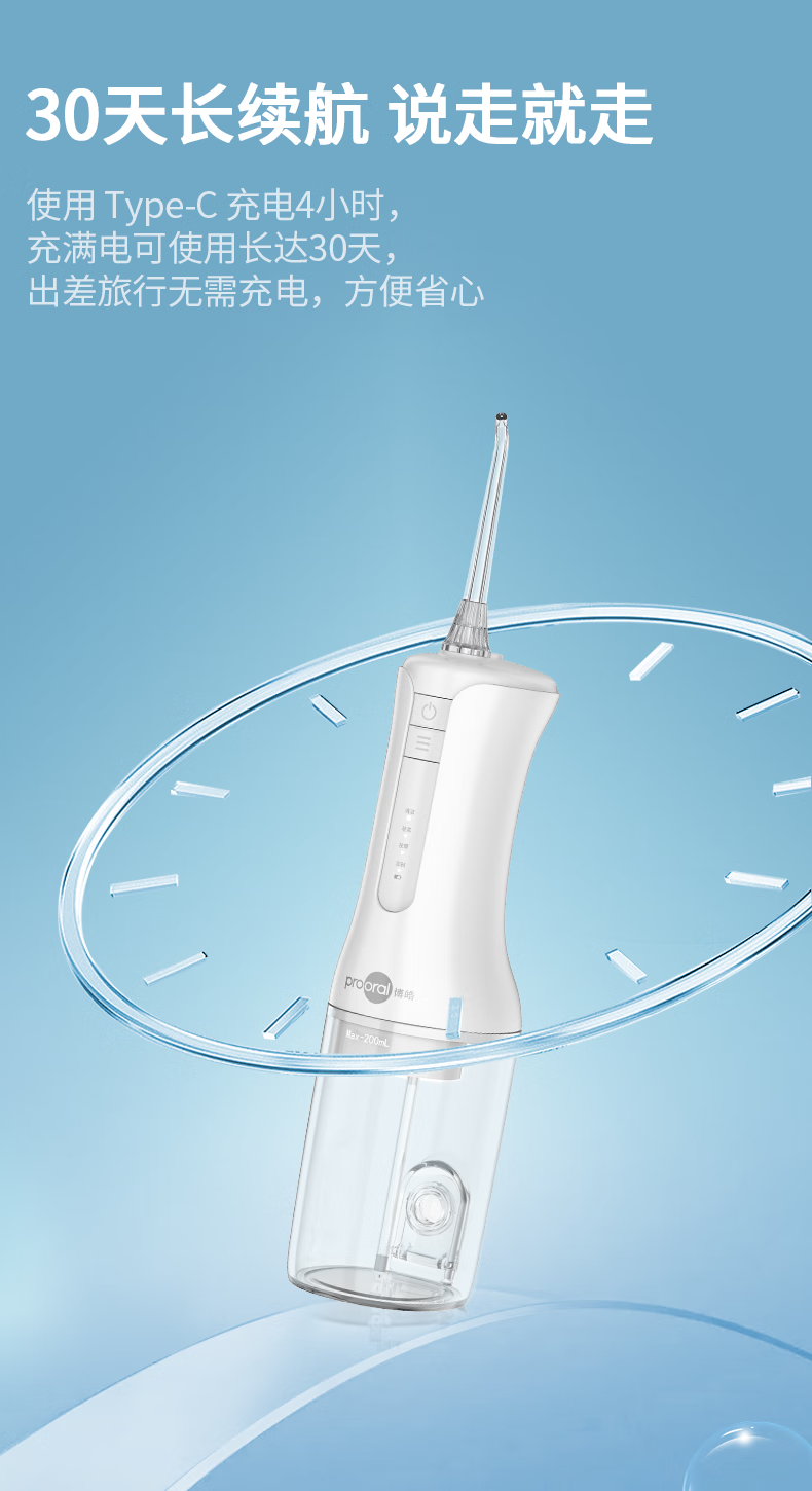 博皓(prooral)冲牙器电动洗牙器冲洗器牙齿清理器家用牙垢去除工具便携水牙线大水箱版洁牙器牙周炎正畸实用礼物 象牙白