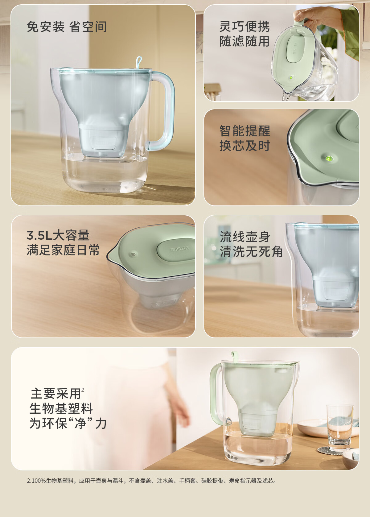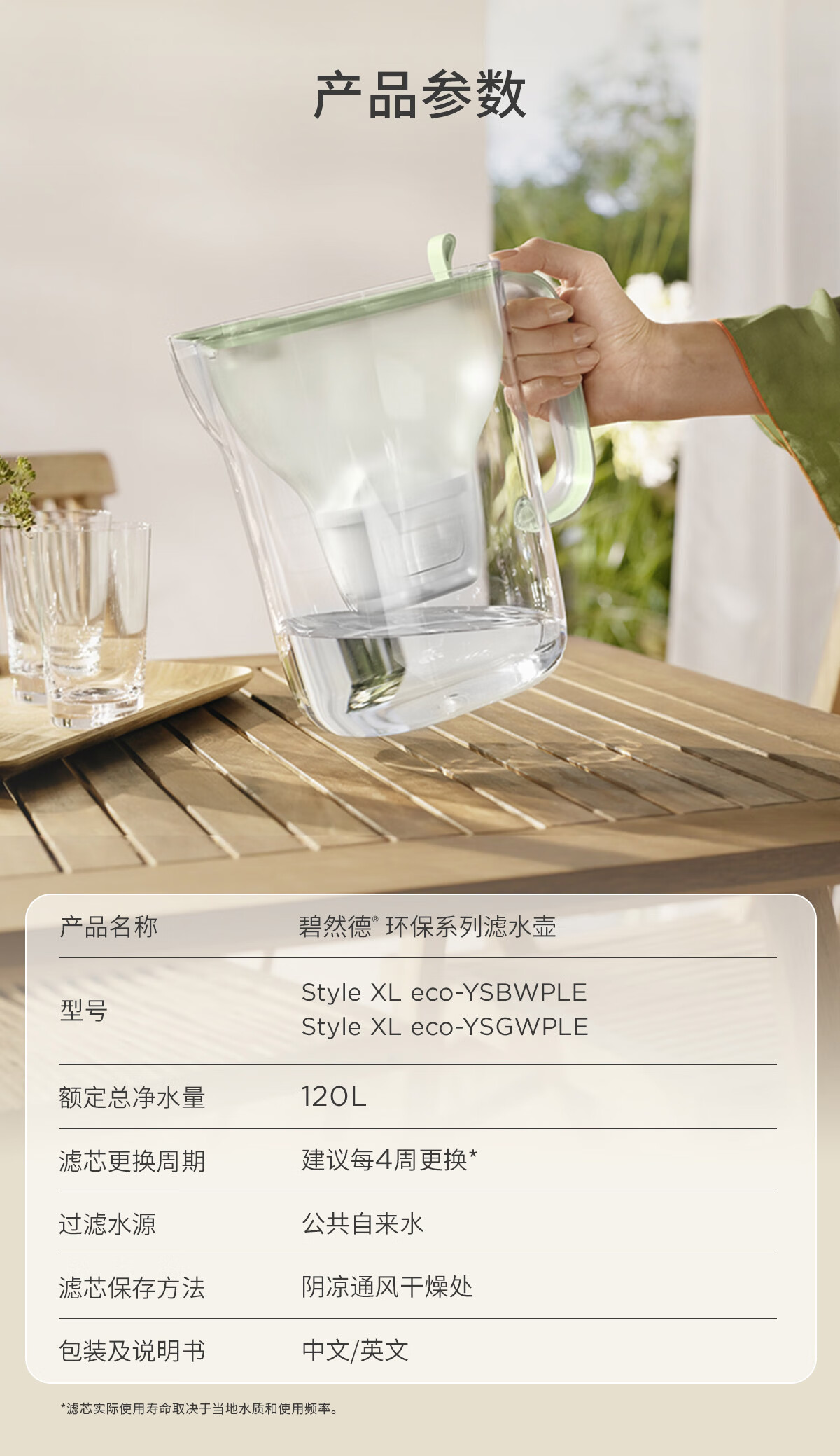 碧然德【新款上市】家用滤水壶 净水壶 Style eco系列 3.5L(冰川蓝)+PRO版滤芯12枚 环保加固包装