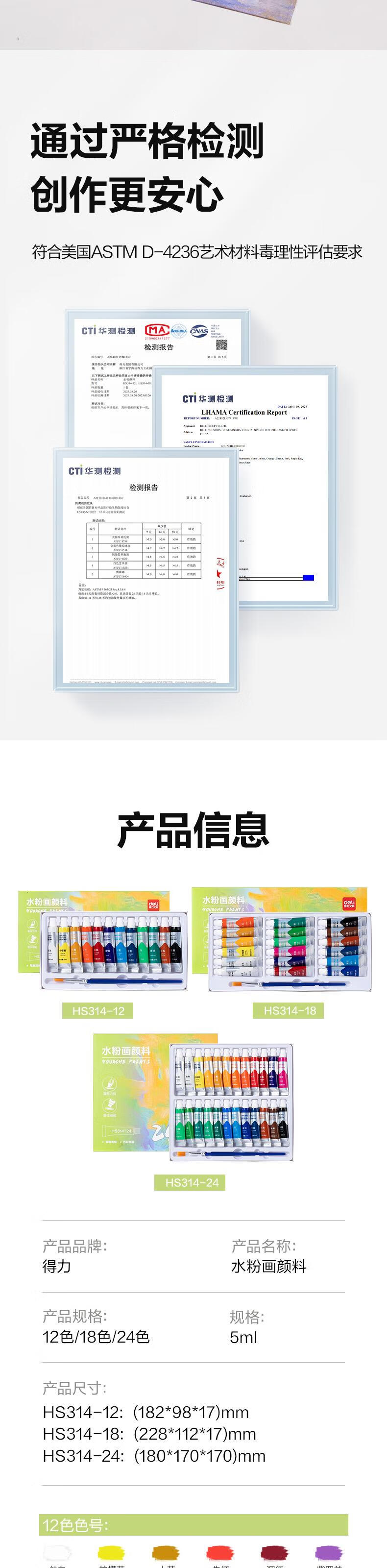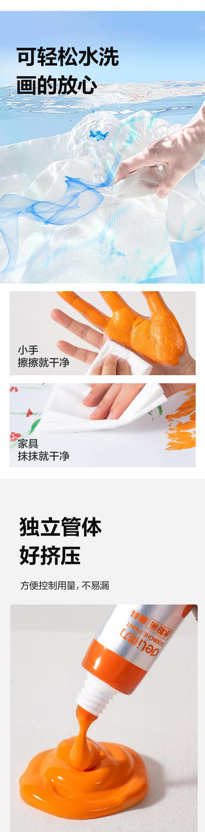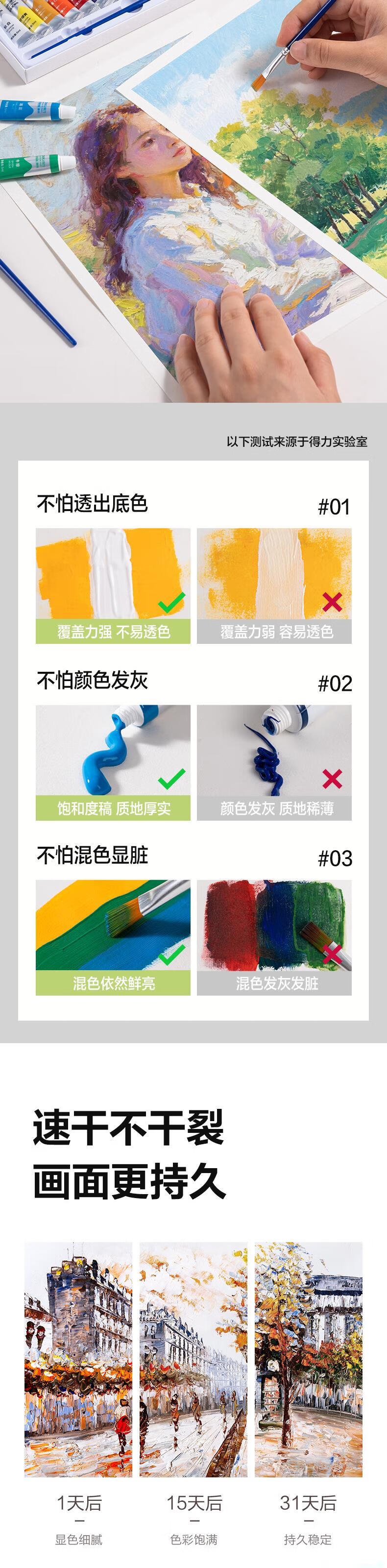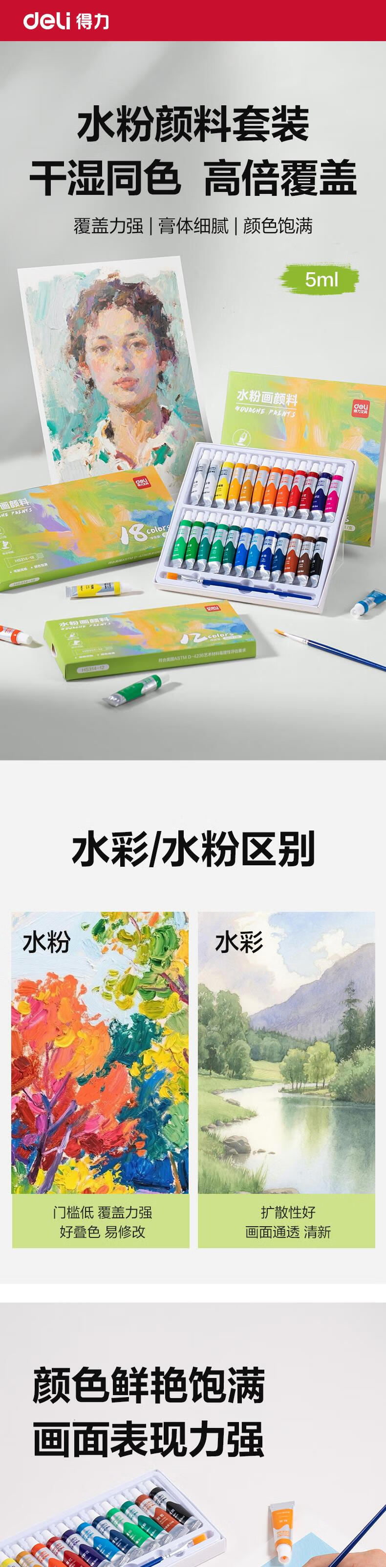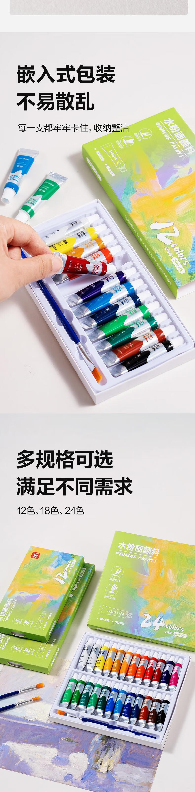 得力水粉颜料24色5ml带画刷画画美术专用水粉画学生儿童绘画考试涂鸦男孩女孩礼物彩绘套装HS314-24