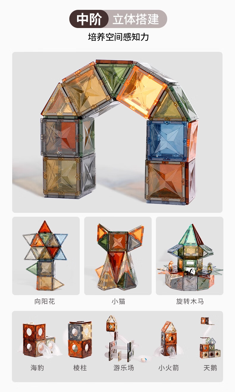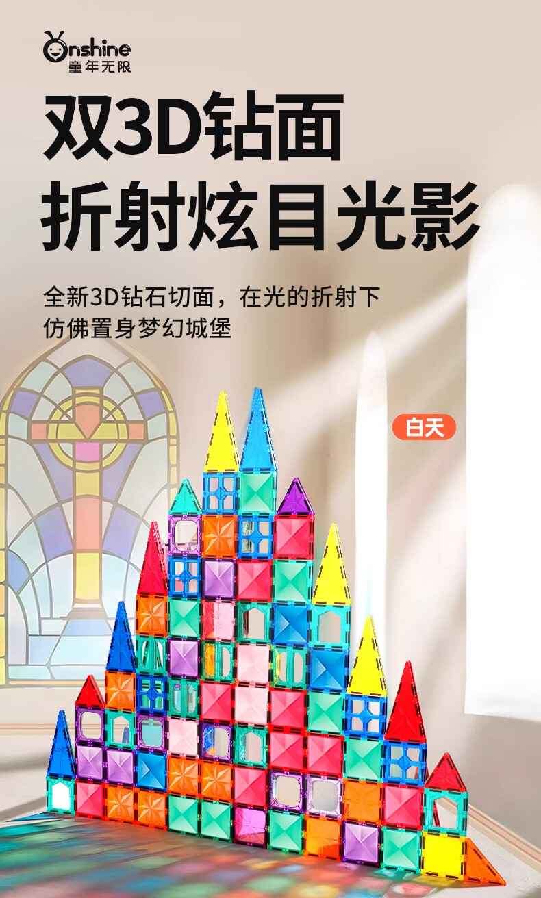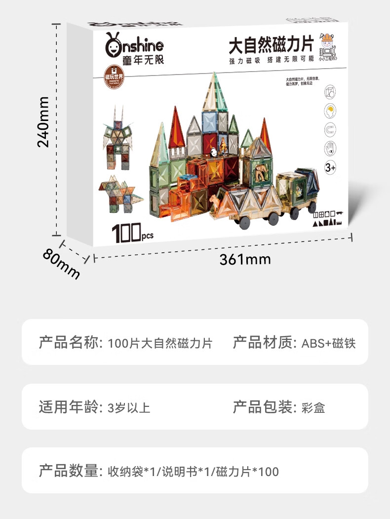 童年无限儿童磁力片积木拼图智力开发男女孩3岁8益智玩具-新升级大自然100
