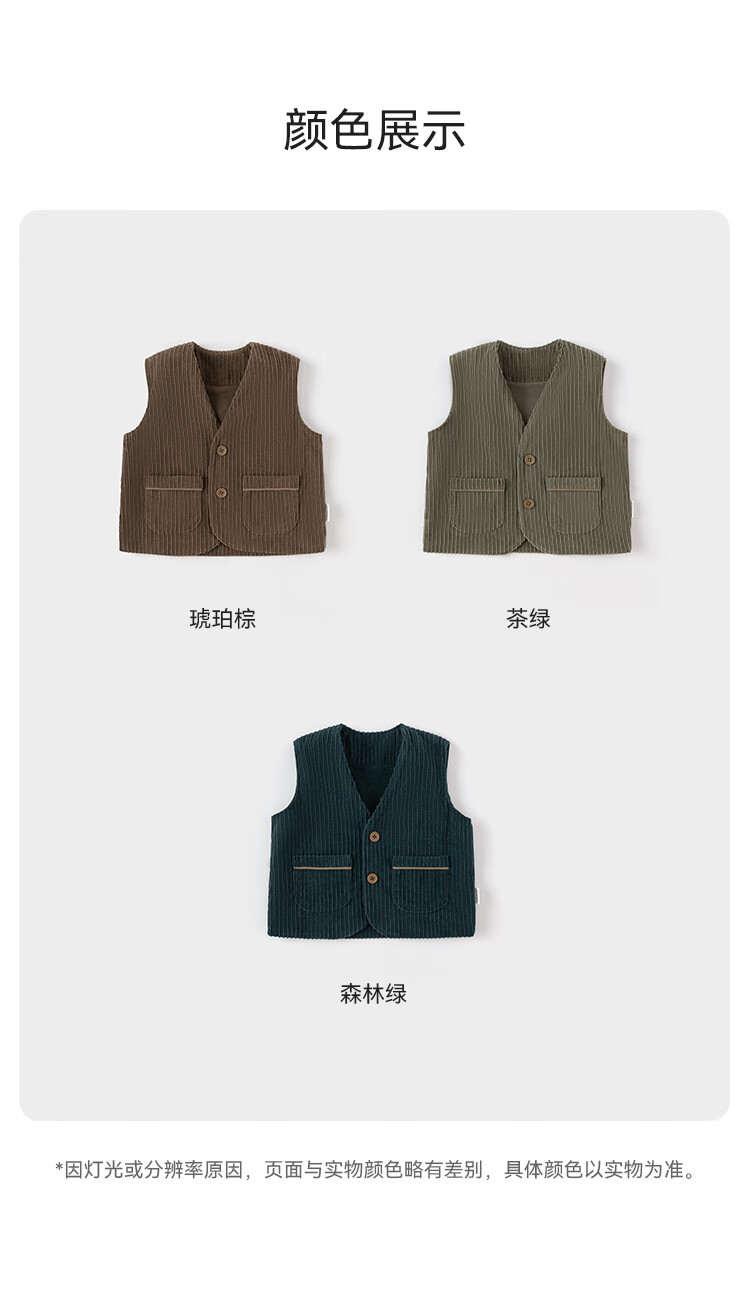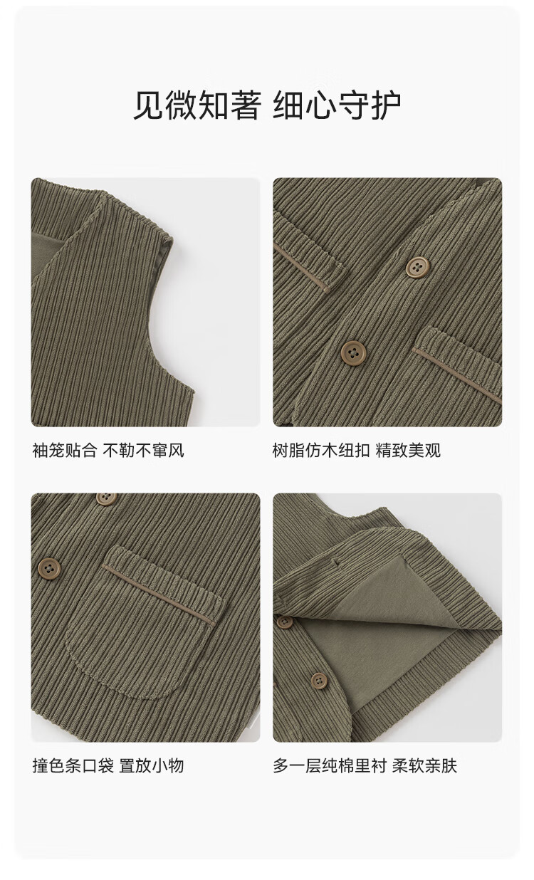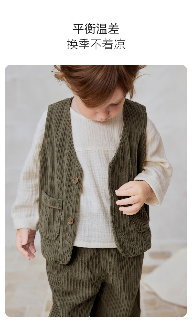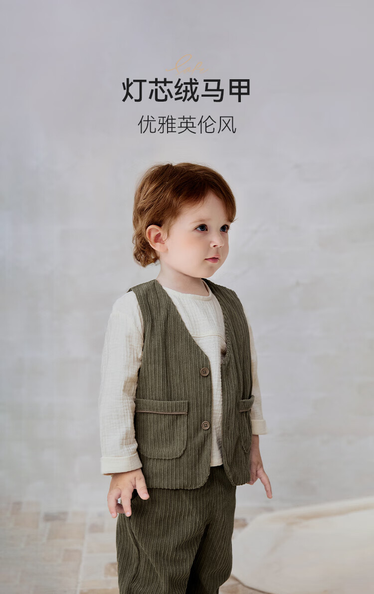 babylove【清仓】婴幼儿马甲春秋灯芯绒坎肩背心小马褂休闲百搭开衫婴儿 茶绿 80 cm