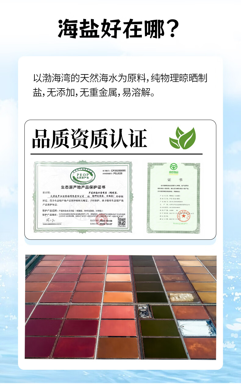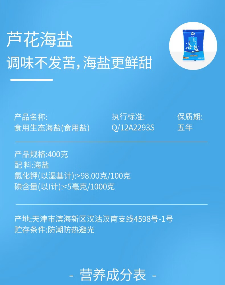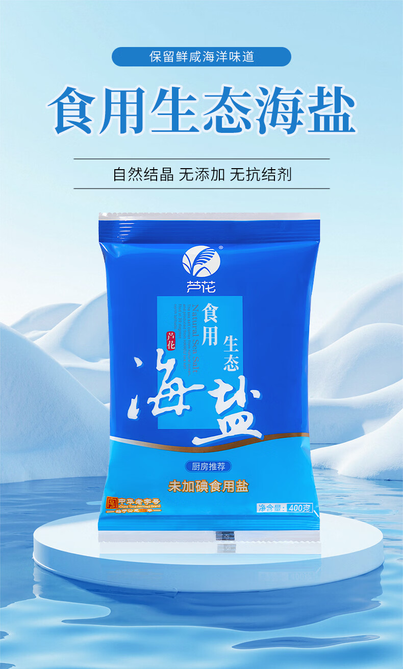 芦花食用生态海盐 400g*7袋 未添加碘 无抗结剂 高品质厨房调料