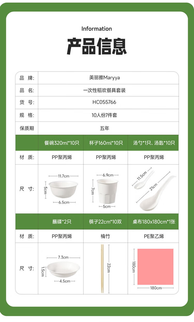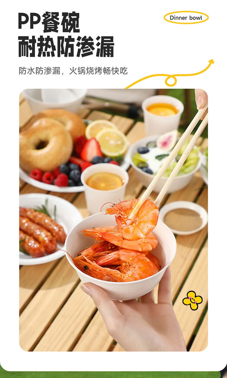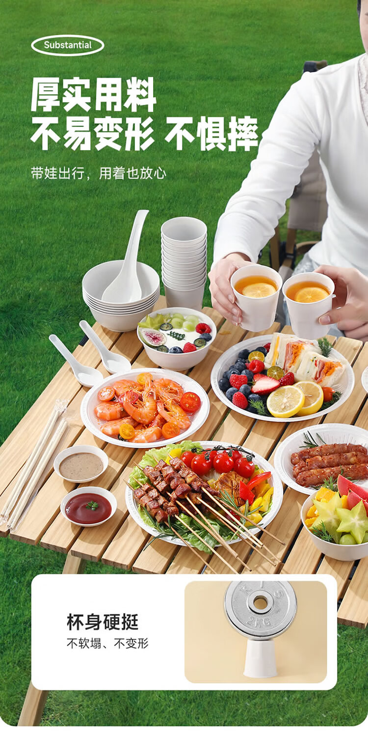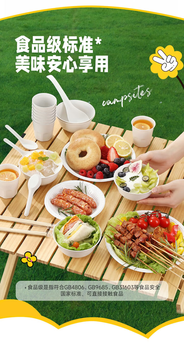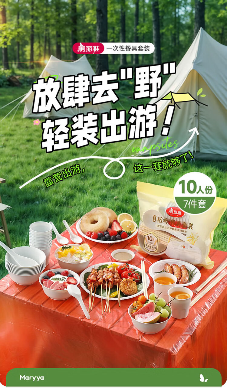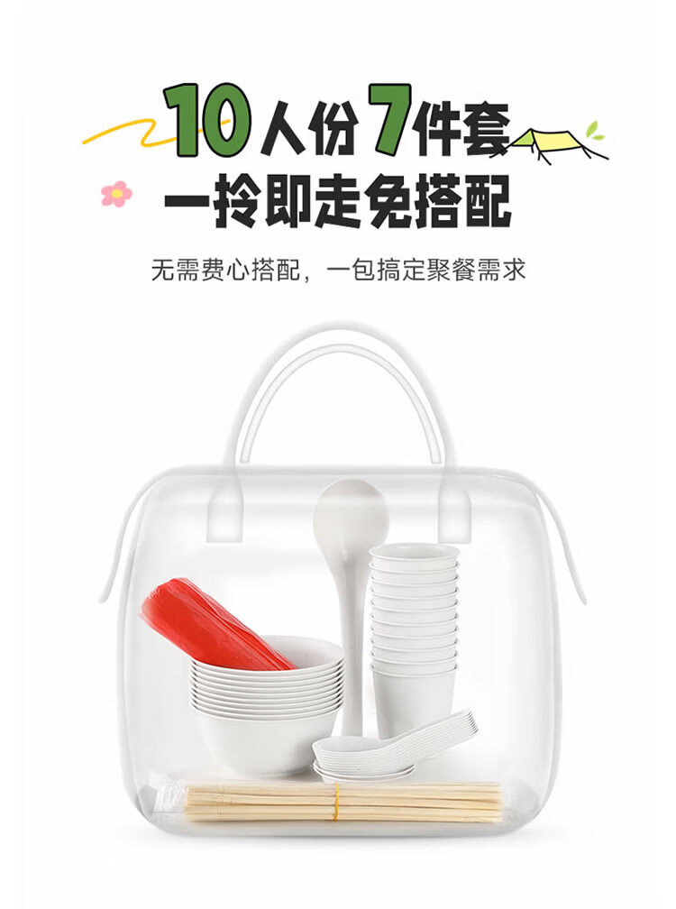 美丽雅 一次性碗筷套装10人份 碗筷杯勺碟盘桌布户外露营野餐餐具