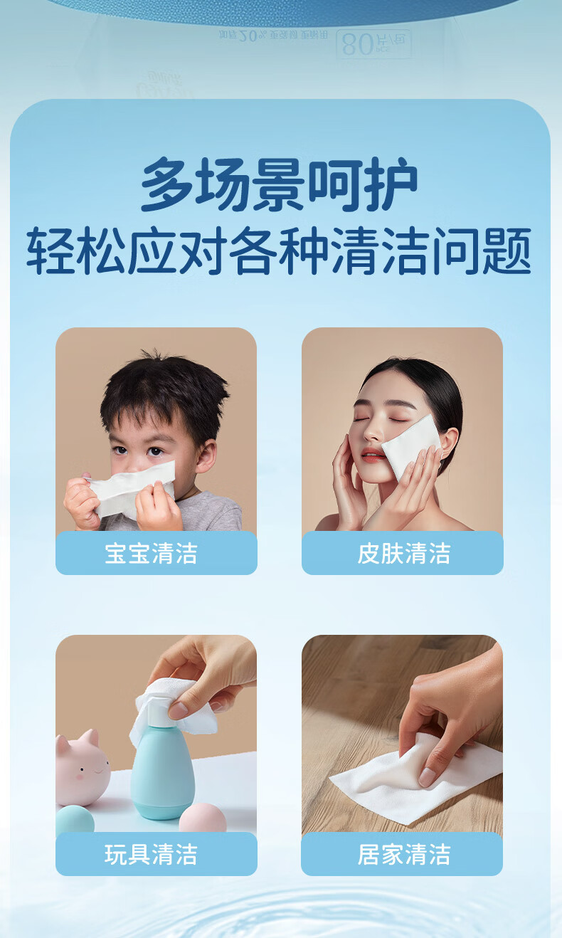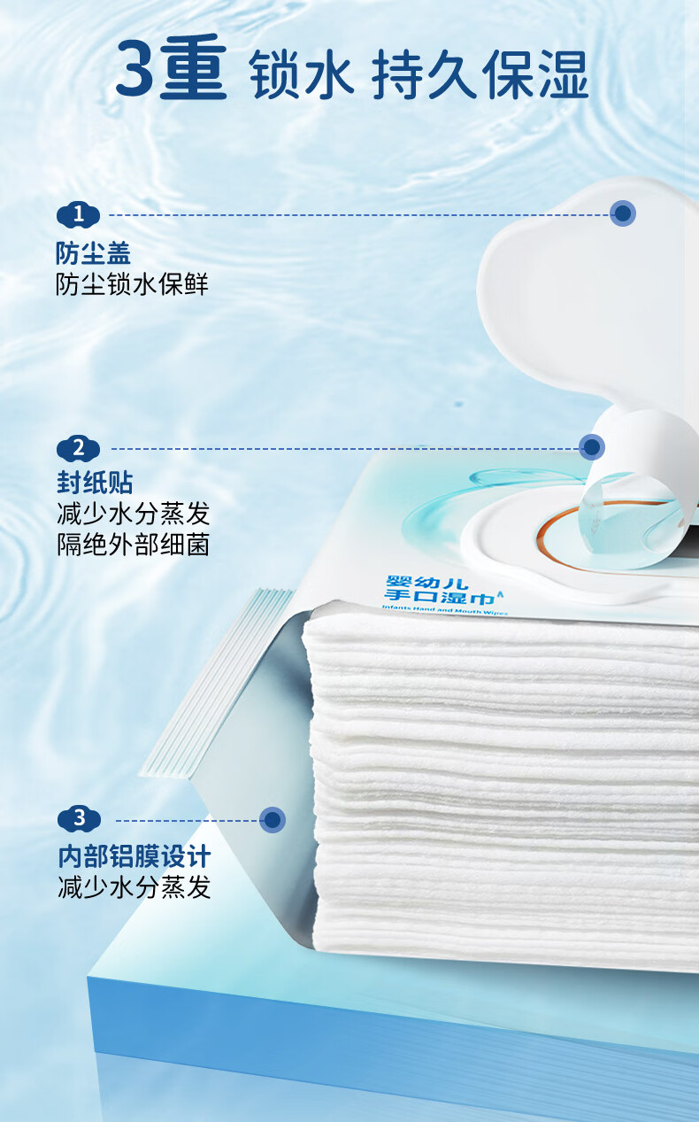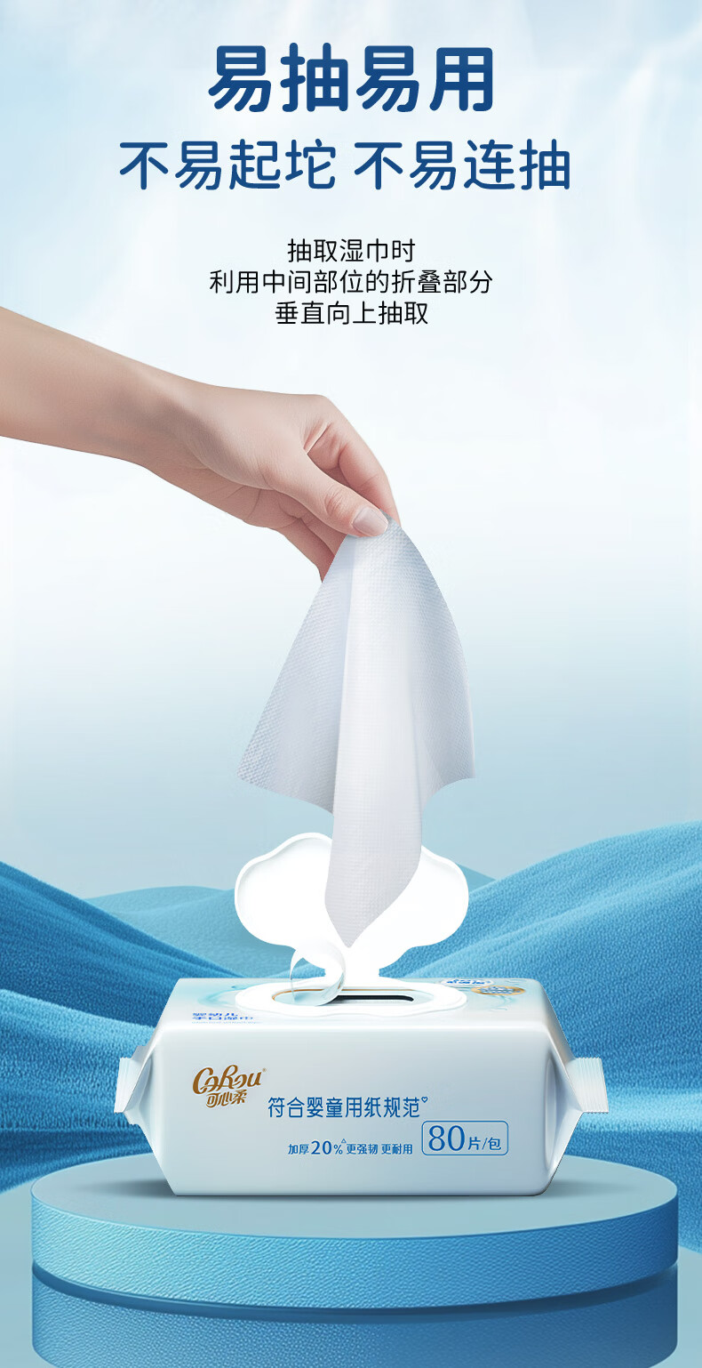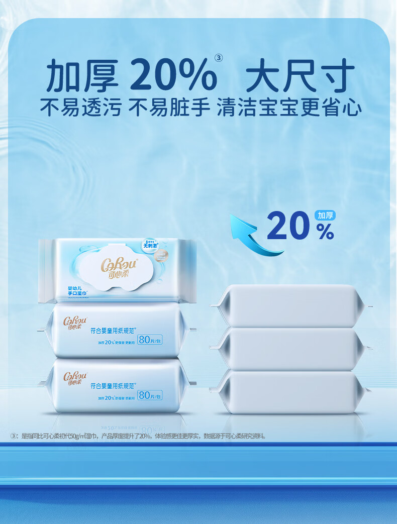 可心柔湿巾婴儿手口婴幼儿专用湿纸巾加厚纯水湿巾纸80抽3包