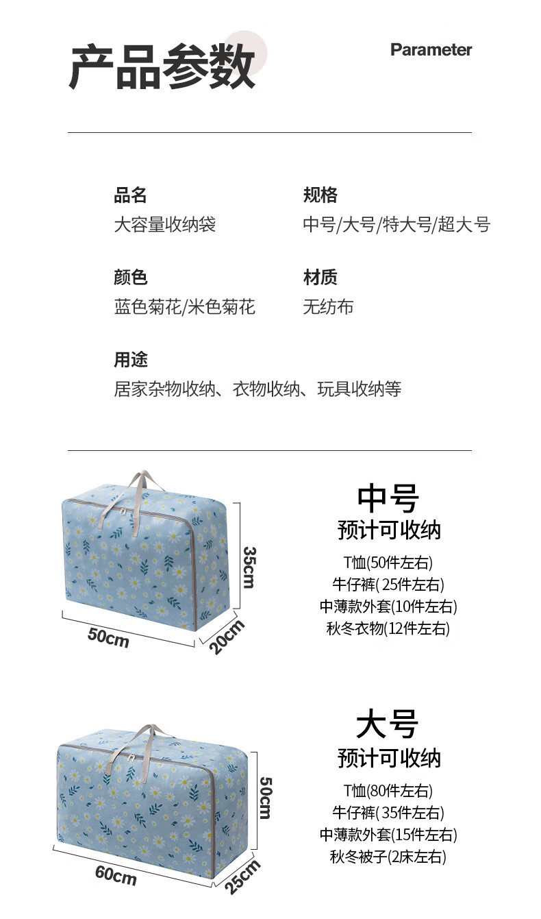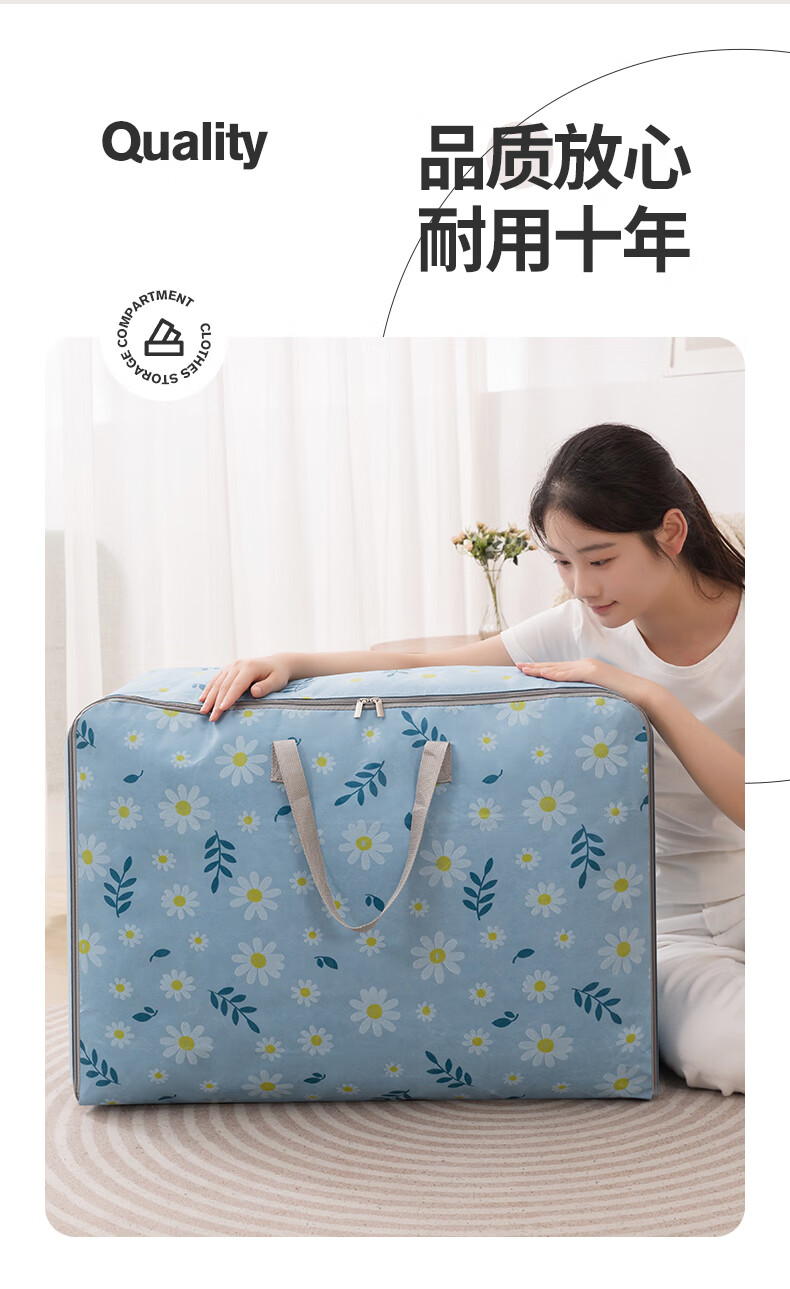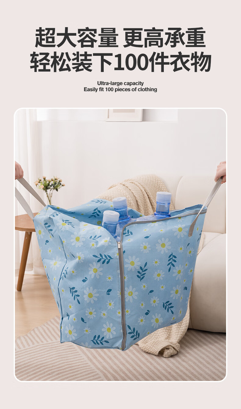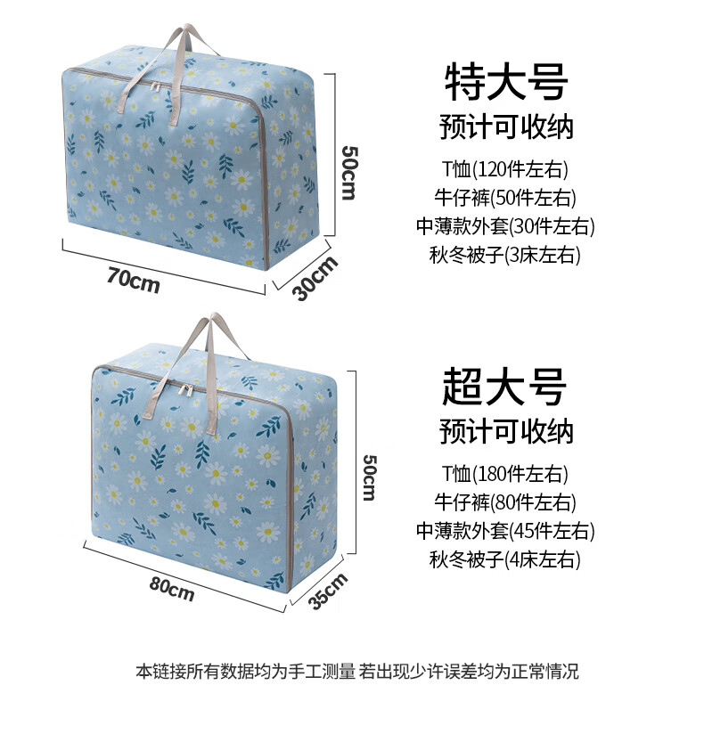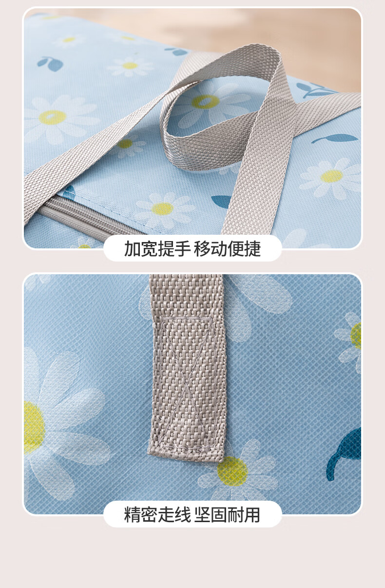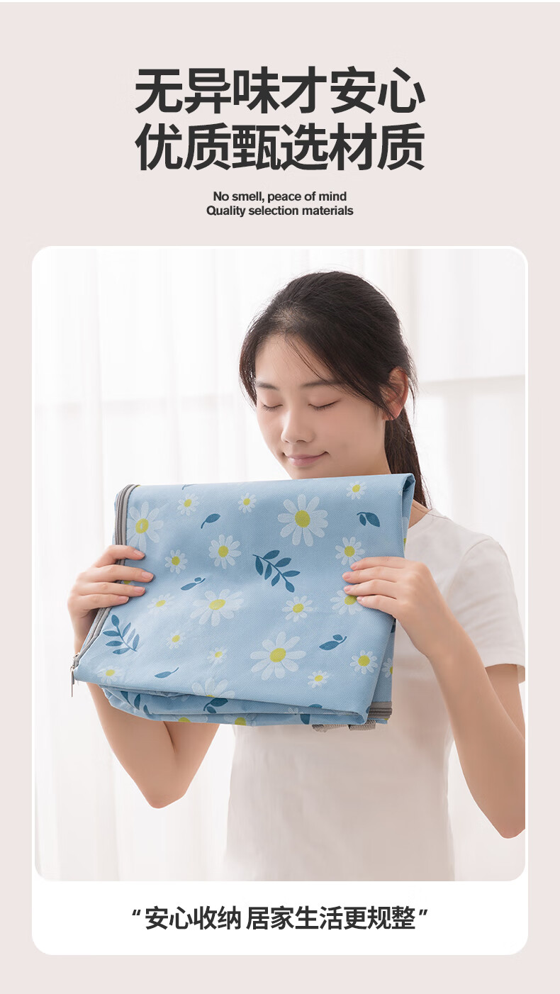 百易特装被子子收纳袋装衣物衣服棉被防潮防尘幼儿园被子收纳袋搬家打包 小雏菊-蓝色【中号】