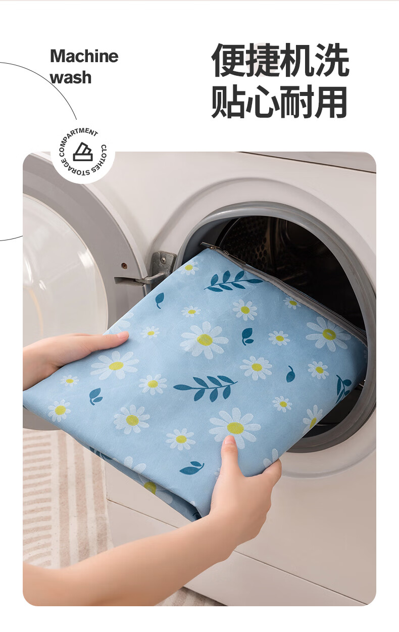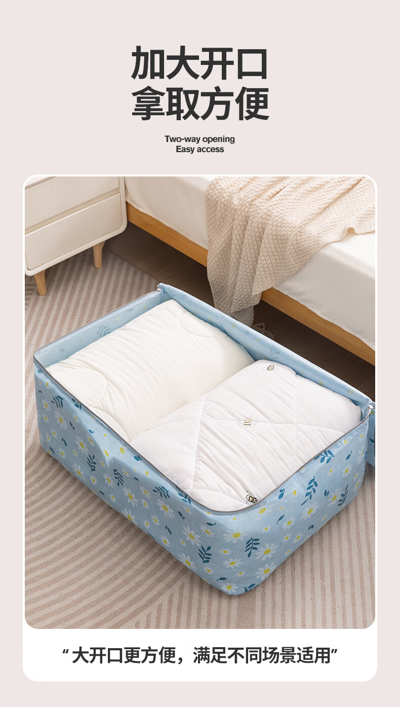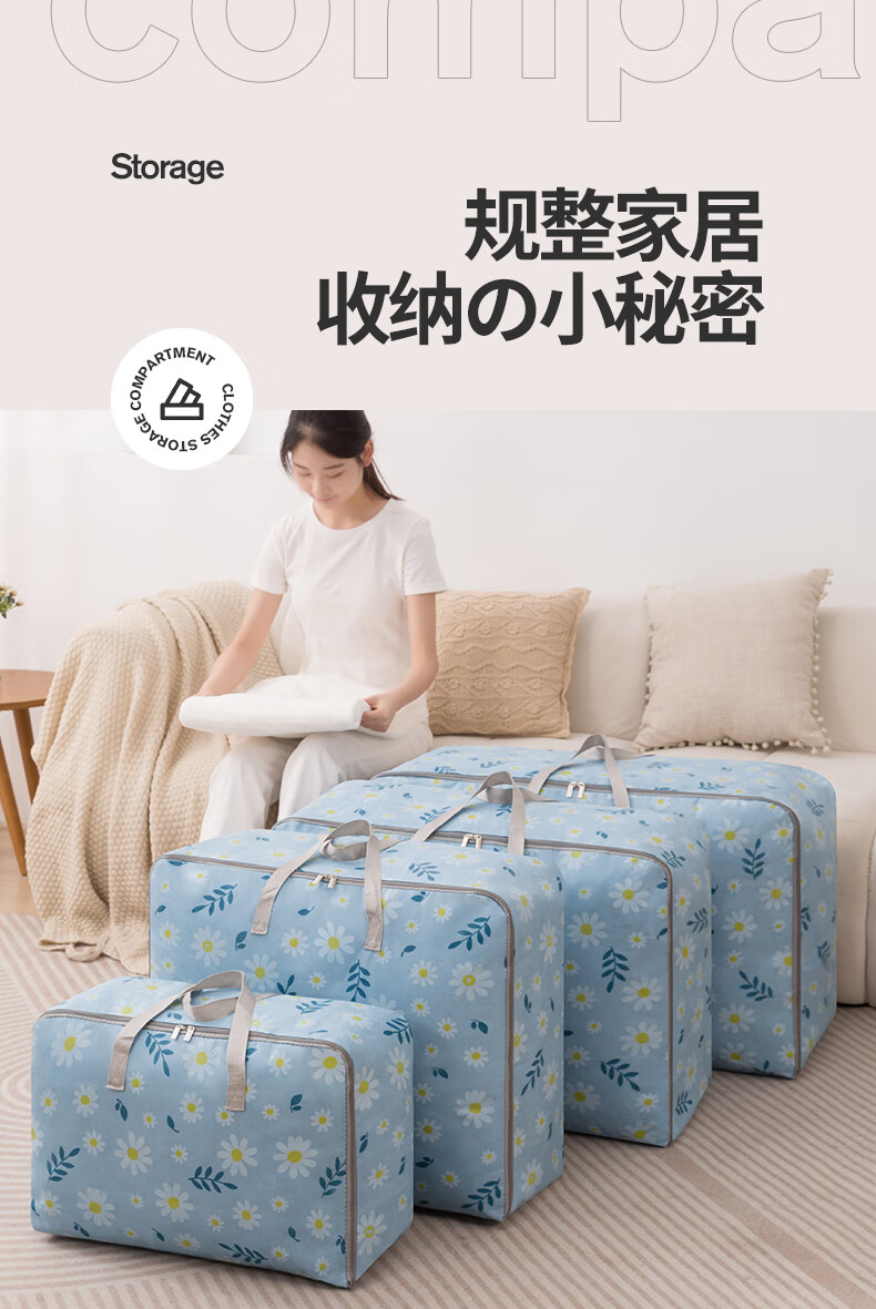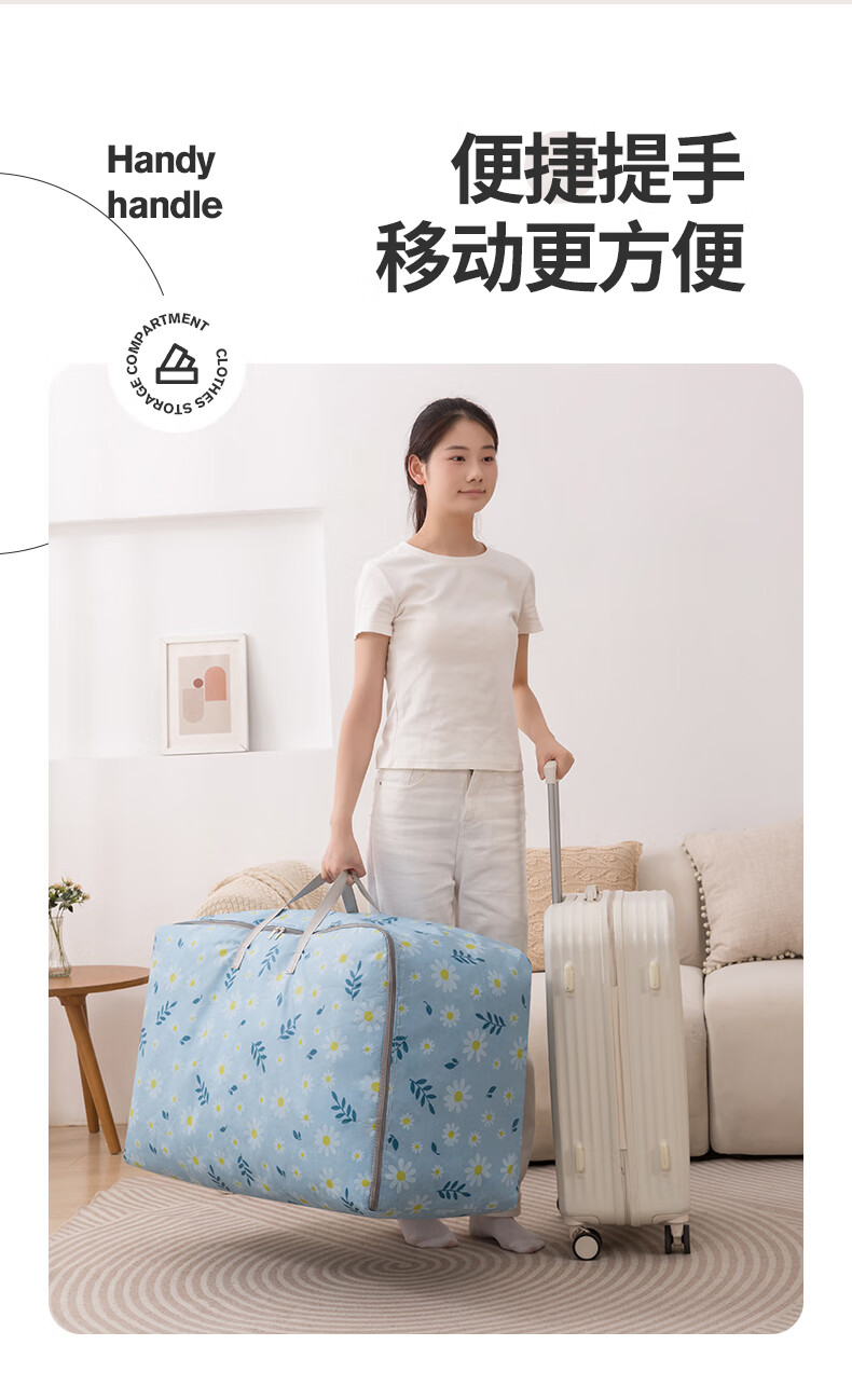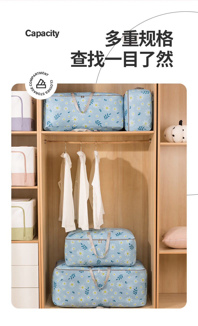 百易特装被子子收纳袋装衣物衣服棉被防潮防尘幼儿园被子收纳袋搬家打包 小雏菊-蓝色【中号】