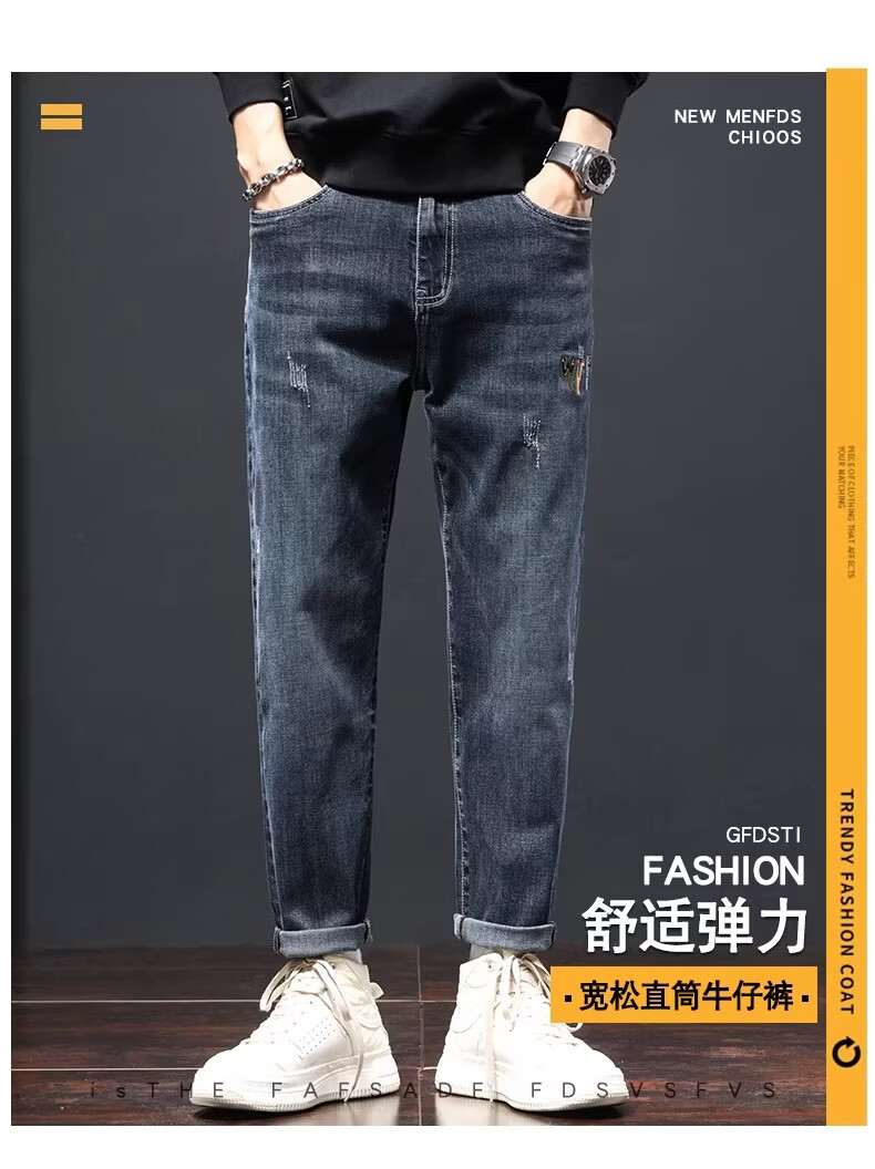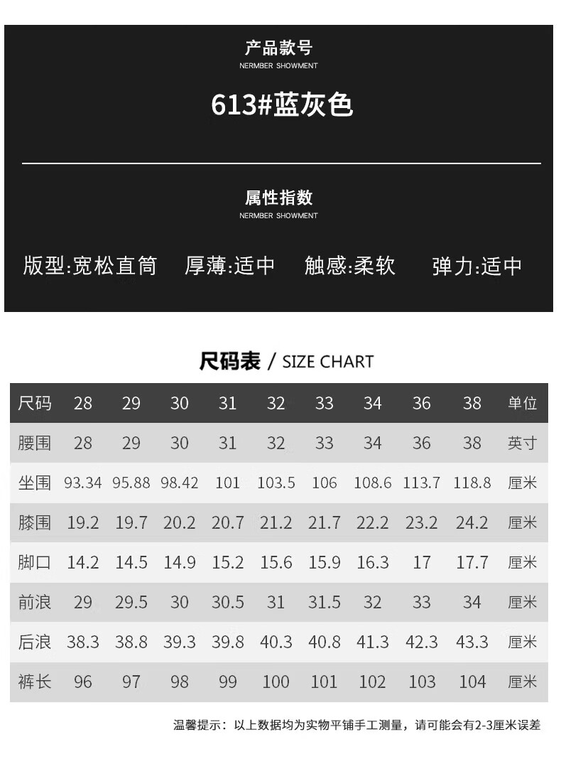 真维斯高端复古牛仔裤男士宽松直筒潮牌2026新款春季水洗新塘休闲长裤子 蓝灰色 28