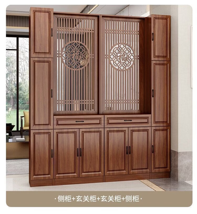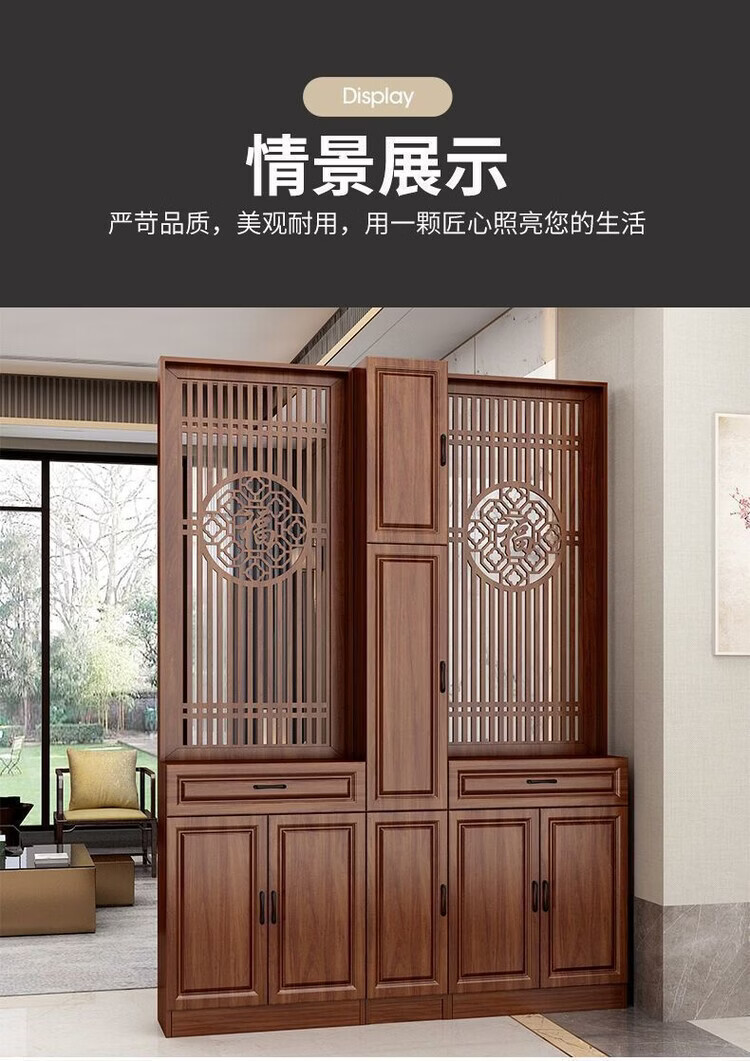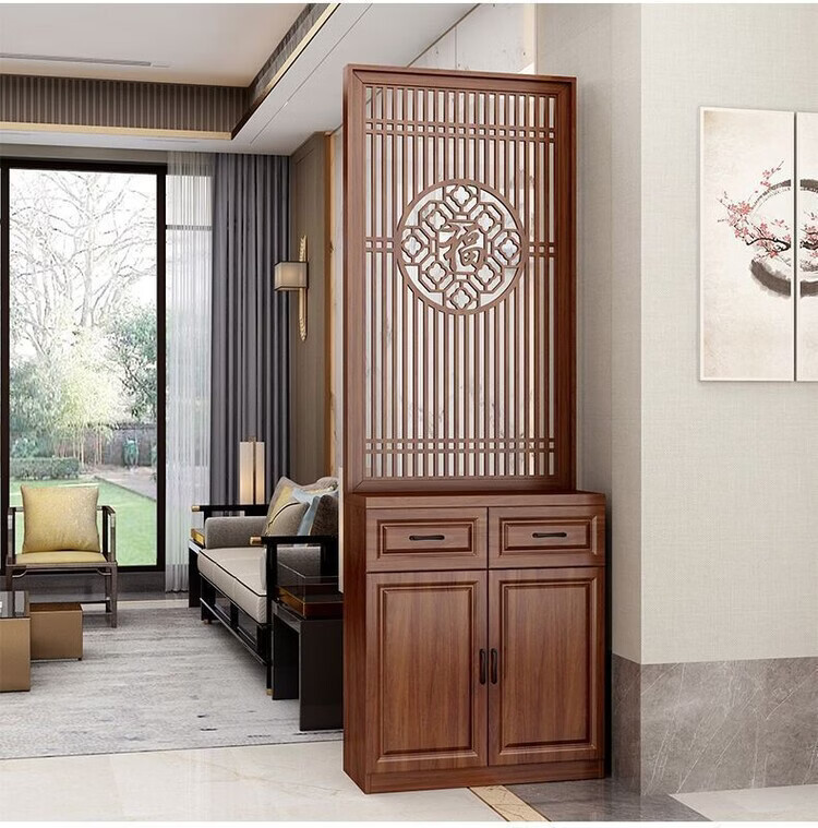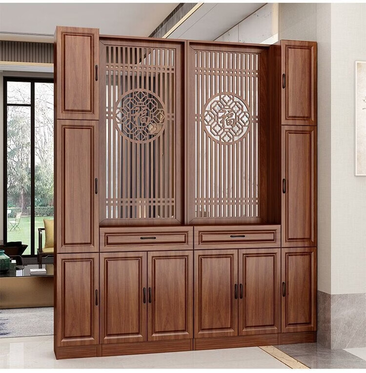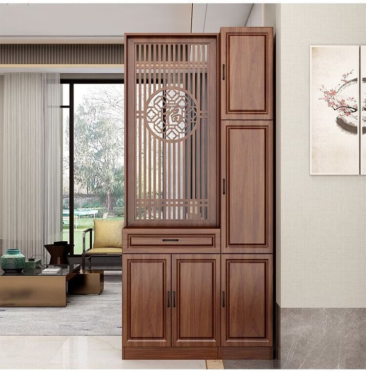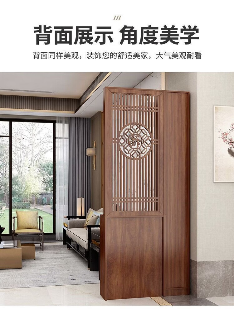 弘星隆屏风隔断客厅遮挡正对入户门鞋柜新中式现代客厅玄关柜一体置物架 家中有福200*60单抽2门 浅胡桃 送货上门包安装