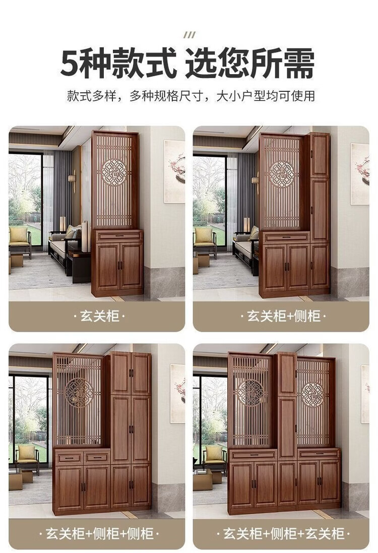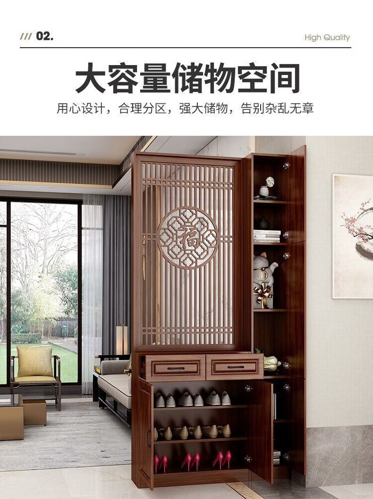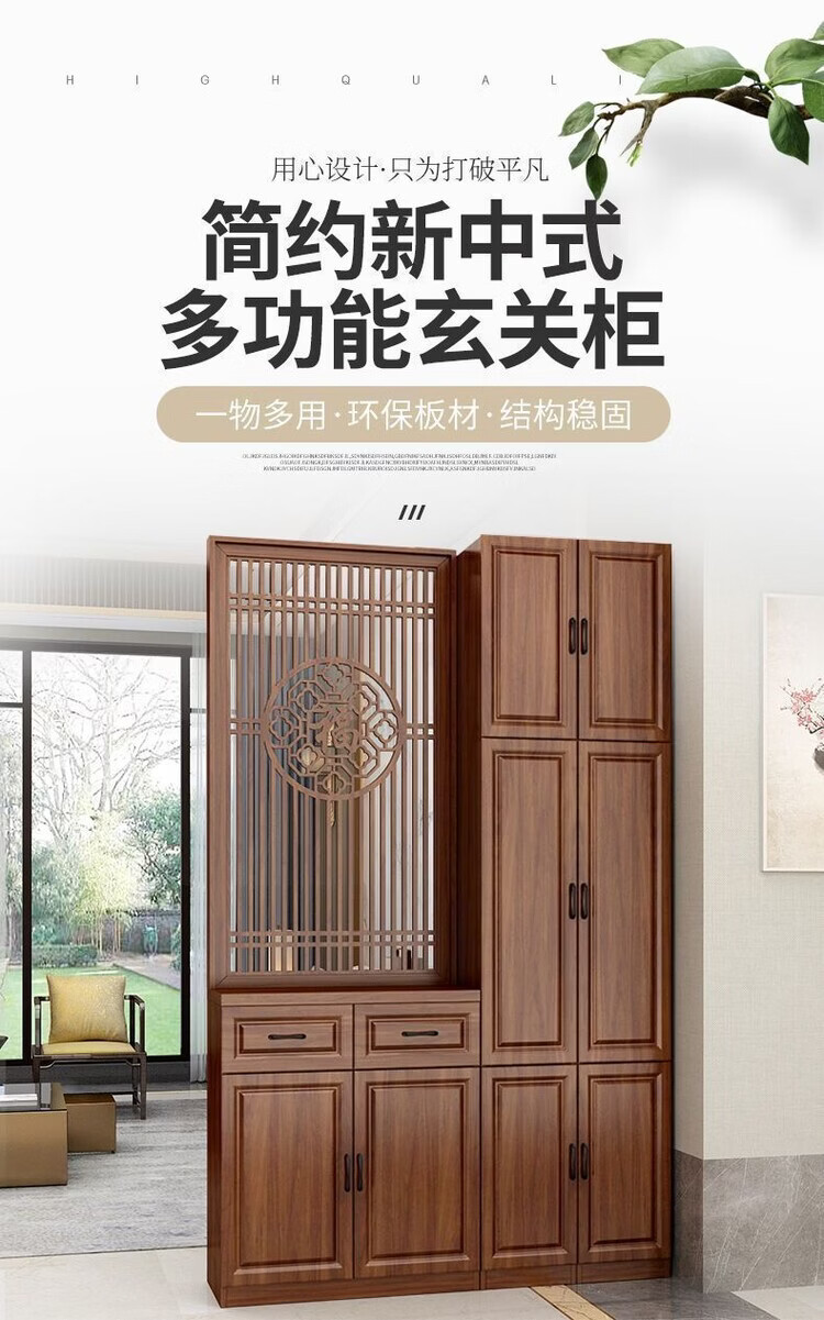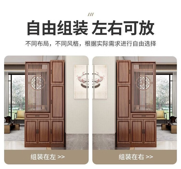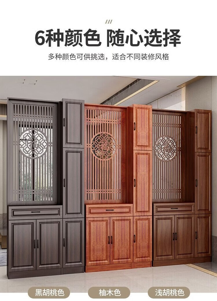 弘星隆屏风隔断客厅遮挡正对入户门鞋柜新中式现代客厅玄关柜一体置物架 家中有福200*60单抽2门 浅胡桃 送货上门包安装