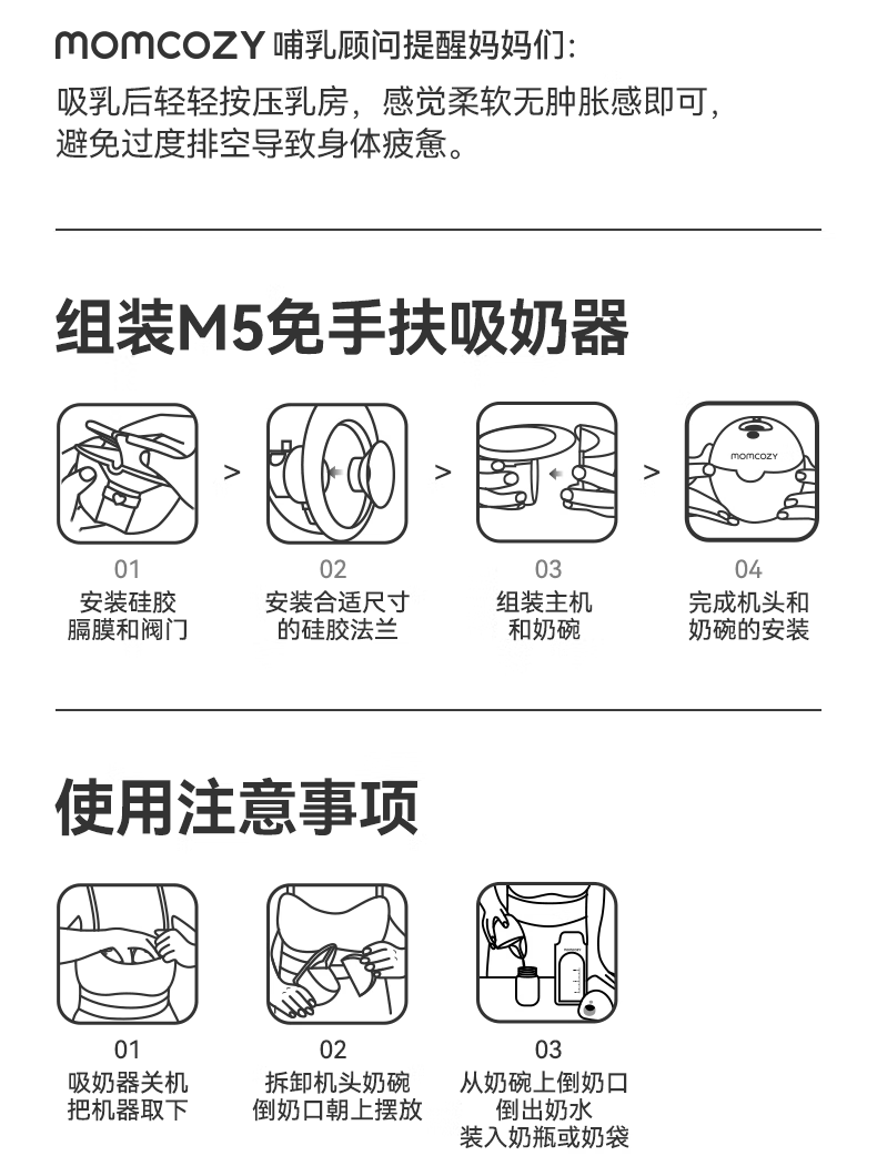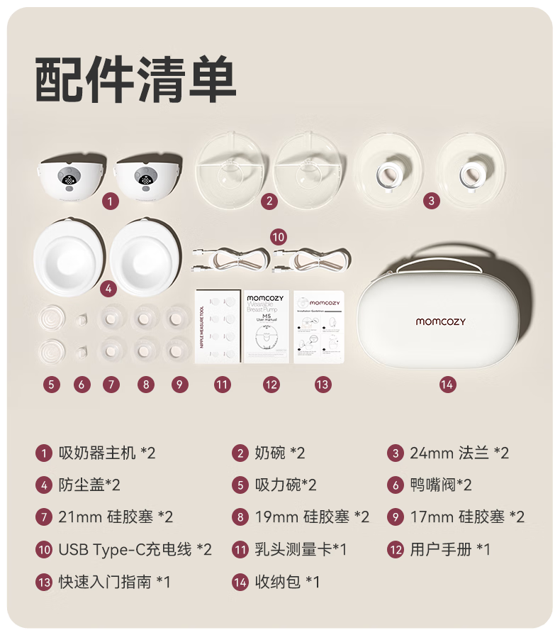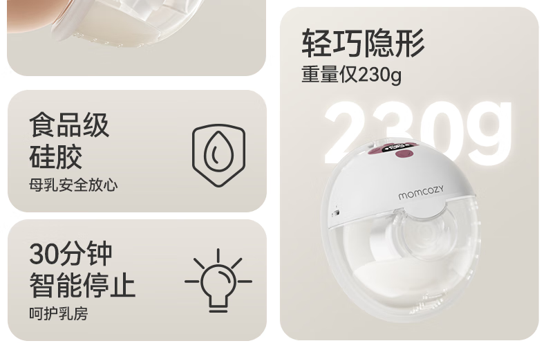 Momcozy双边吸奶器M5 免手扶静音电动隐秘穿戴一体式自动集奶器仿生吮吸