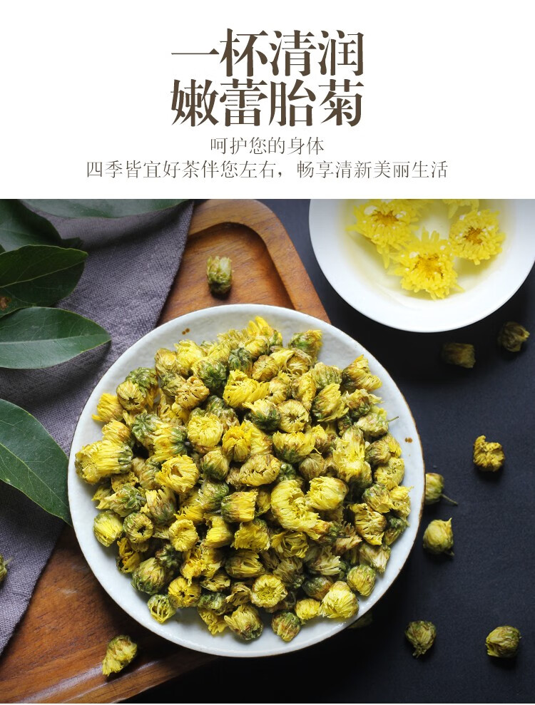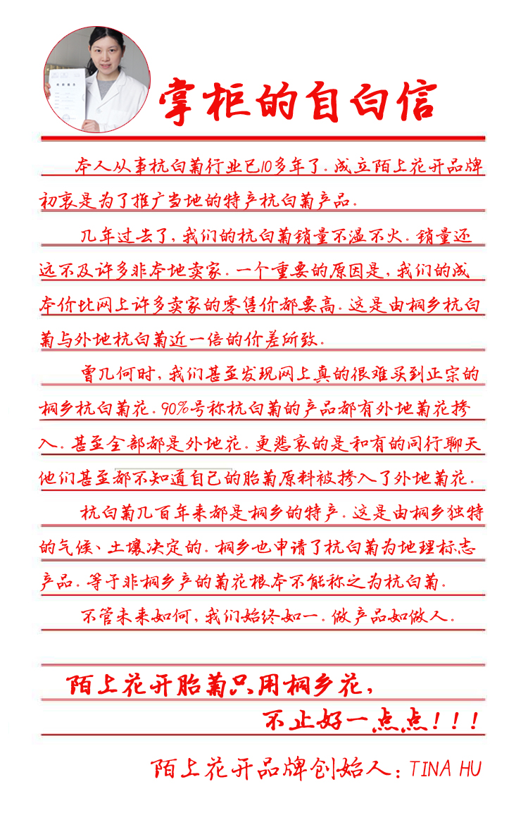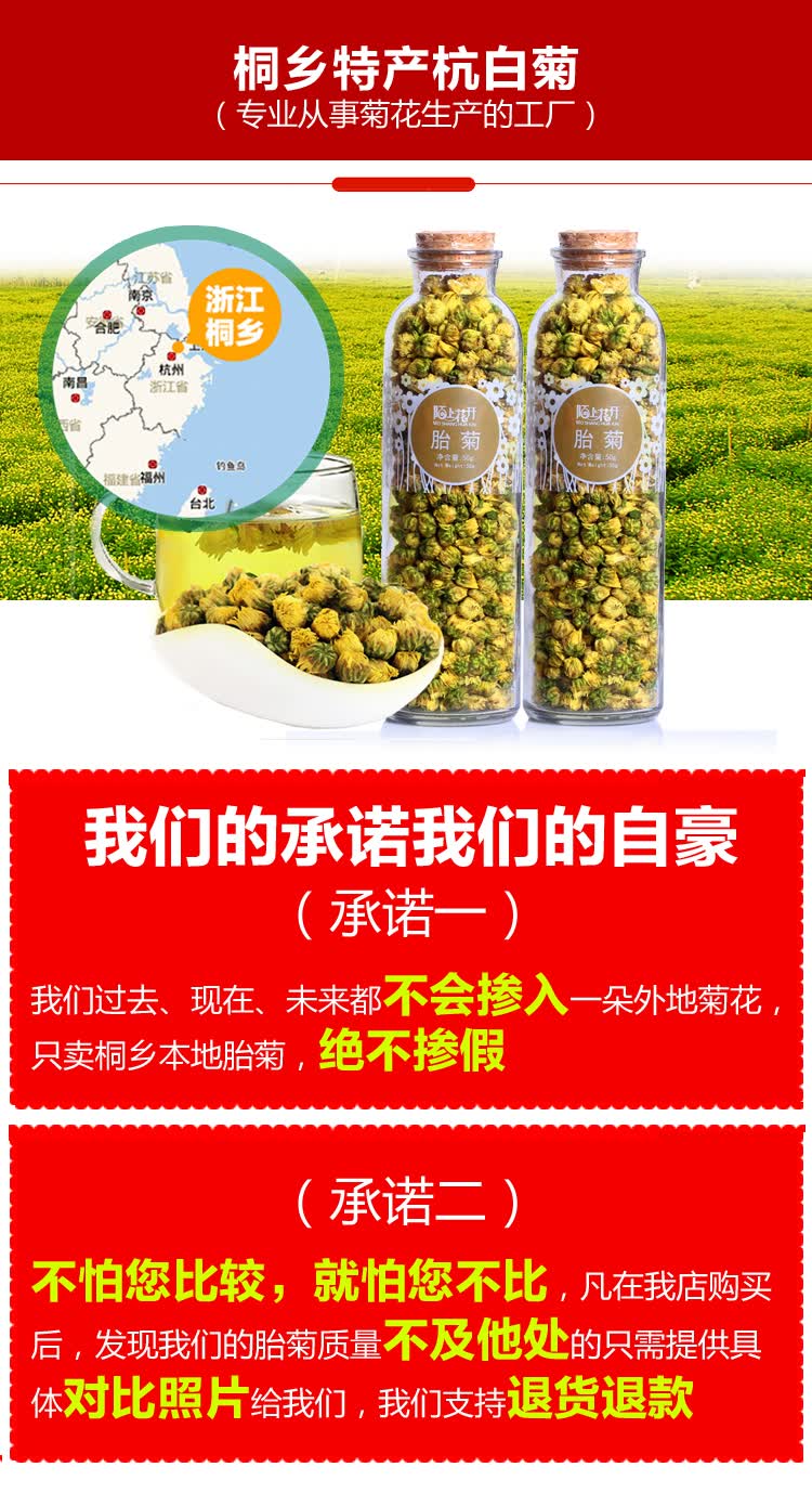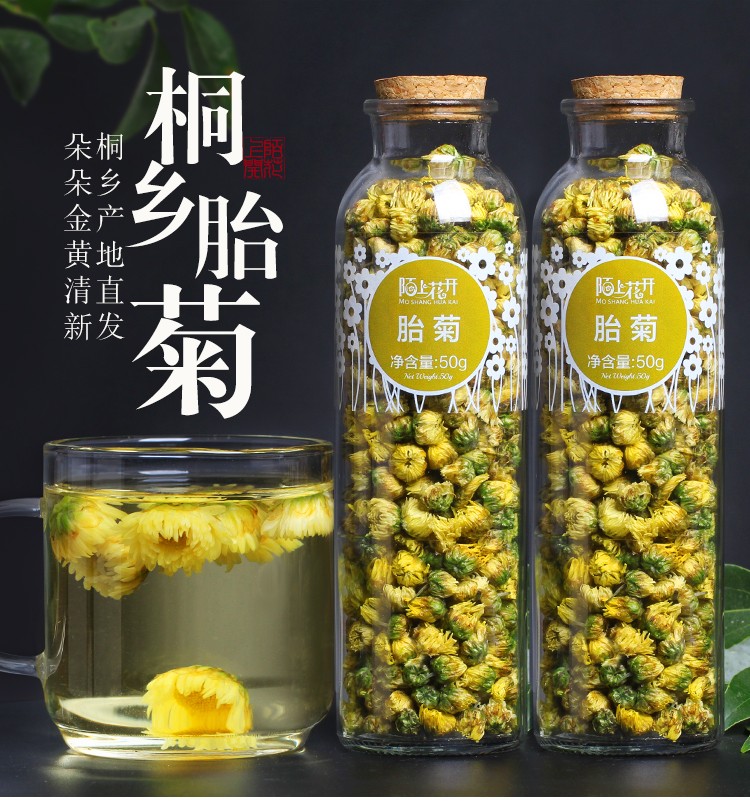 陌上花开 胎菊王花茶菊花茶桐乡产地发货杭白菊花草茶玻璃瓶装2罐装共100g
