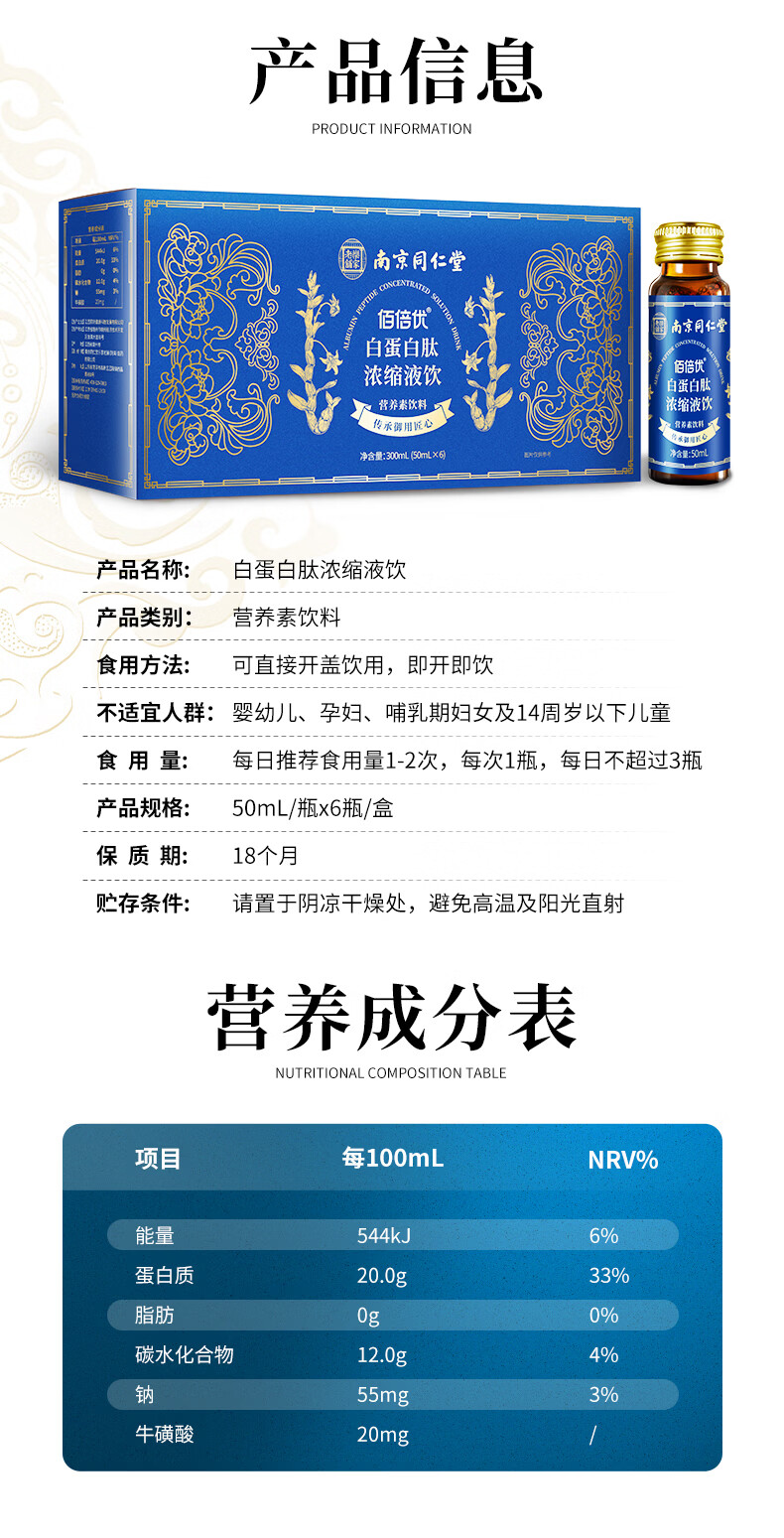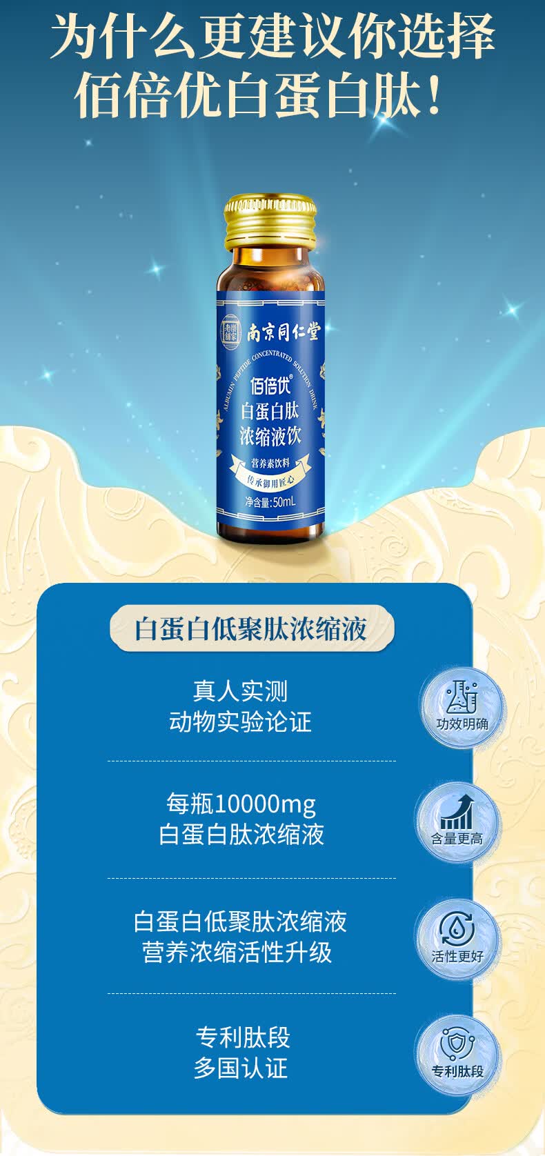 佰倍优口服白蛋白低聚肽浓缩口服液术后营养品 白蛋白肽浓缩液 50ml*1瓶 【试用装】