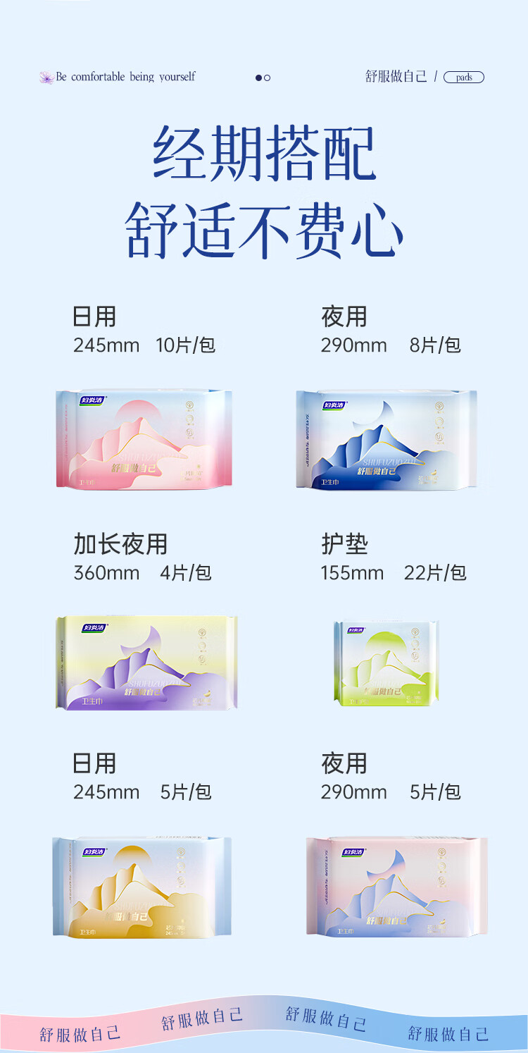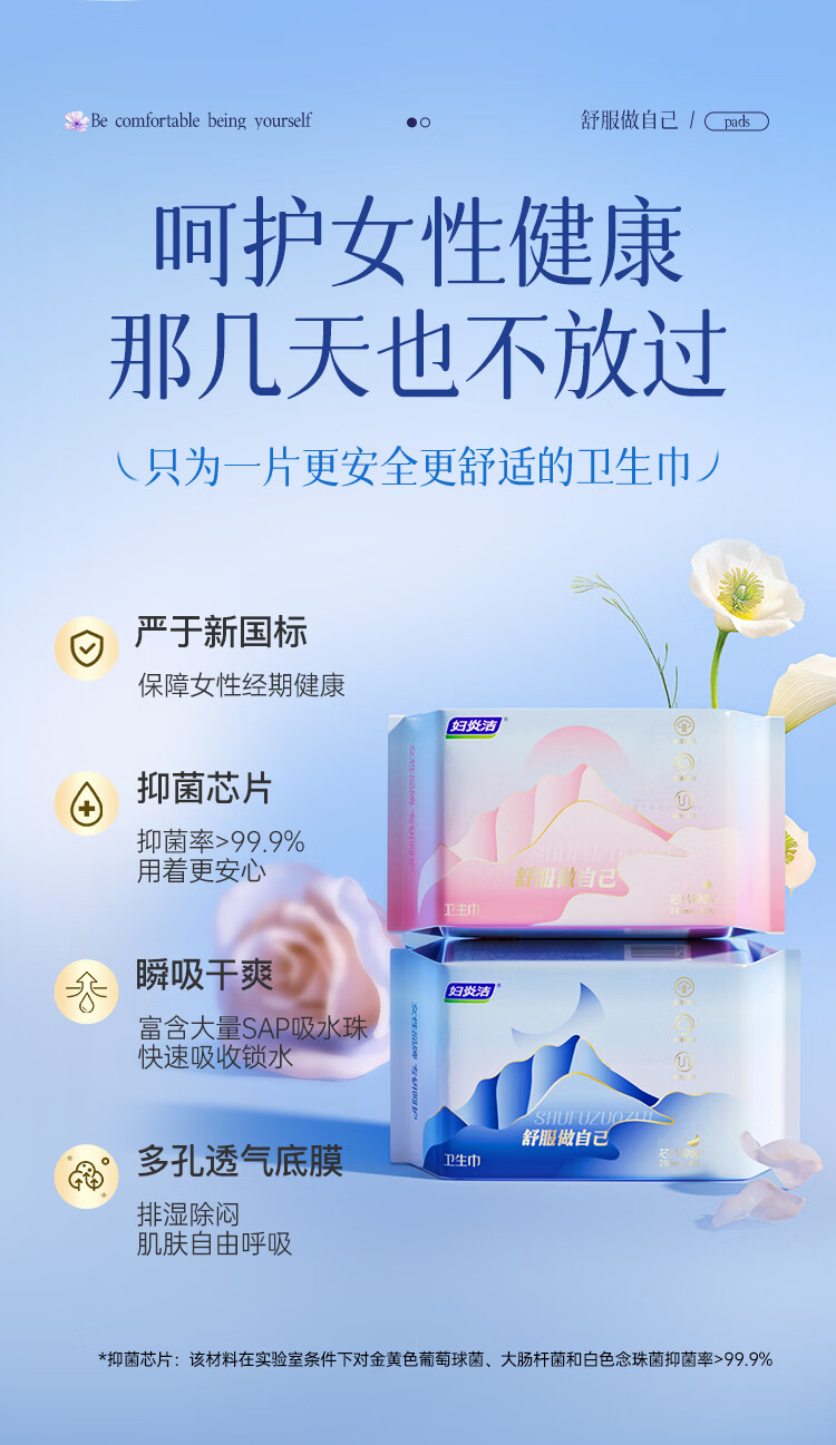 妇炎洁任选组合 国标认证卫生巾迷你巾护垫透气棉柔表层抑菌超薄干爽组 植萃卫生巾日用*1包 245mm 8片