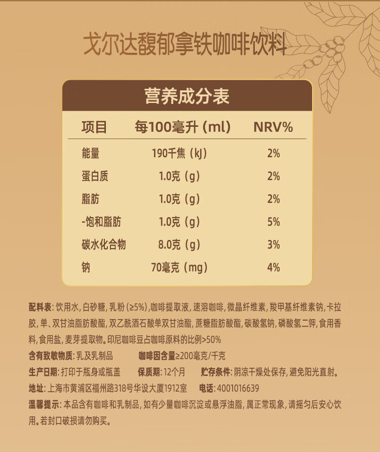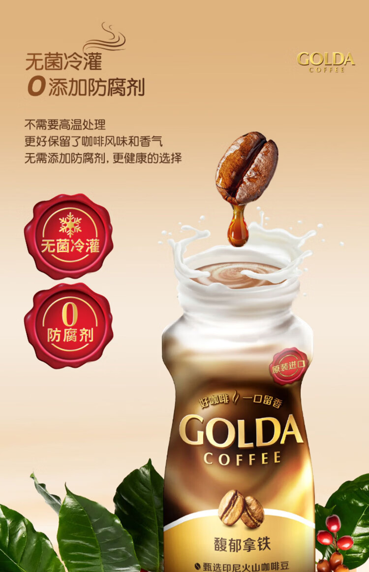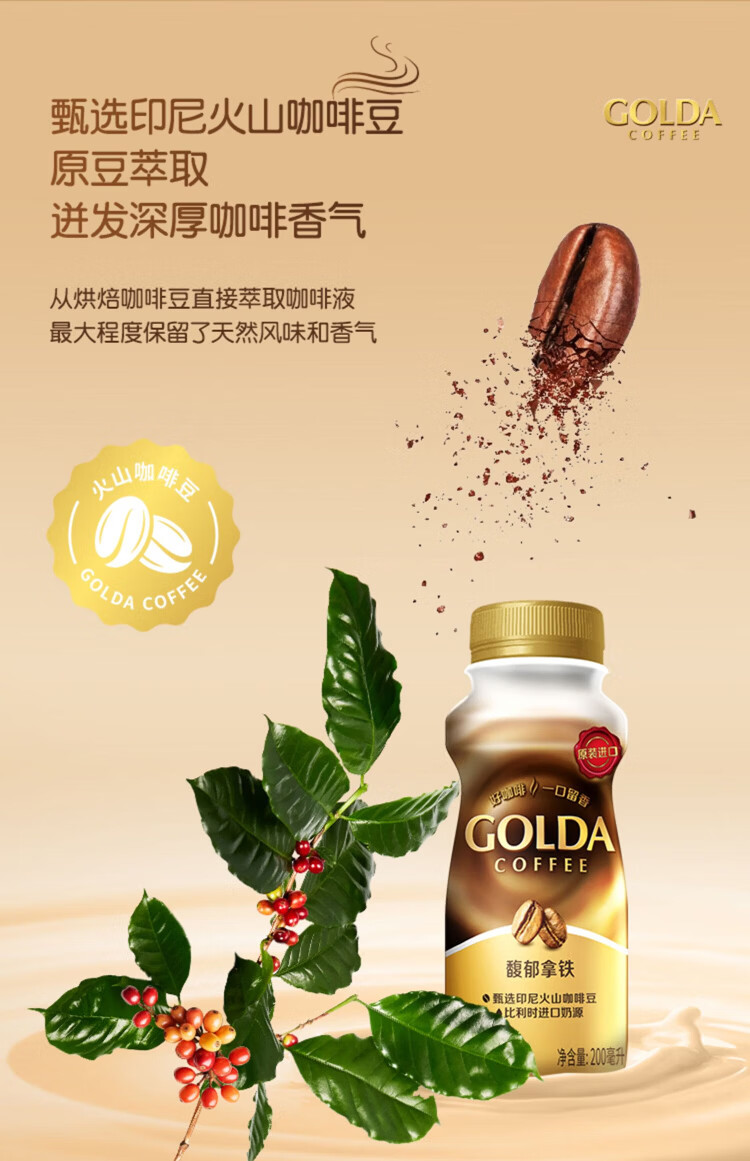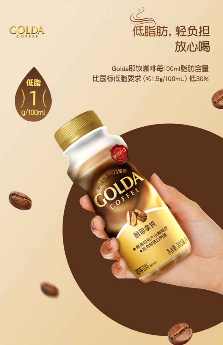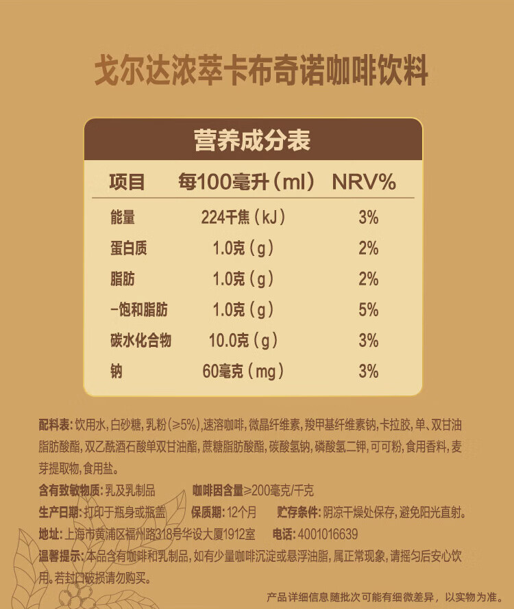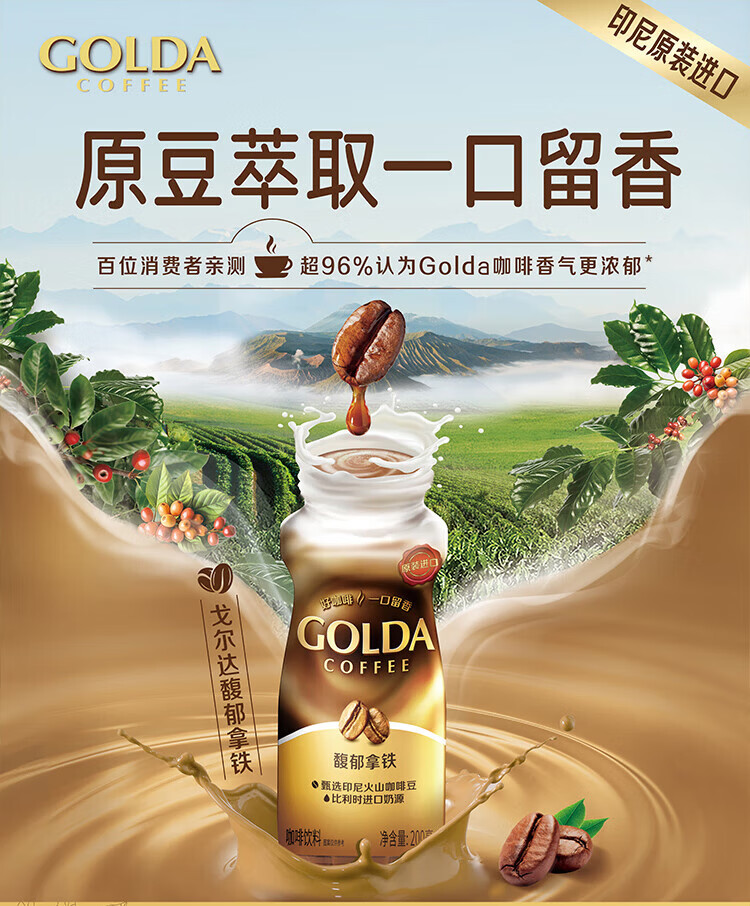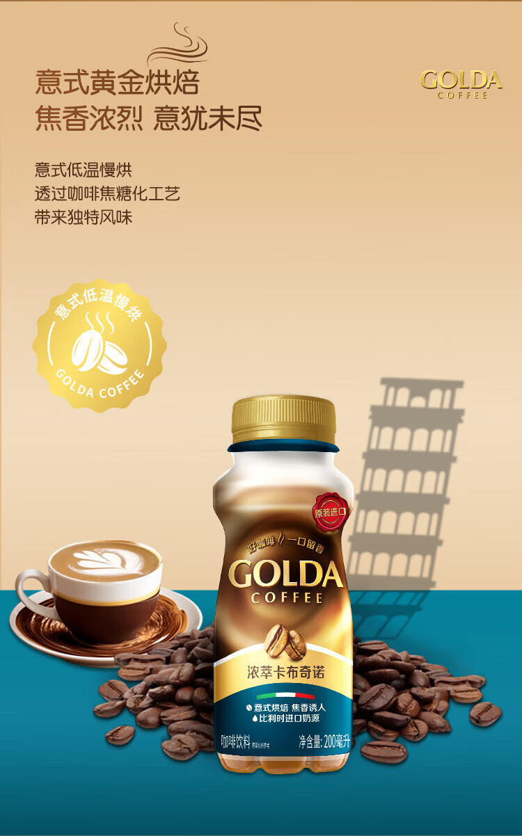 WINGSFOOD戈尔达Golda进口咖啡拿铁卡布奇诺瓶装咖啡即饮咖啡 卡布奇诺200ml 12瓶