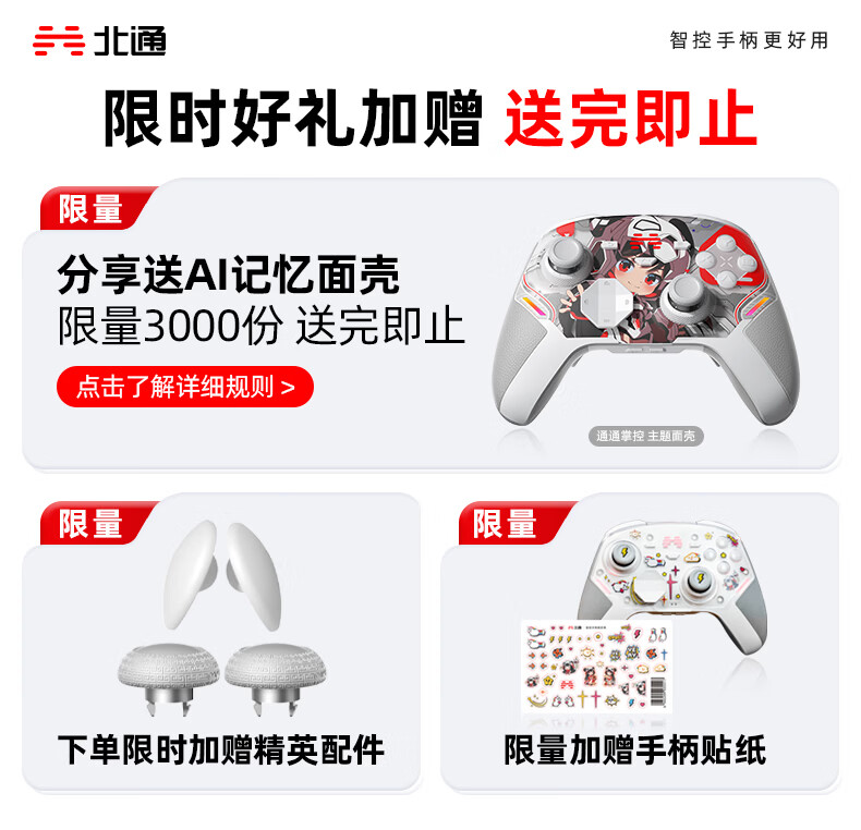 北通鲲鹏40无线游戏手柄AI智控蓝牙震动体感 xbox电脑PC手机steam电视NSswitch2原神鸣潮 御铠白
