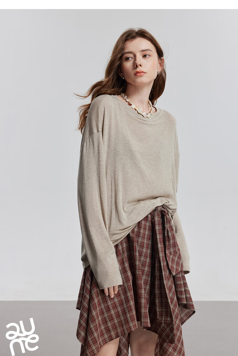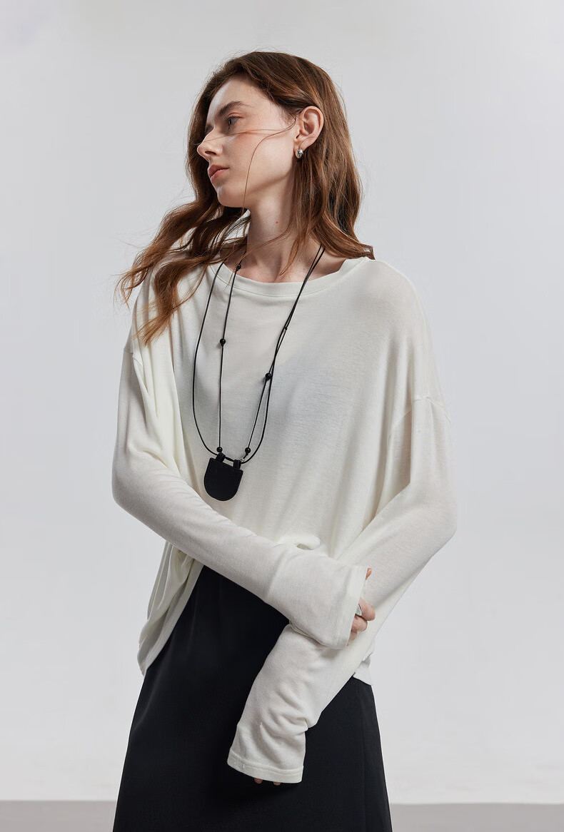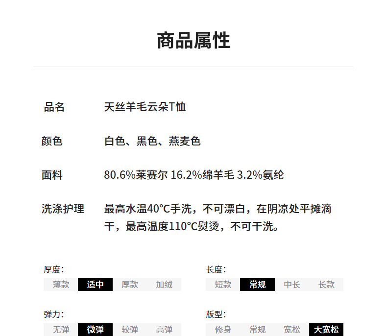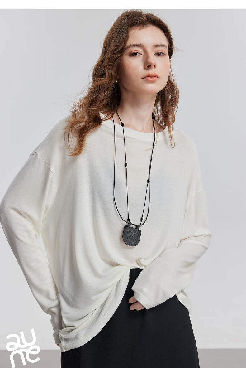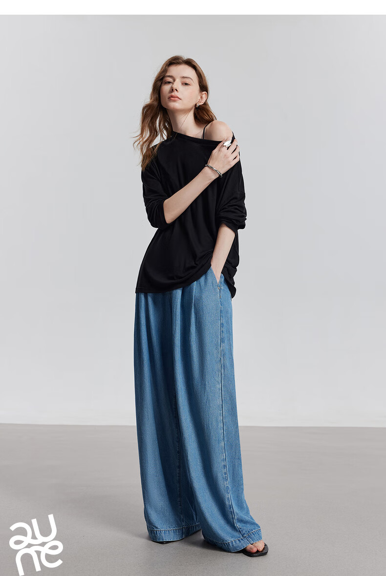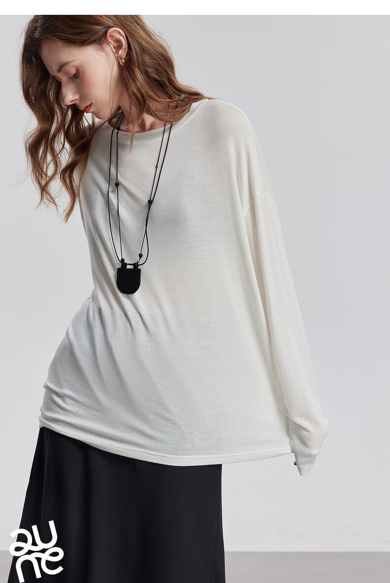 初语天丝羊毛面膜T恤女26春季新款基础百搭纯色套头肤感上衣 黑色 S