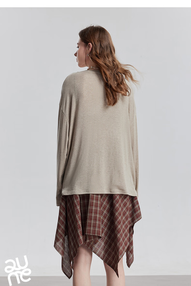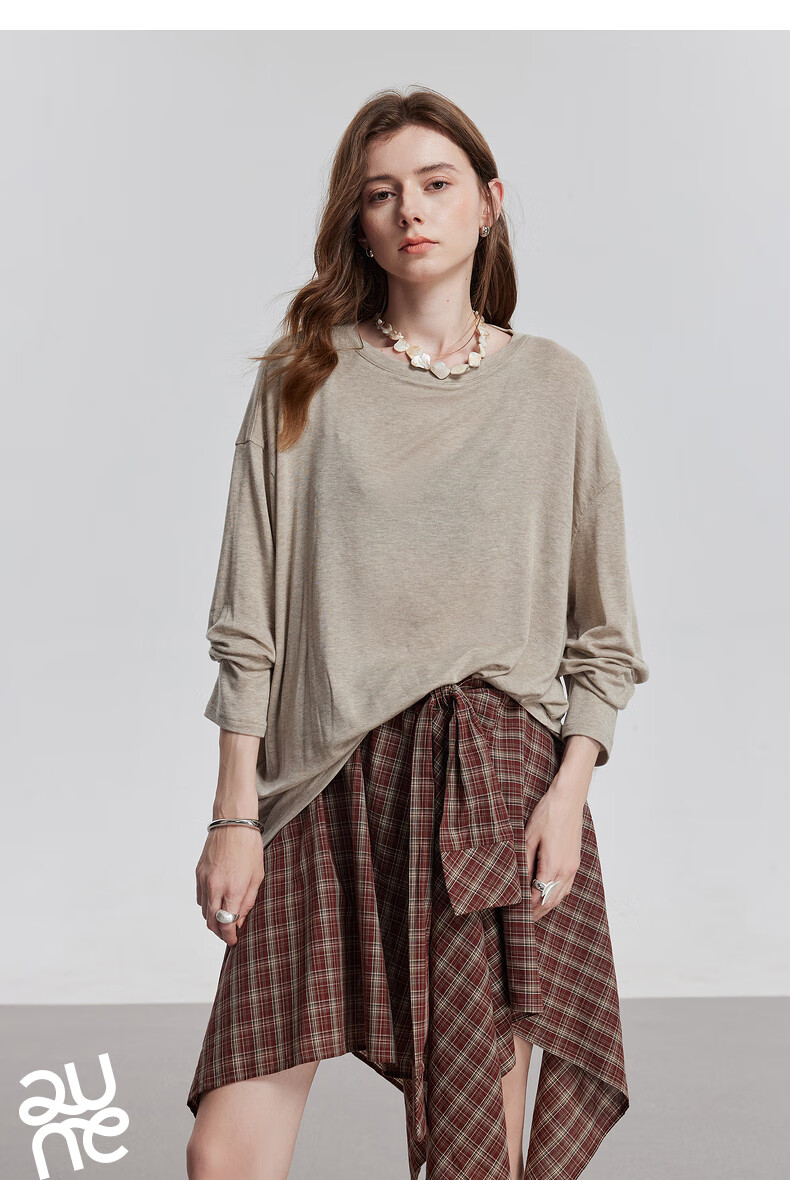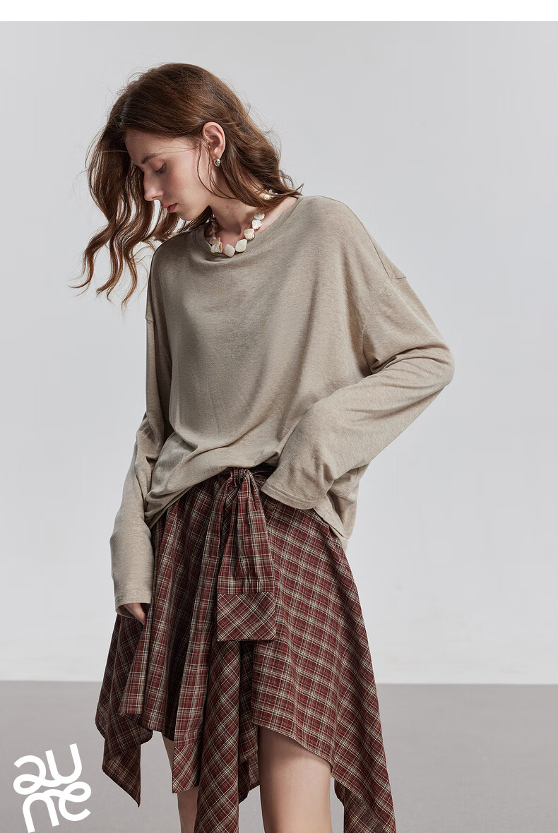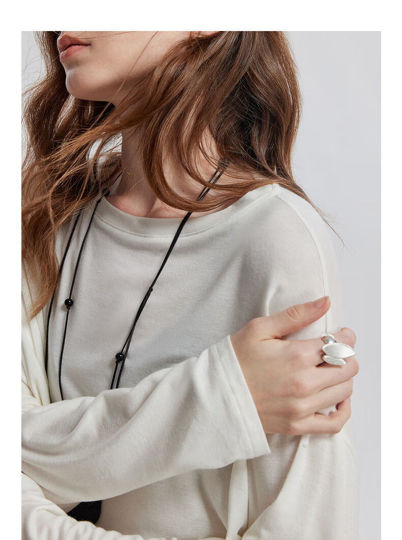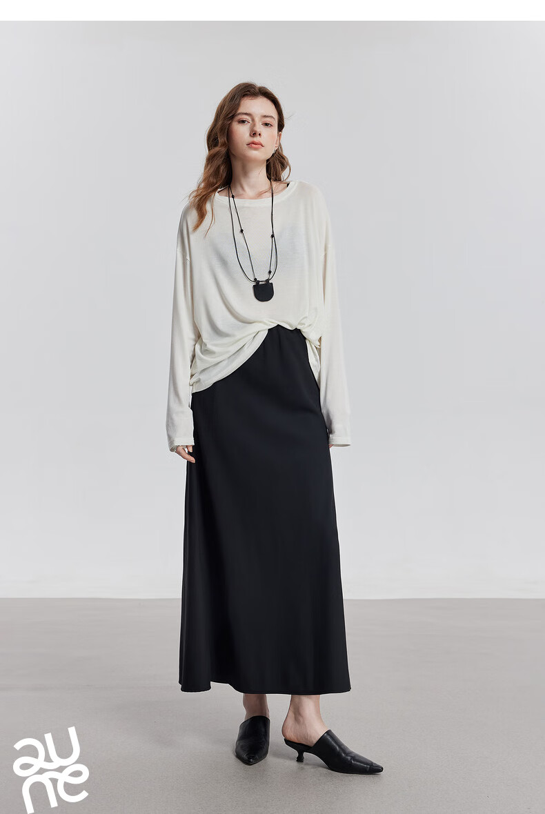 初语天丝羊毛面膜T恤女26春季新款基础百搭纯色套头肤感上衣 黑色 S