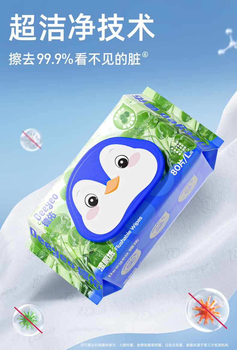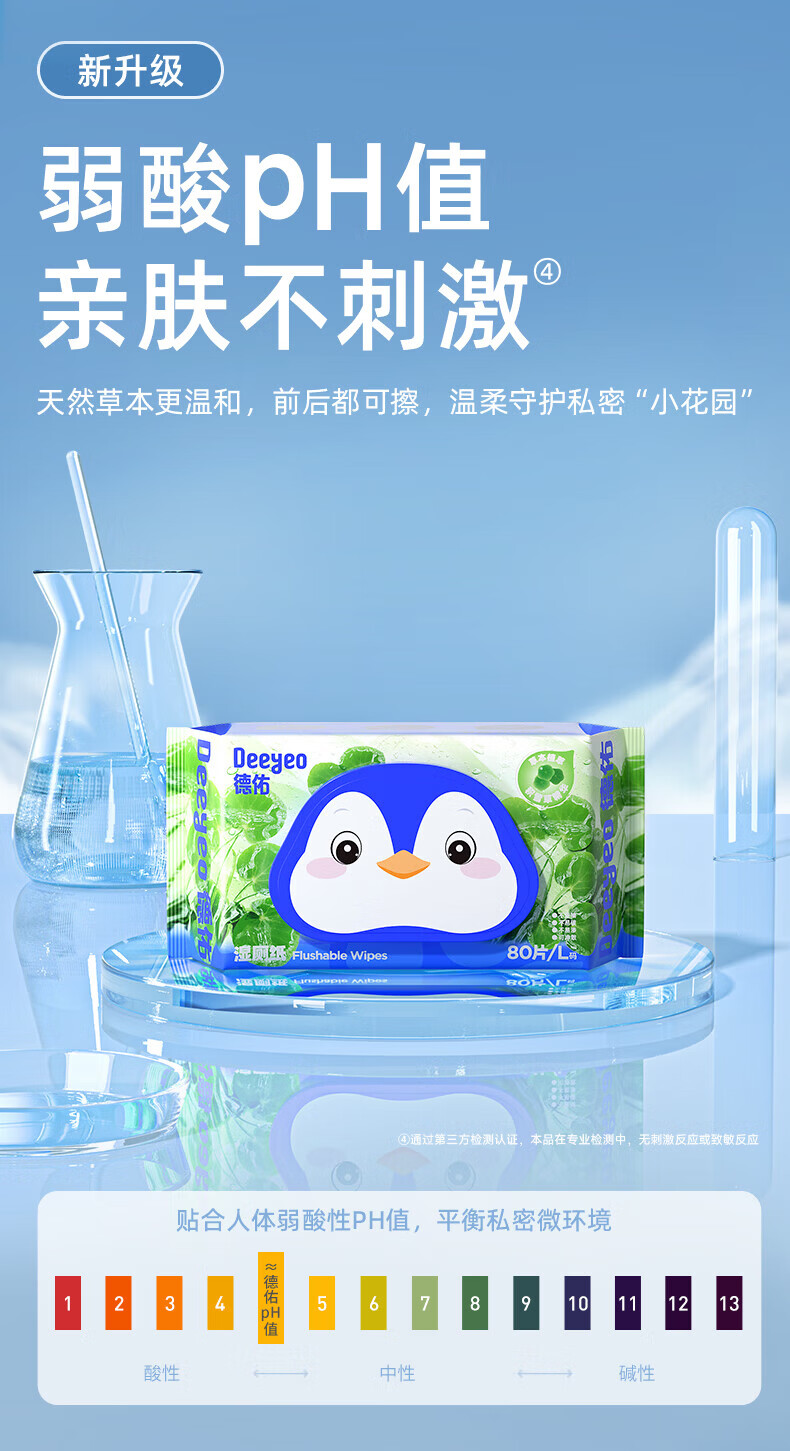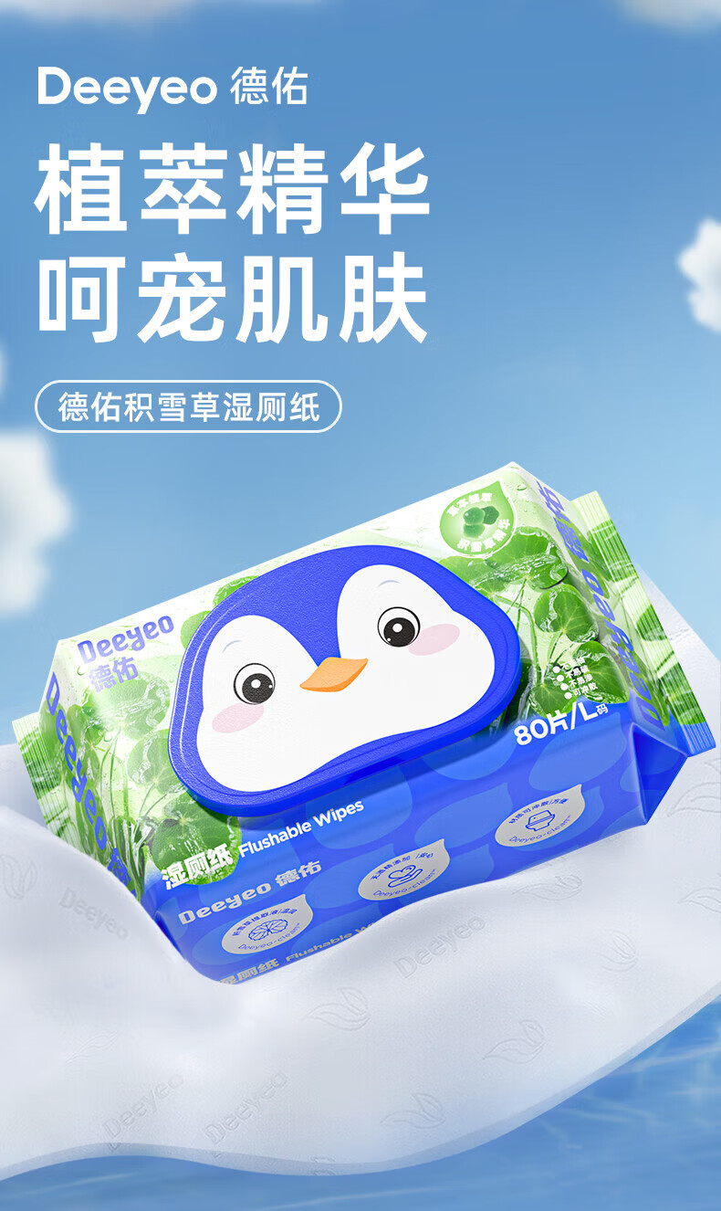 德佑湿厕纸加厚擦屁屁男士女士通用温和除菌湿纸巾家庭实惠装80抽 【新人体验】积雪草湿厕纸 80抽 3包
