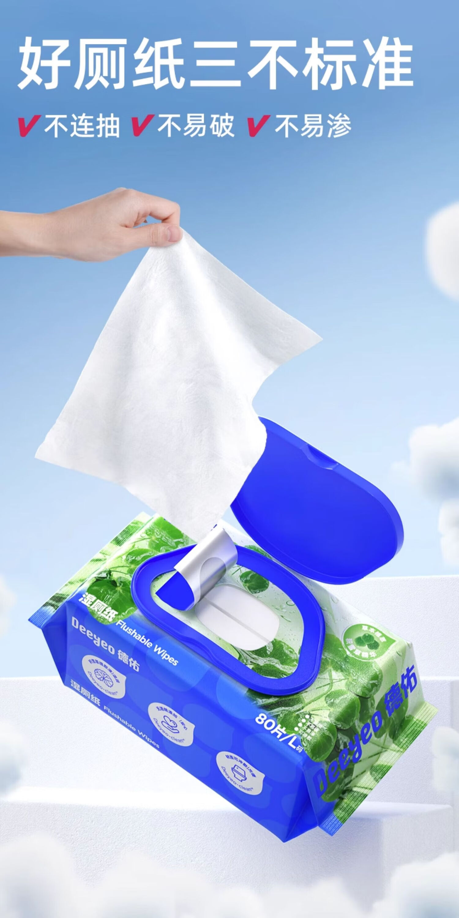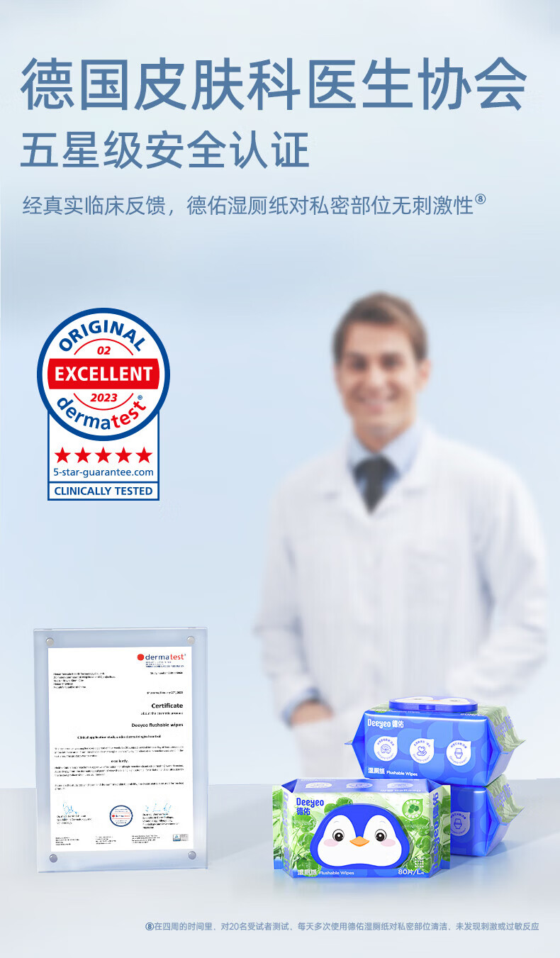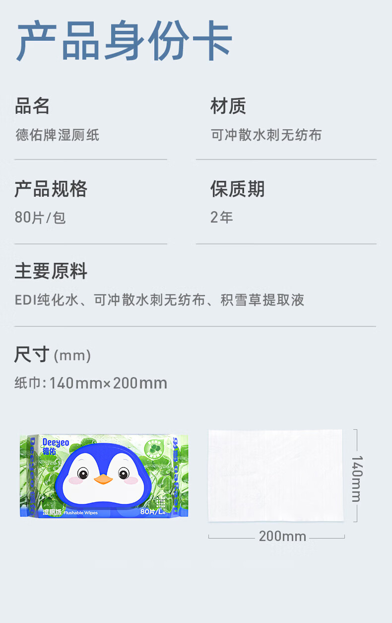 德佑湿厕纸加厚擦屁屁男士女士通用温和除菌湿纸巾家庭实惠装80抽 【新人体验】积雪草湿厕纸 80抽 3包