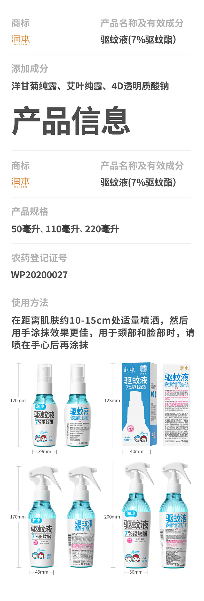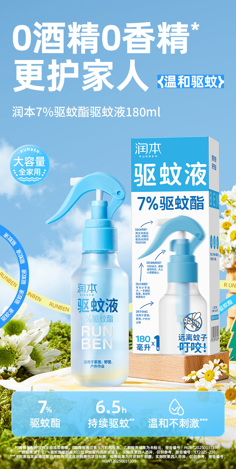 润本驱蚊液防蚊喷雾户外防蚊虫叮咬驱蚊水户外专用防蚊液蚊怕水 110ml 1瓶 7%驱蚊酯无香驱蚊5.7h