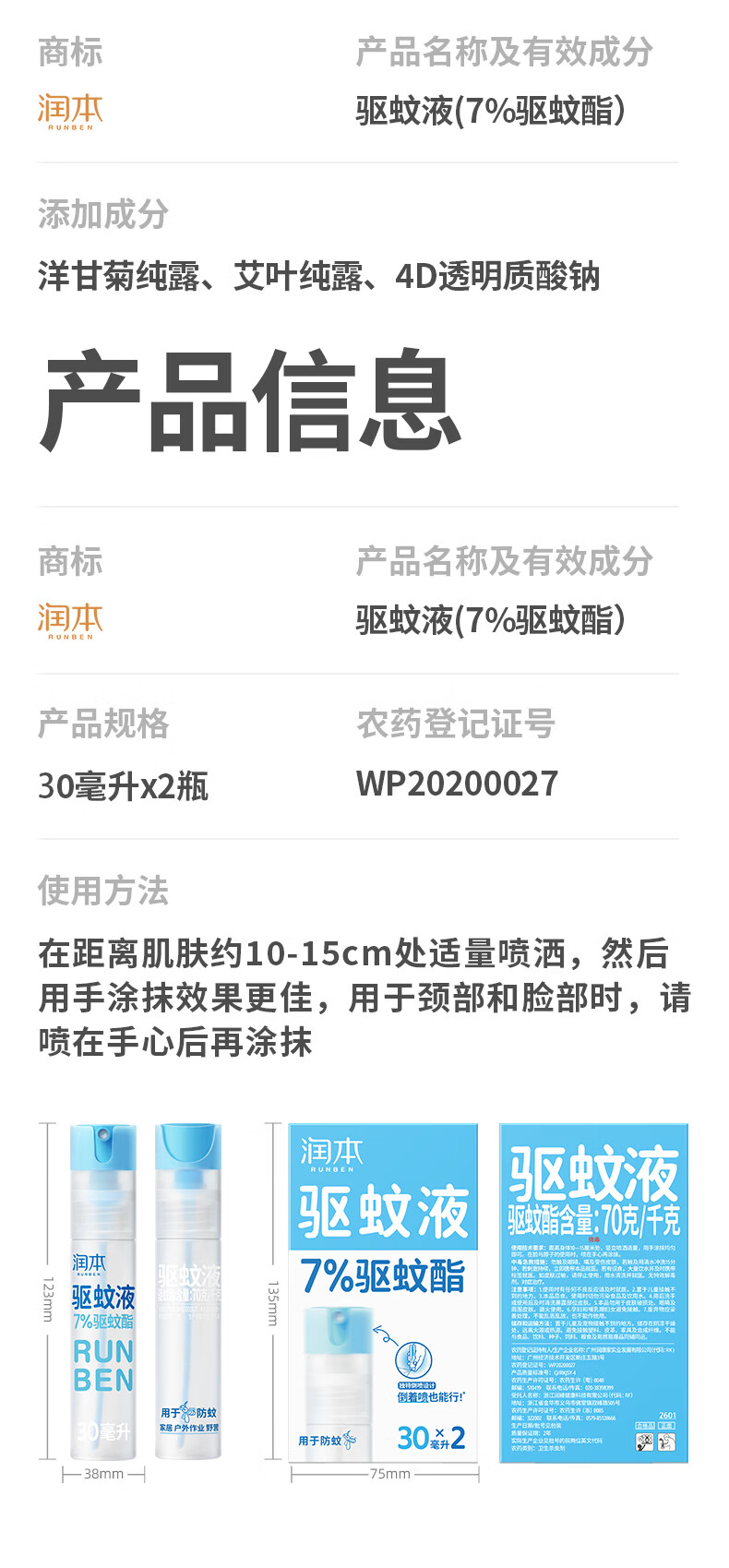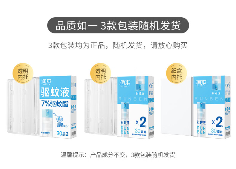 润本驱蚊液驱蚊喷雾花露水户外防蚊虫叮咬驱蚊水派卡瑞丁防蚊喷雾 30ml 2瓶 【强效驱蚊8h】王牌爆款