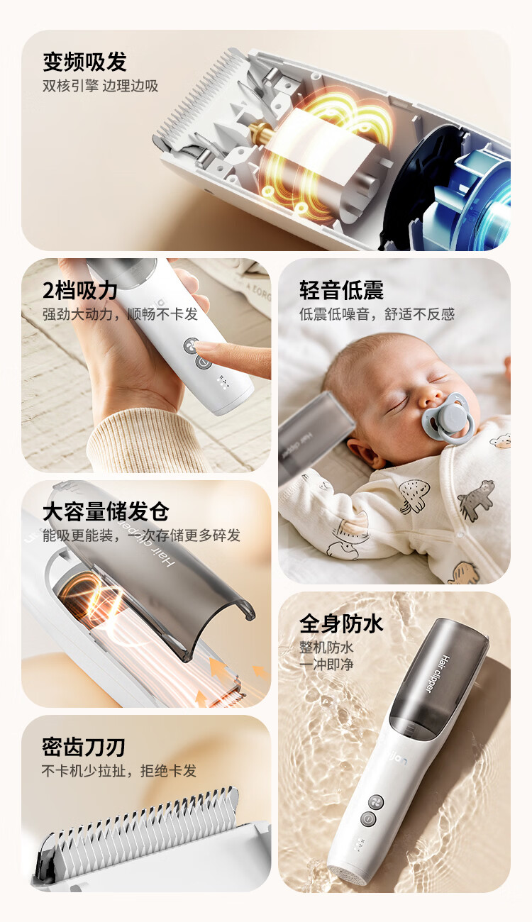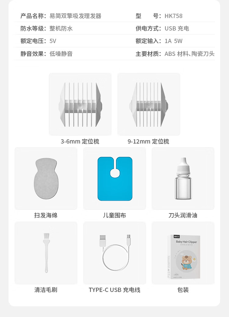 易简(yijan)自动吸发婴儿理发器儿童理发器剪发器宝宝剃头器电推子HK968II