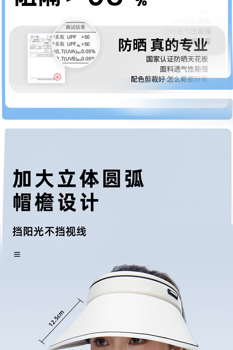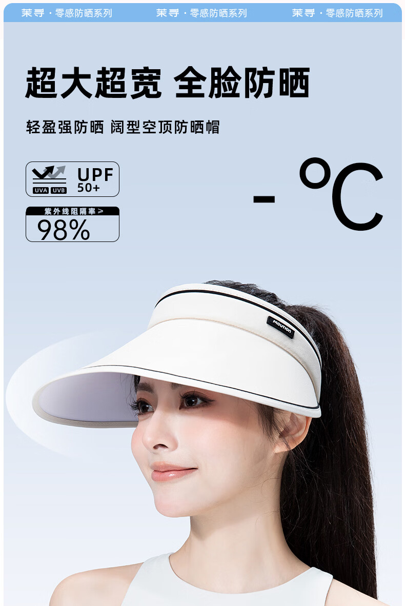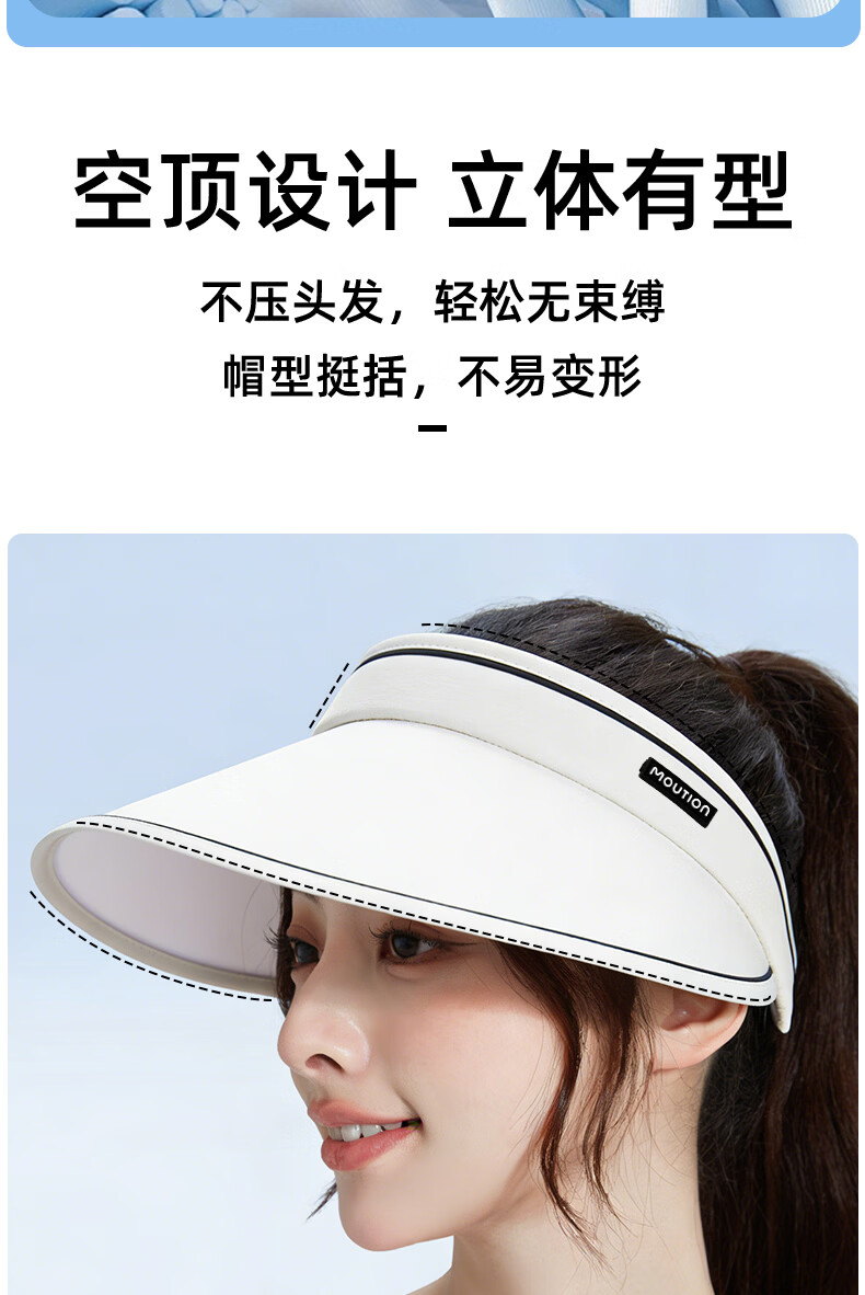 茉寻防晒空顶帽女防紫外线秋夏季太阳帽遮阳帽子户外 乳白色 可调节