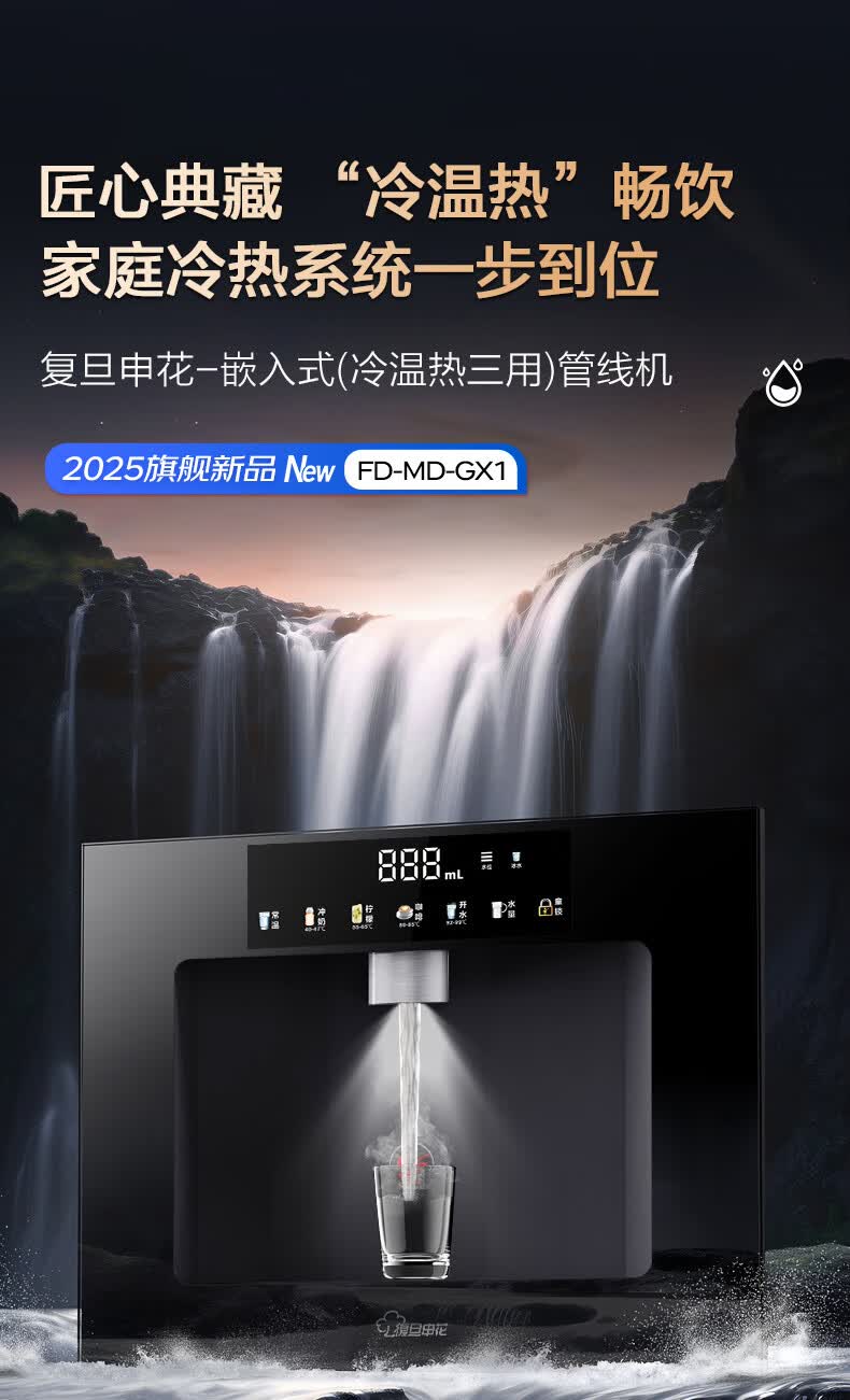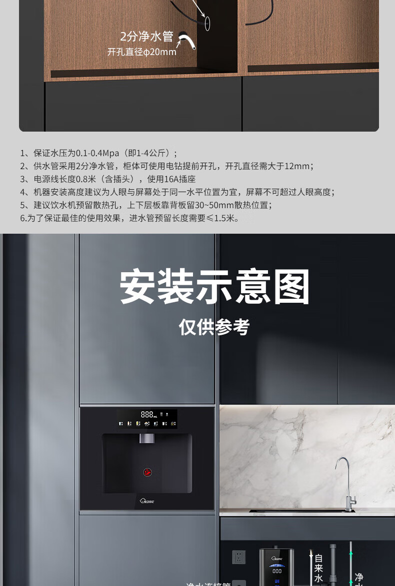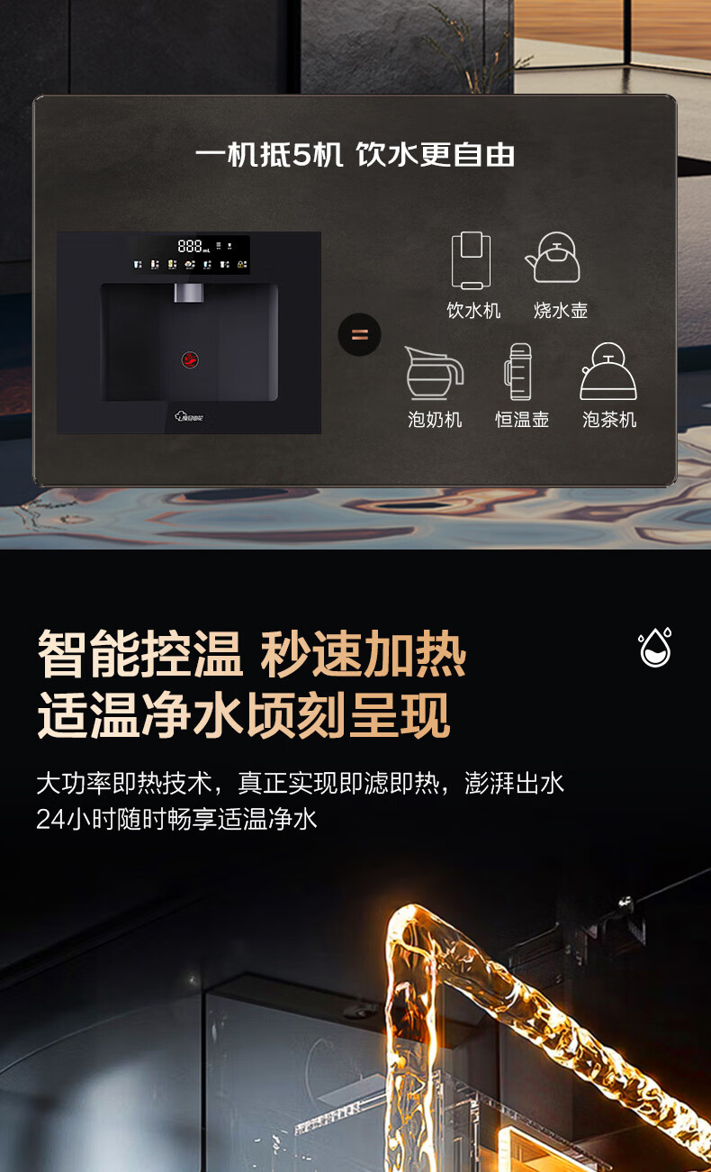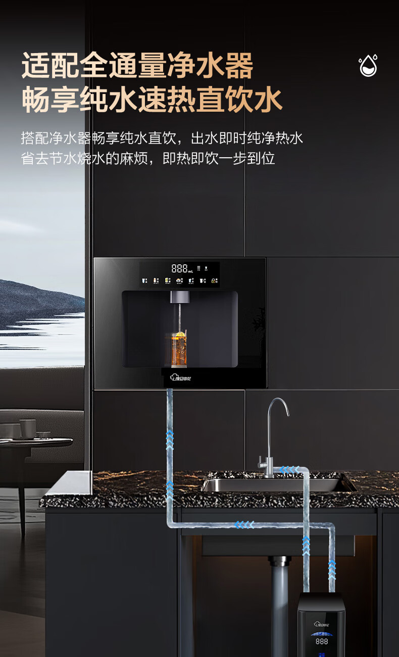 复旦申花净水器伴侣家用即热嵌入式管线机 餐边柜饮水机加热一体 自来水过滤器净水套装厨房嵌入式直饮水机 黑色嵌入式-接净水器