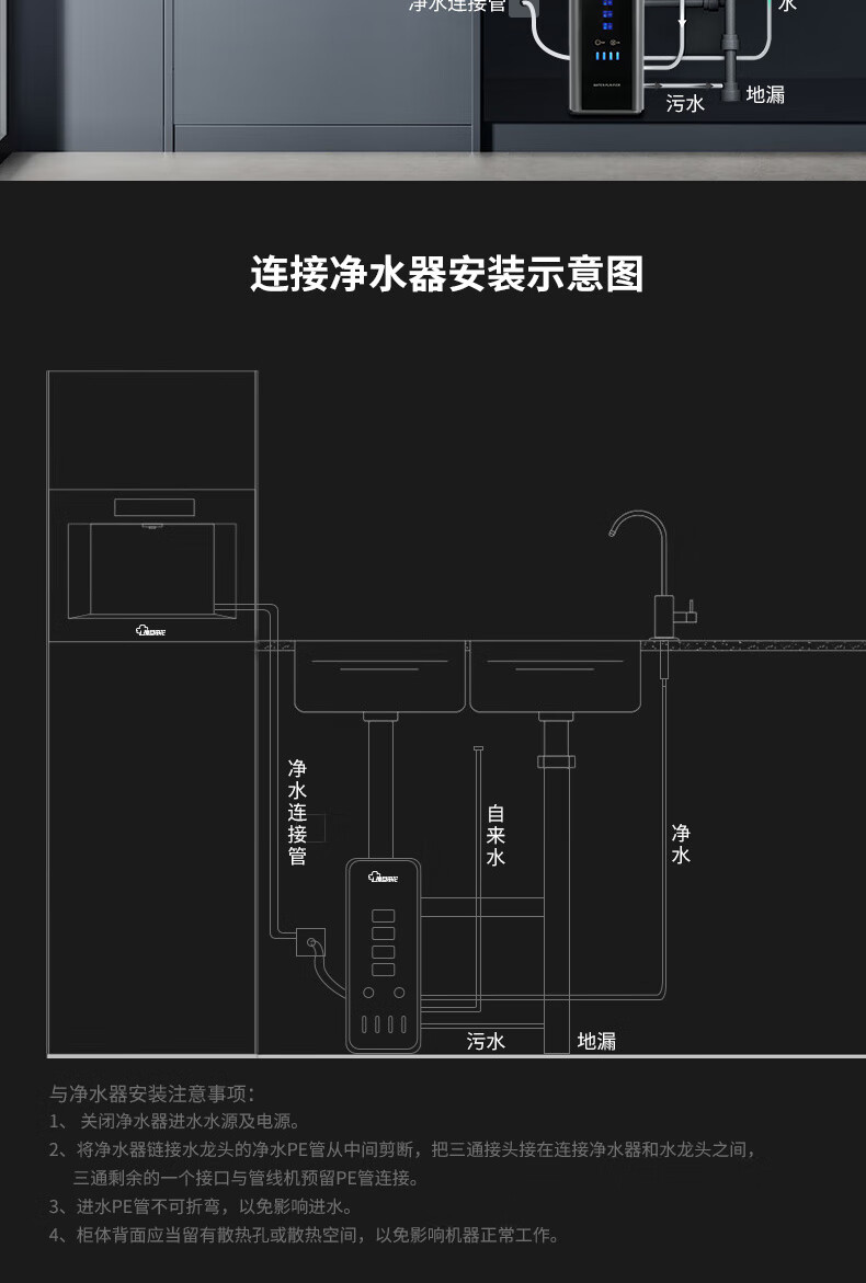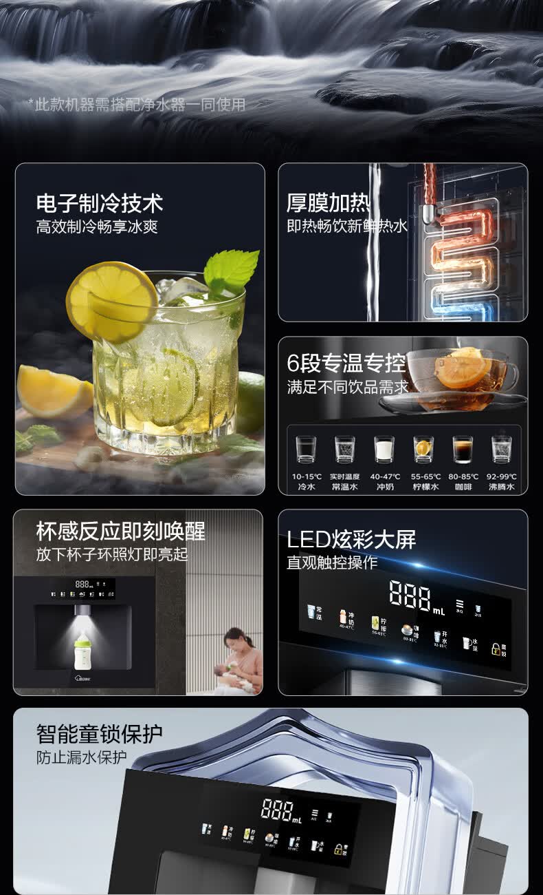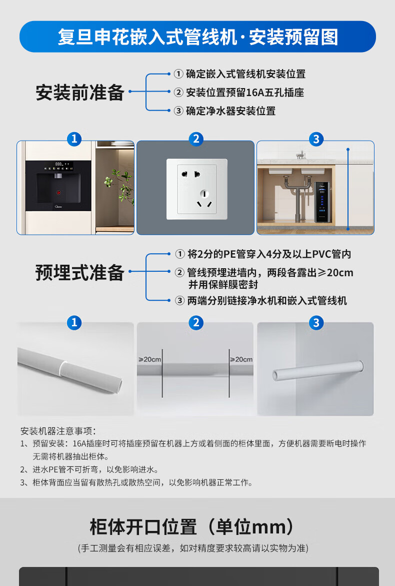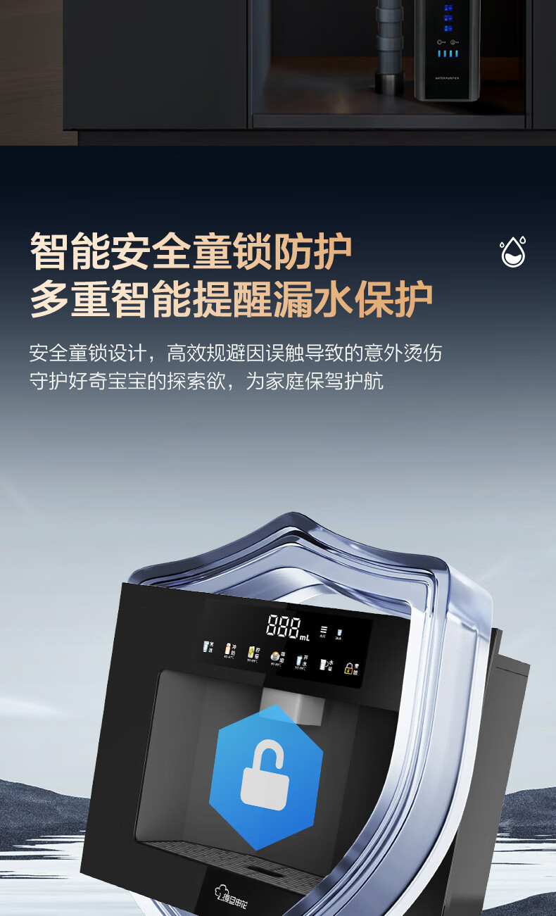 复旦申花净水器伴侣家用即热嵌入式管线机 餐边柜饮水机加热一体 自来水过滤器净水套装厨房嵌入式直饮水机 黑色嵌入式-接净水器