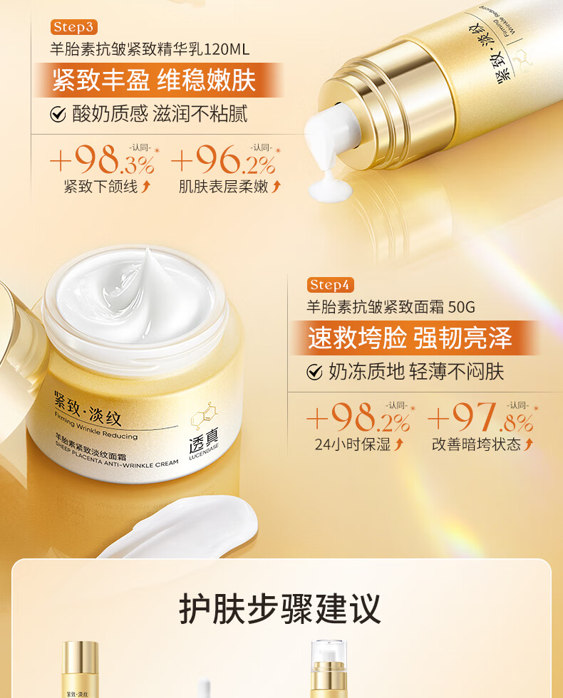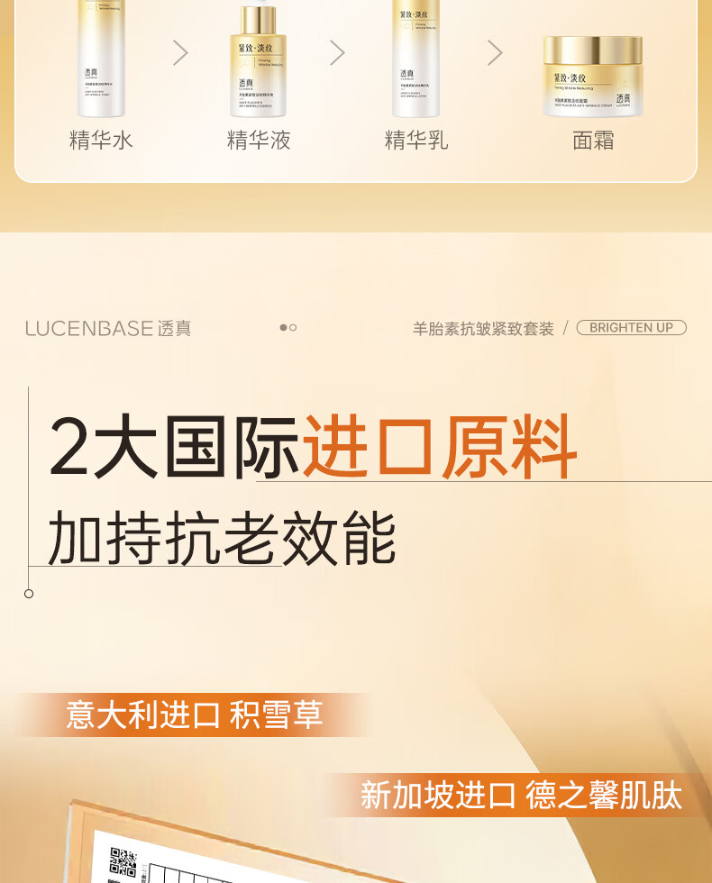 透真羊胎素水乳套装抗皱紧致衰老淡纹提亮补水保湿护肤品礼盒35-50岁 【抗皱紧致】羊胎素水乳4件套