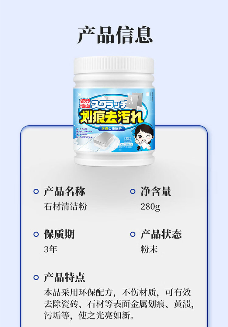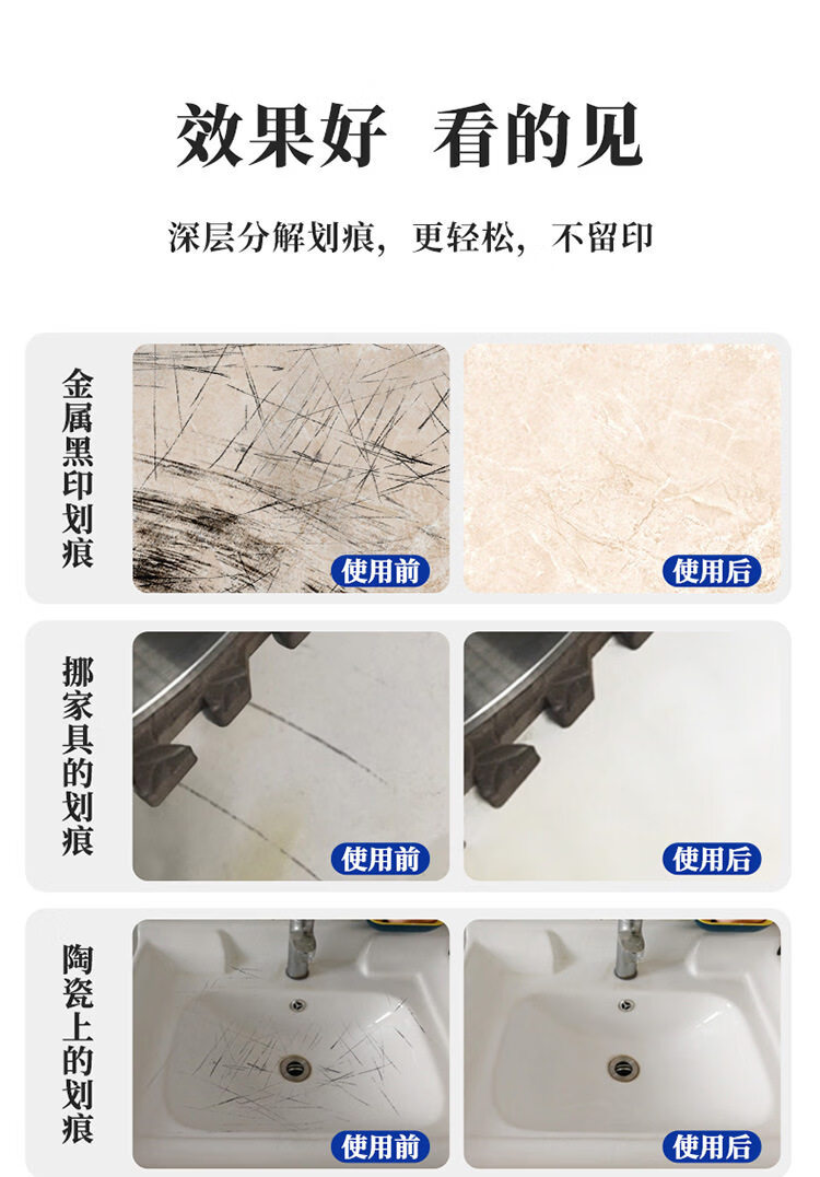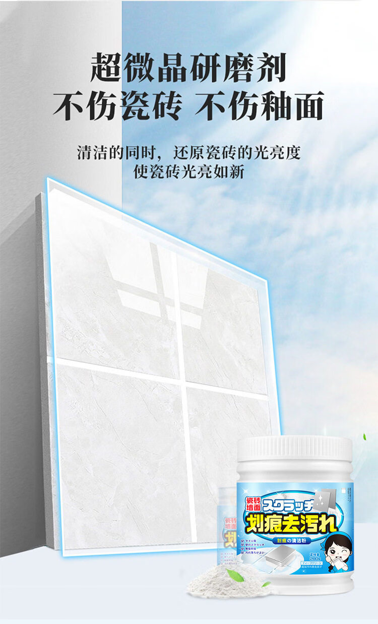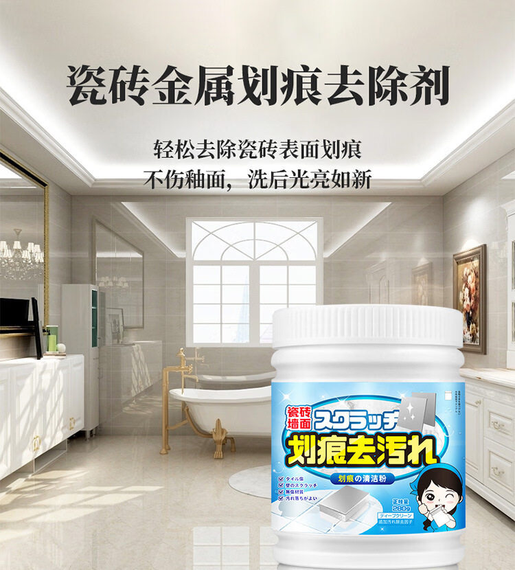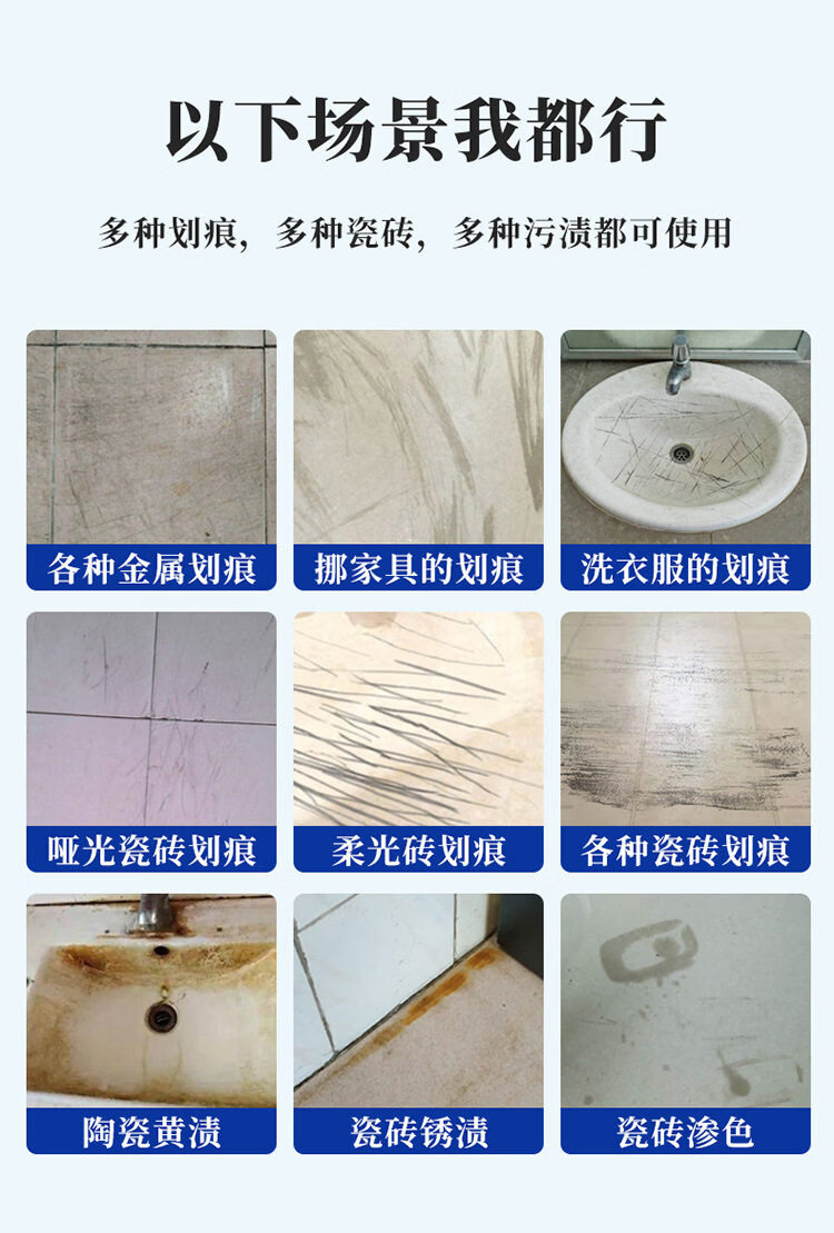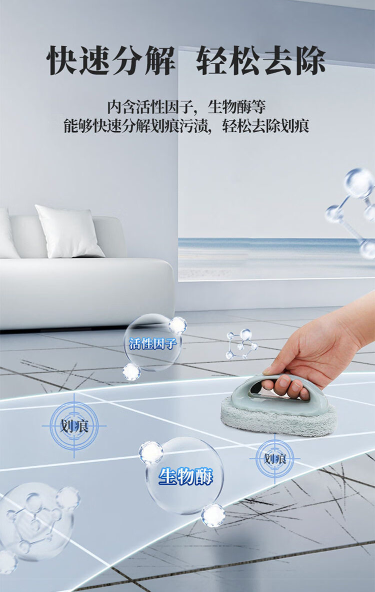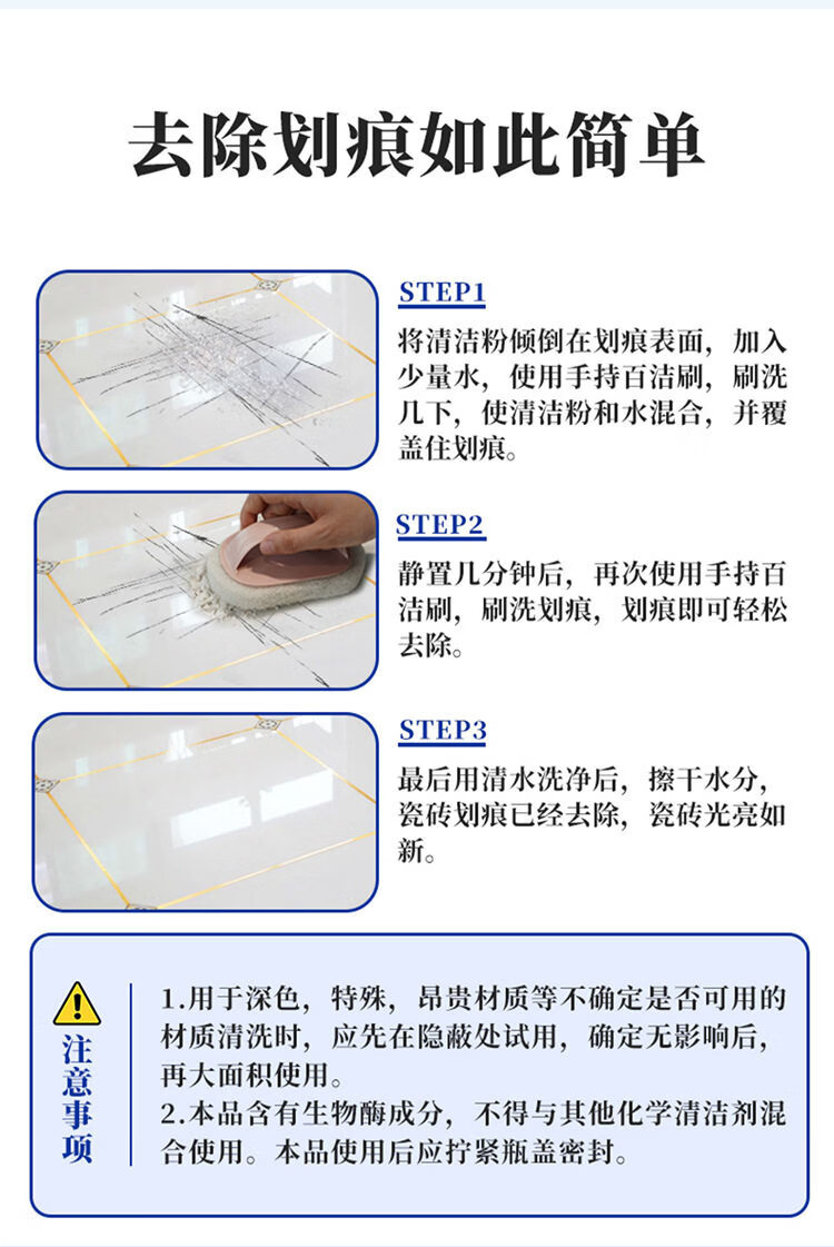 【日本】瓷砖划痕清除剂柔光砖釉面地砖金属黑印清洗剂除痕修复剂 【轻松除划痕黑印】一盒装 280g 送手柄刷