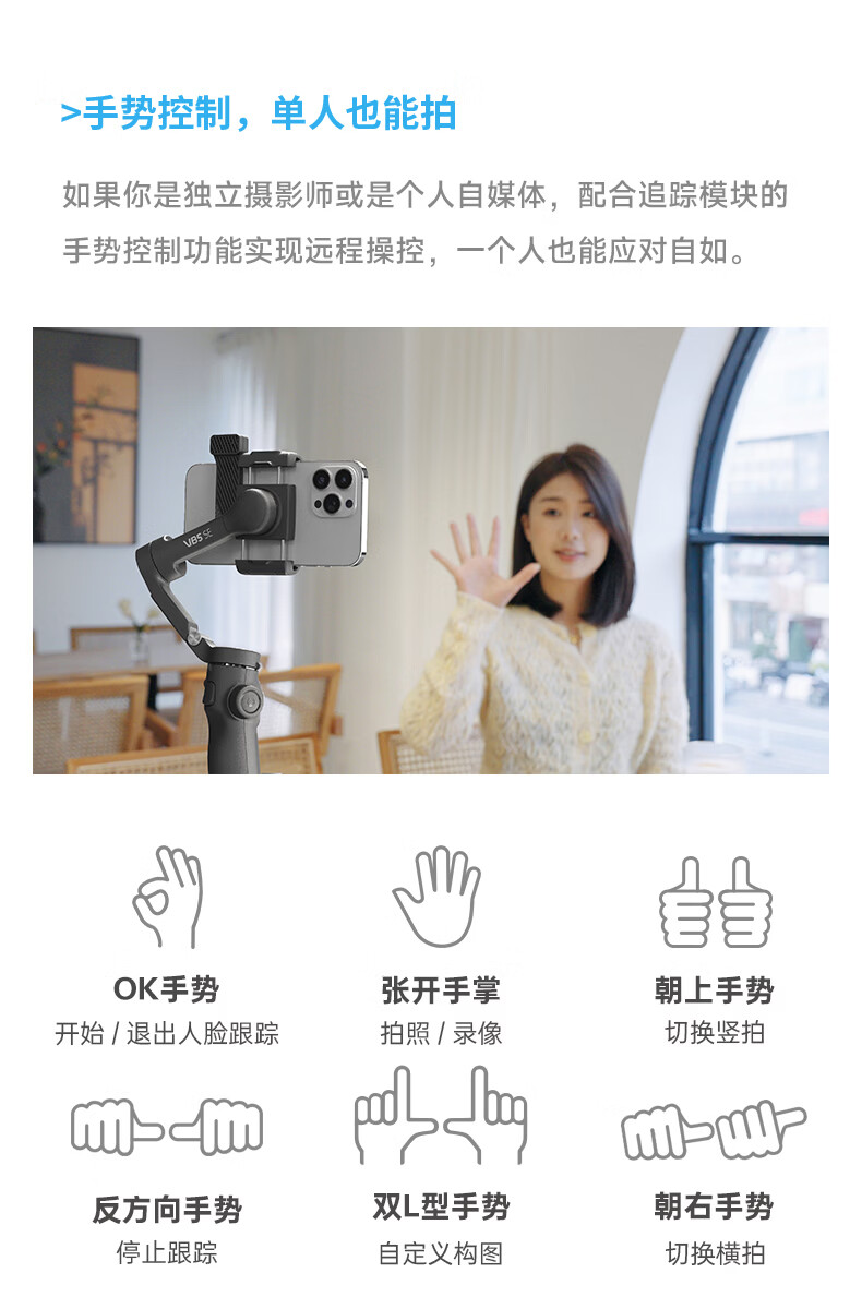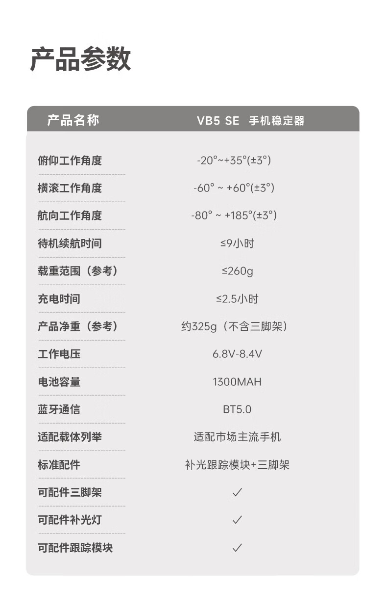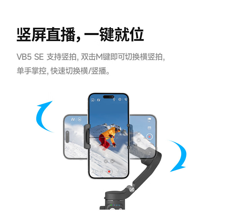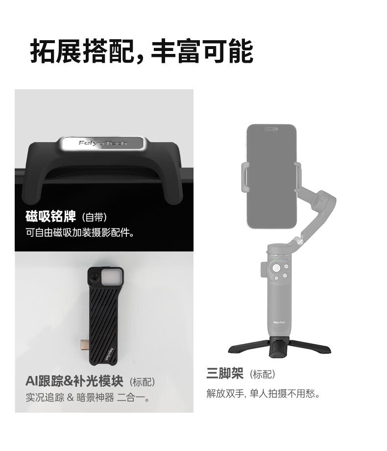 FeiyuTech飞宇VB5SE手机稳定器 三轴防抖vlog摄影神器 手持云台支架 便携折叠收纳 AI智能跟拍补光 VB5SE标配 (AI跟拍补光)灰黑色