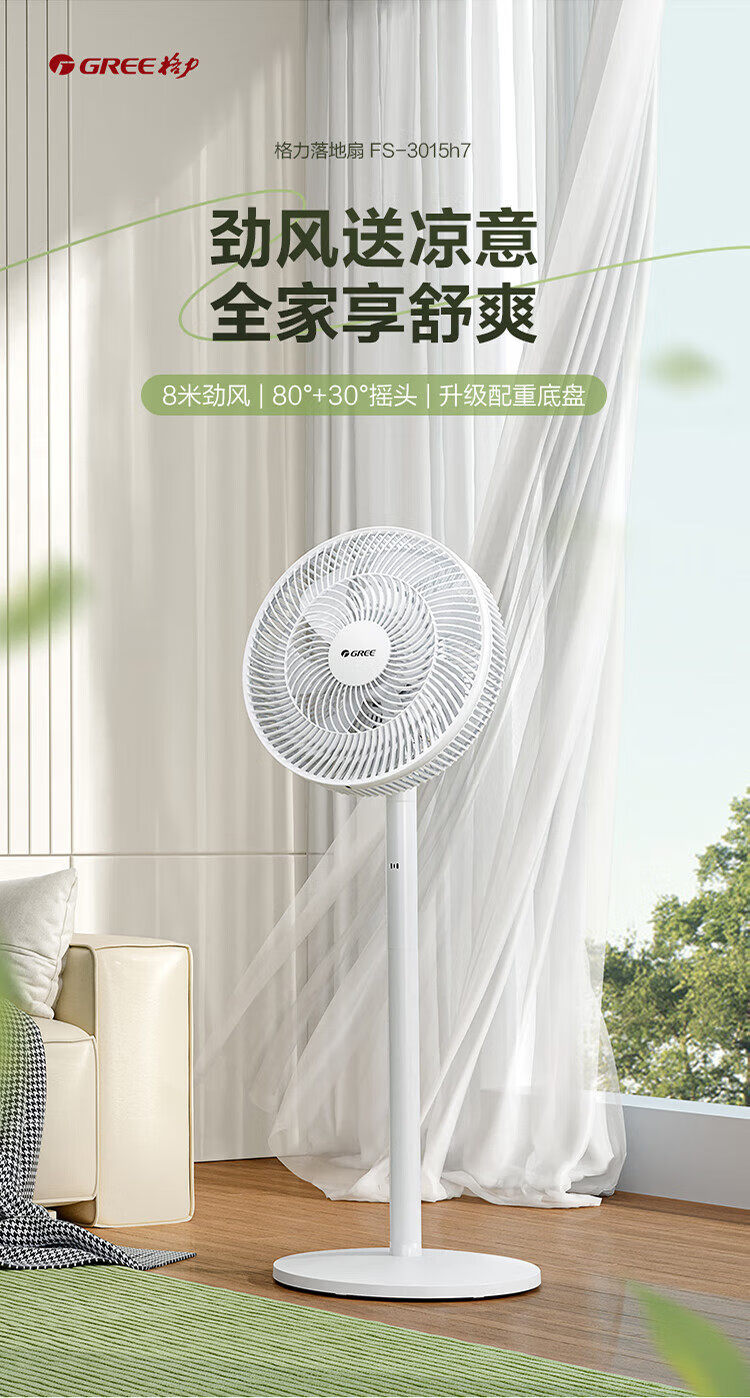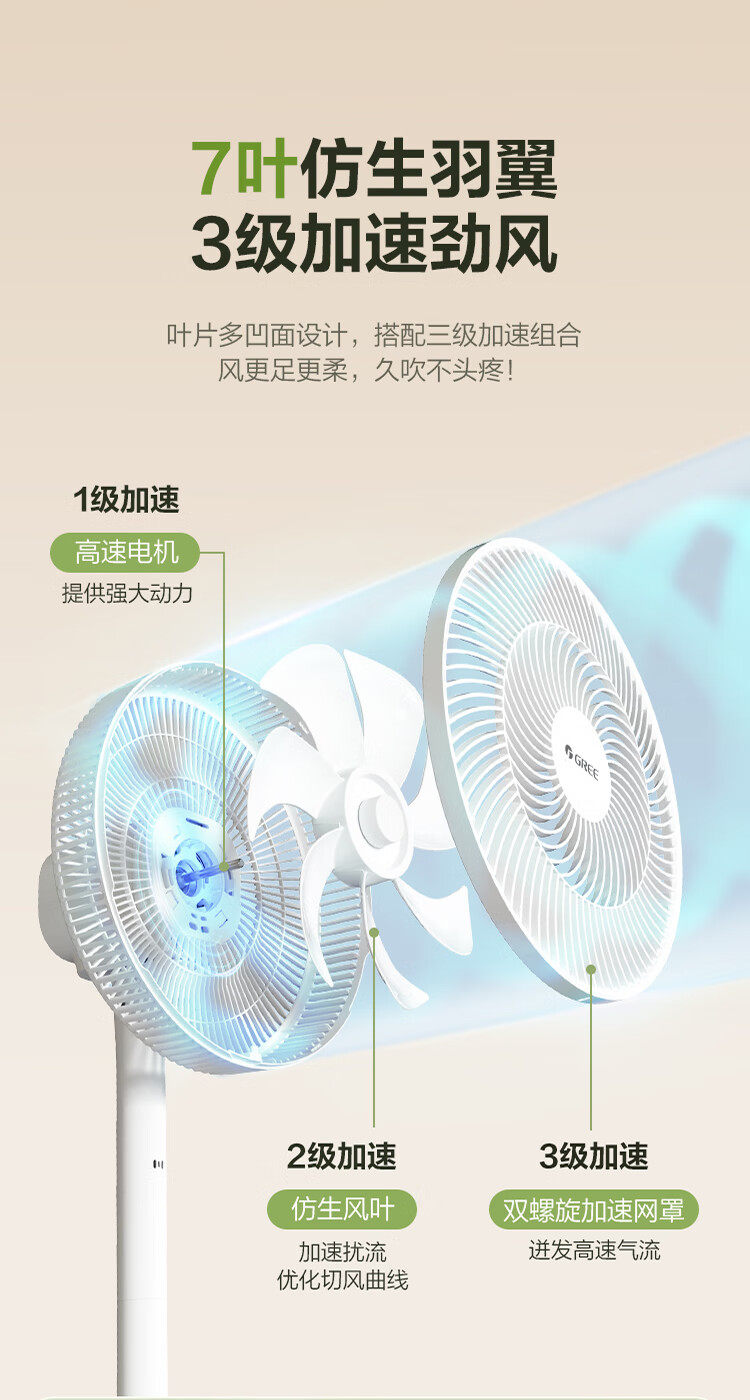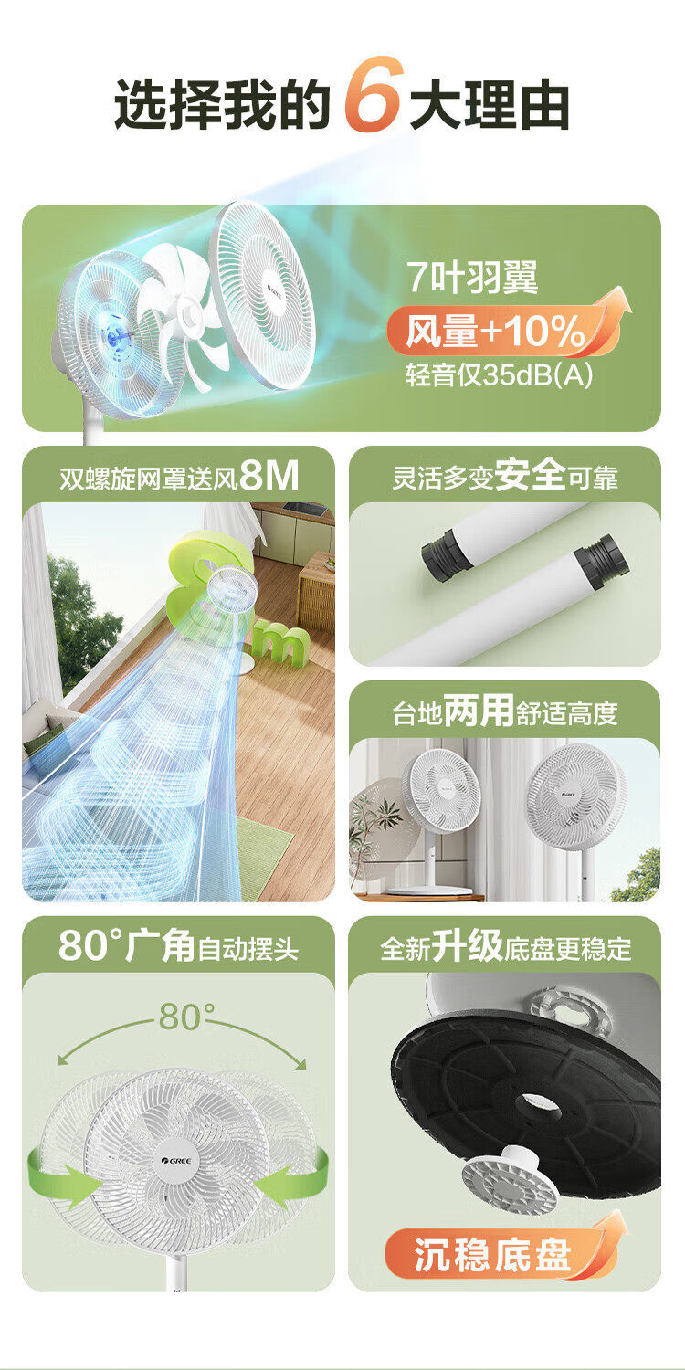 格力电风扇落地扇7叶大风量客厅卧室轻音低躁节能省电扇遥控家用宿舍办公室台地立式两用风扇FD-3515h7 5叶14寸遥控台地两用(FD-40X78Bh5)