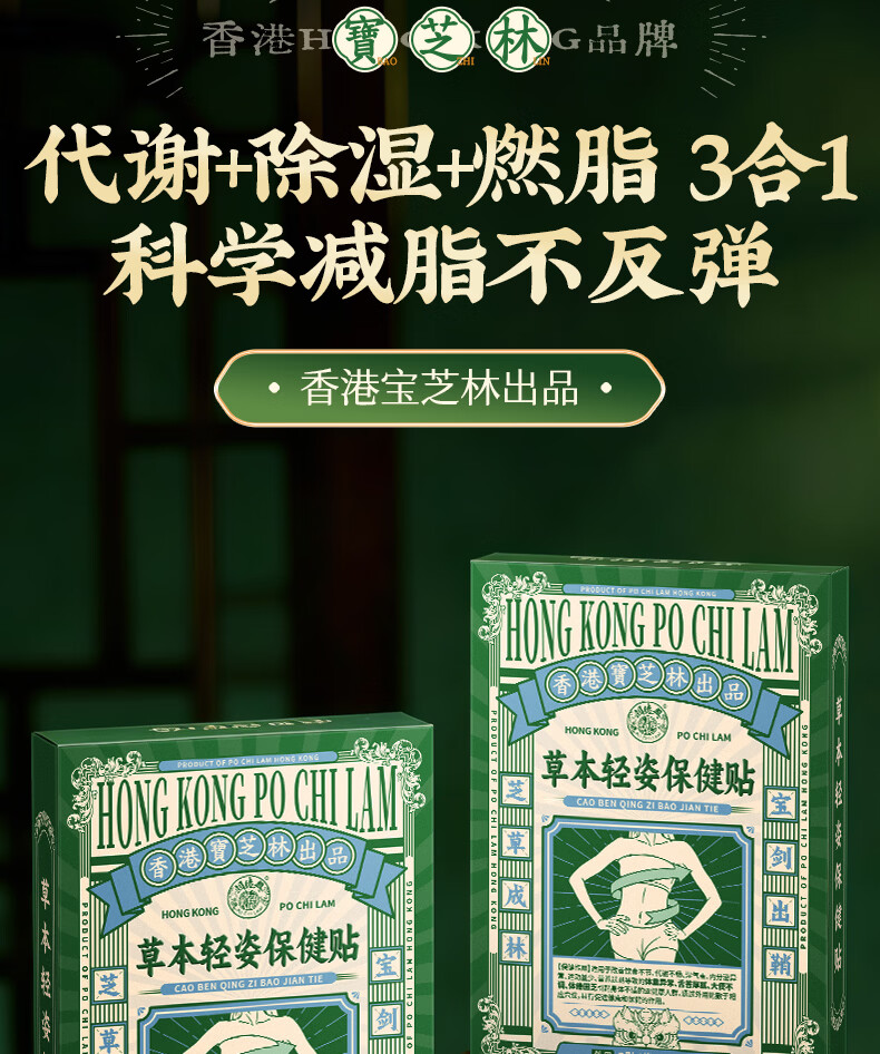 关德兴香港宝芝林减肥贴瘦大肚子燃脂不反弹肚脐祛湿贴排毒强效快速3盒