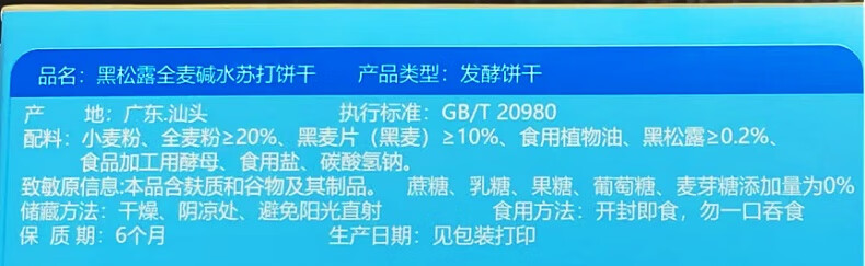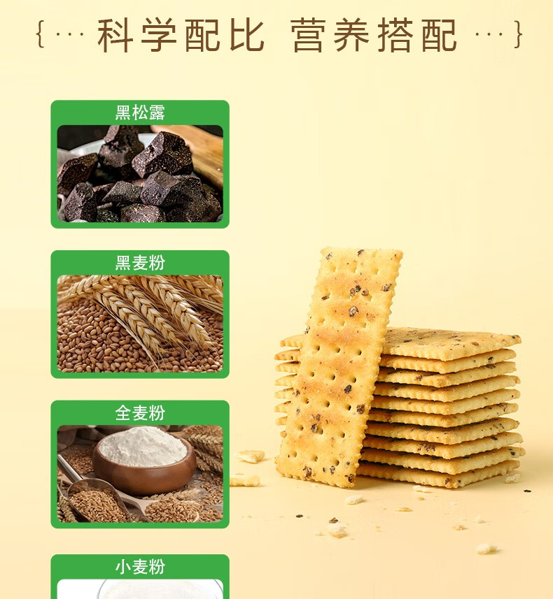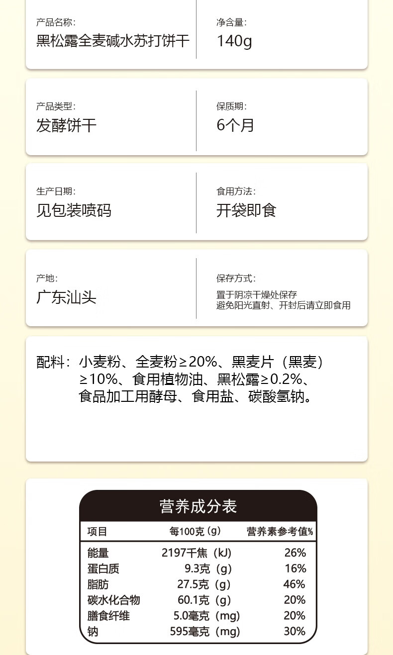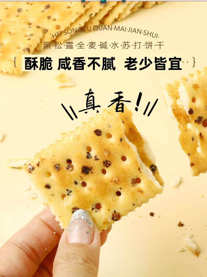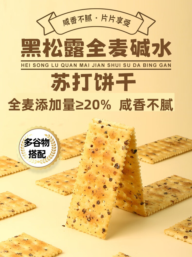 佰佳淇味黑松露全麦碱水苏打饼干代餐小吃零食夜宵休闲食品140g/盒 黑松露全麦苏打饼干3盒