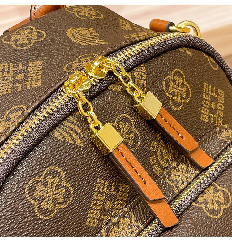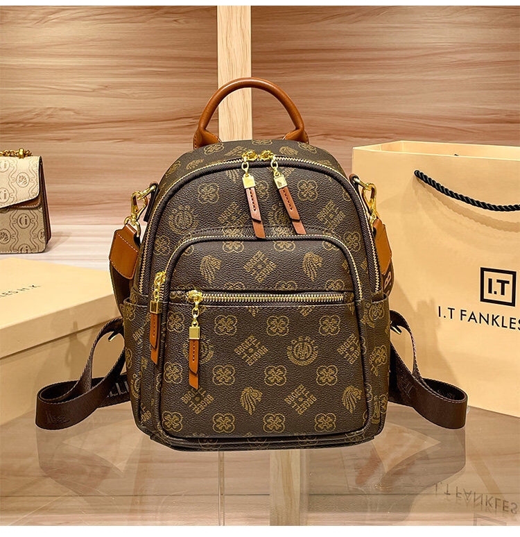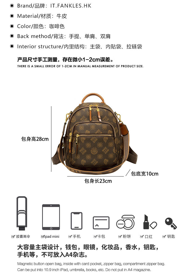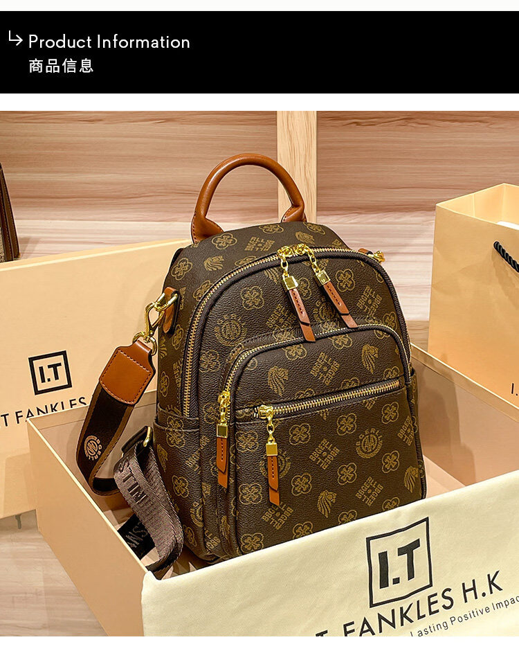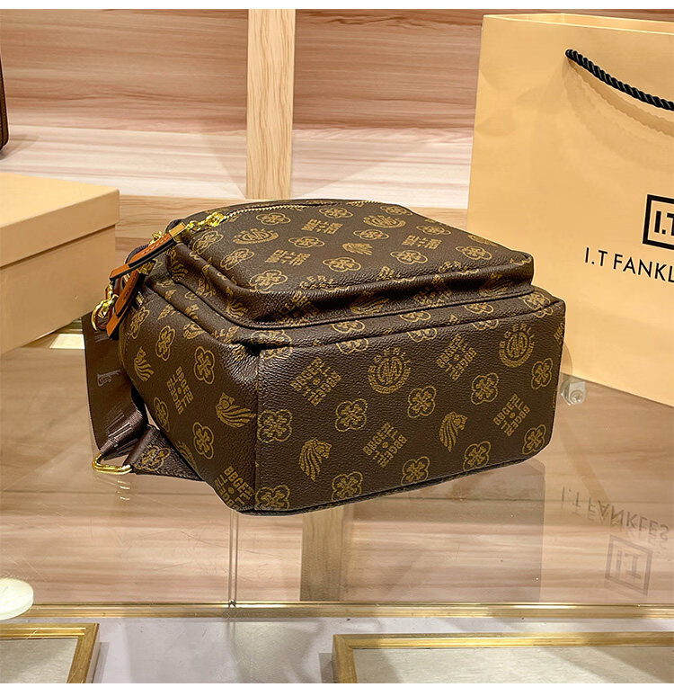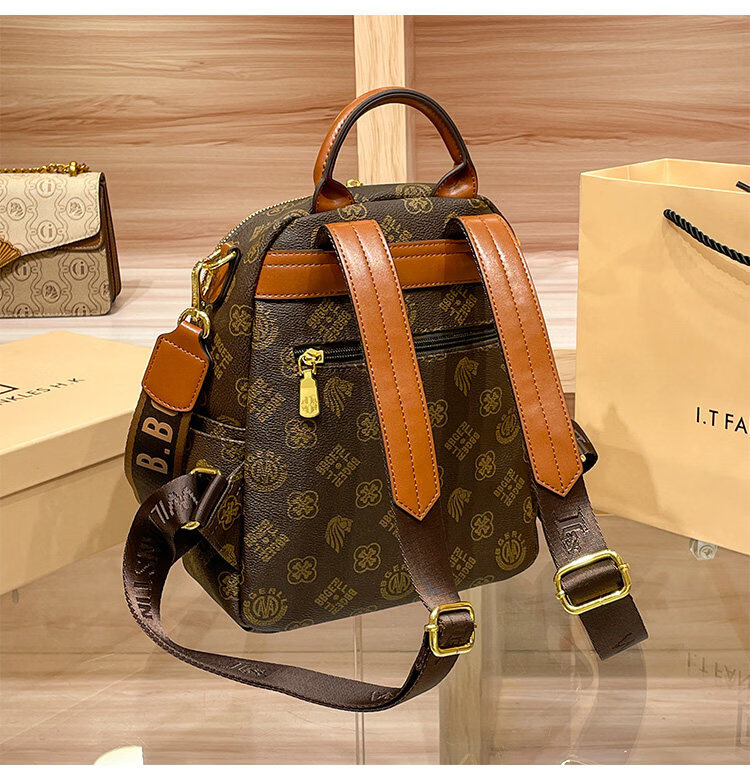 IT MANCLACYK香港代购真皮背包女2025新款老花双肩包潮流时尚单肩包 兔棕色_专柜礼盒套装