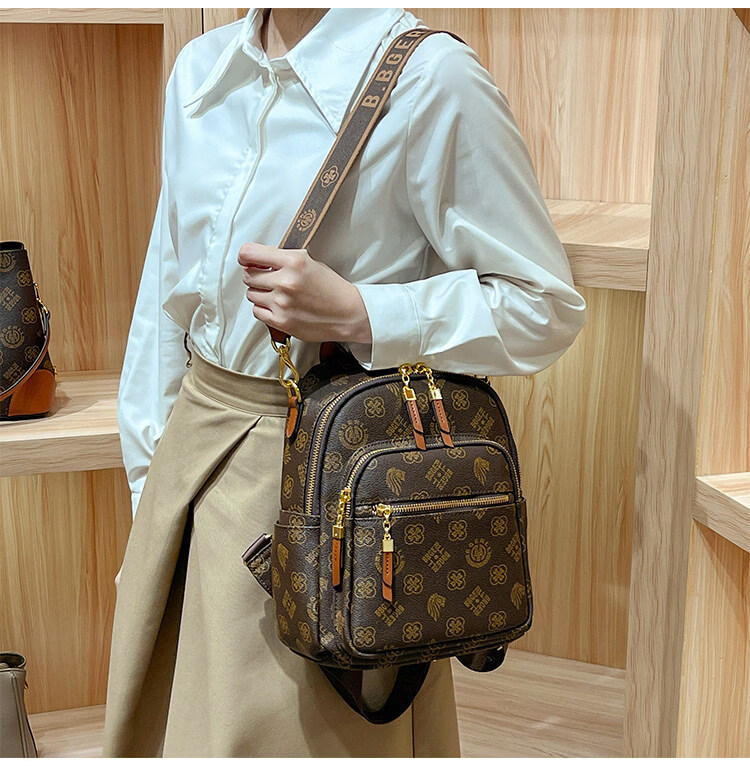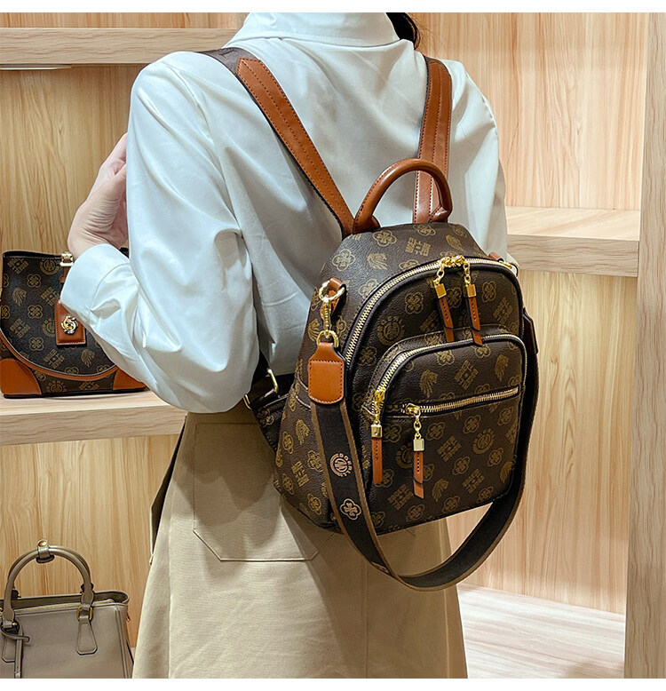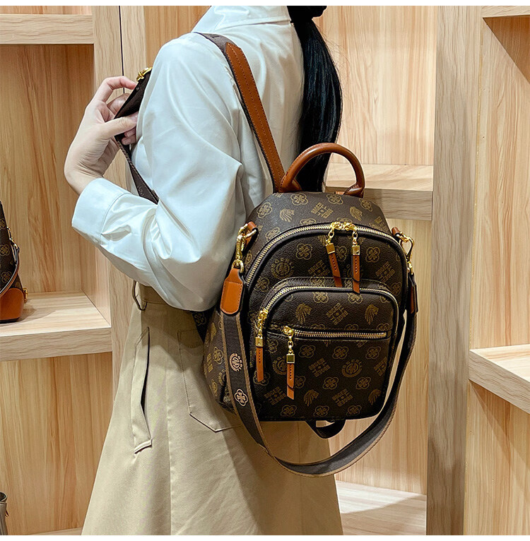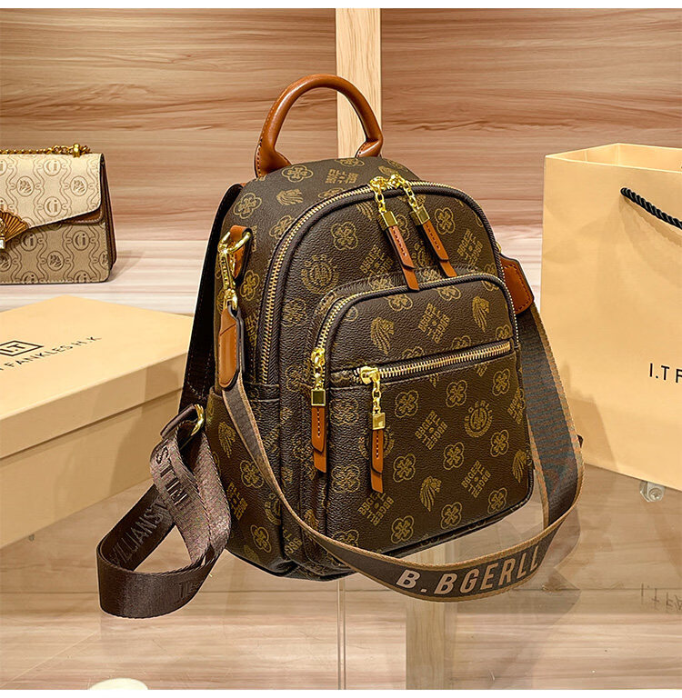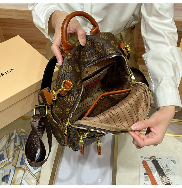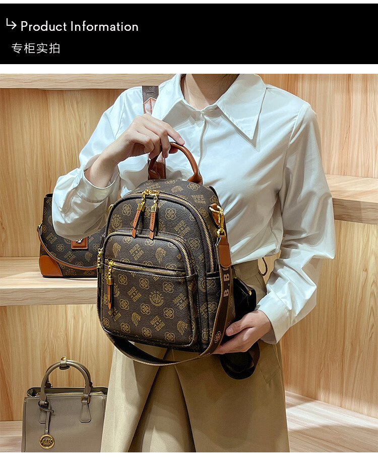 IT MANCLACYK香港代购真皮背包女2025新款老花双肩包潮流时尚单肩包 兔棕色_专柜礼盒套装
