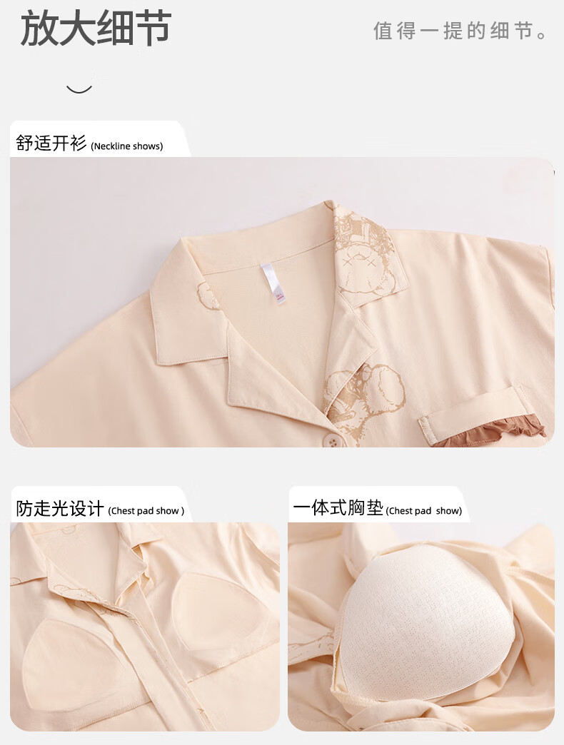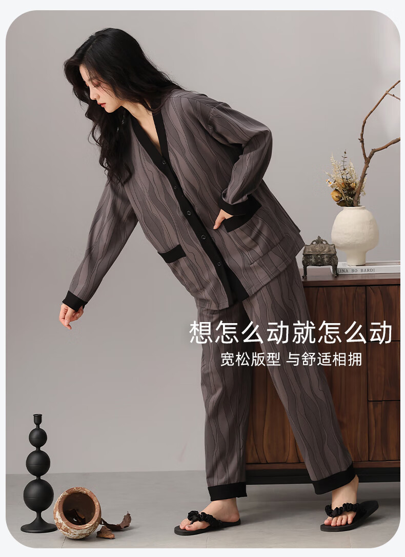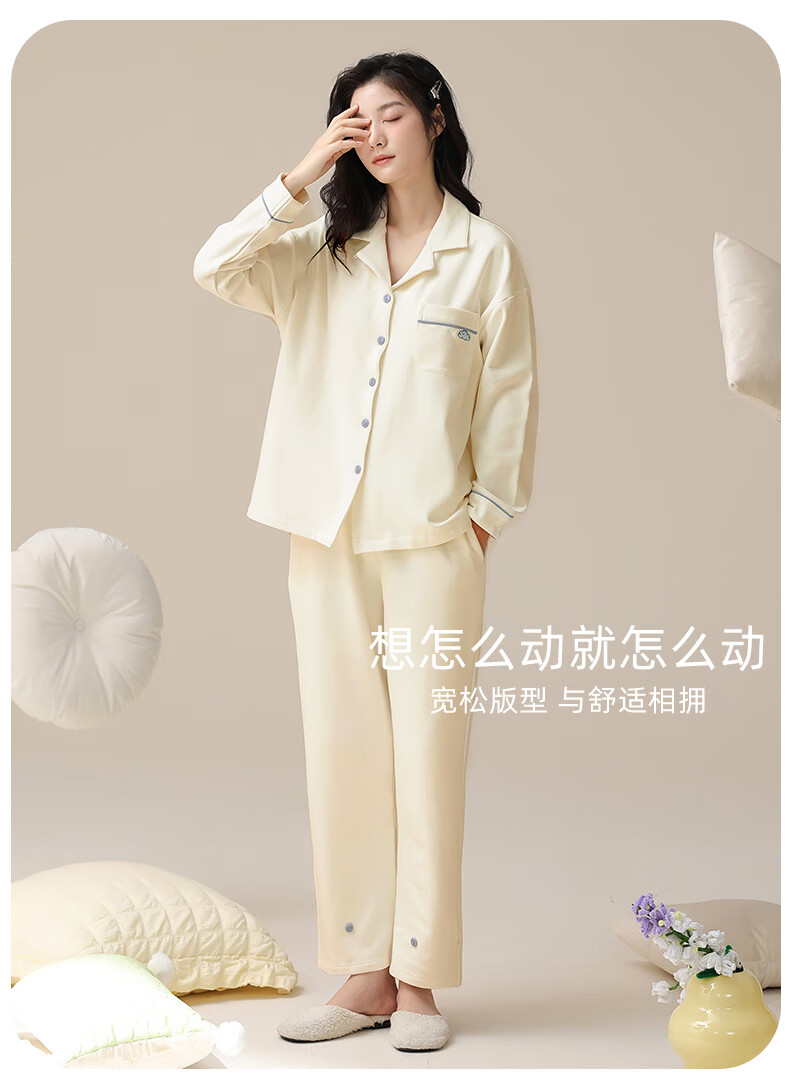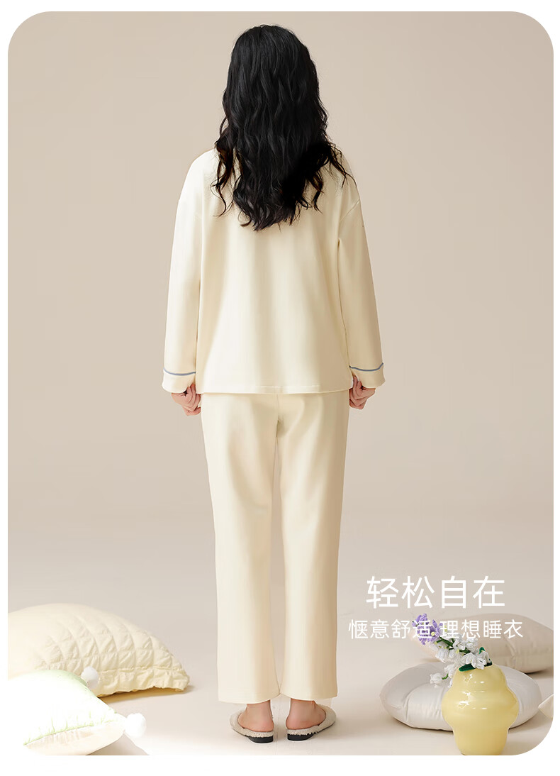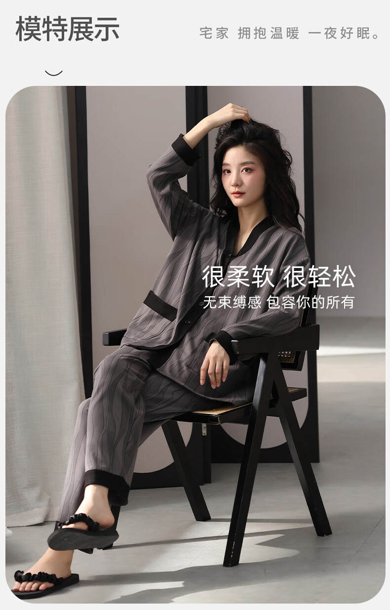 洁丽雅睡衣女士秋冬女纯棉长袖长裤套装高级感带胸垫可外穿家居服女 【100%棉】浓情可可(带胸垫) 412277 L (建议100-120斤)