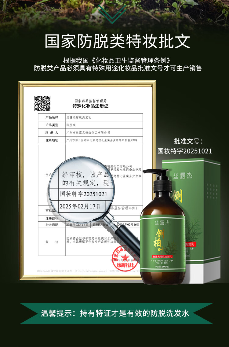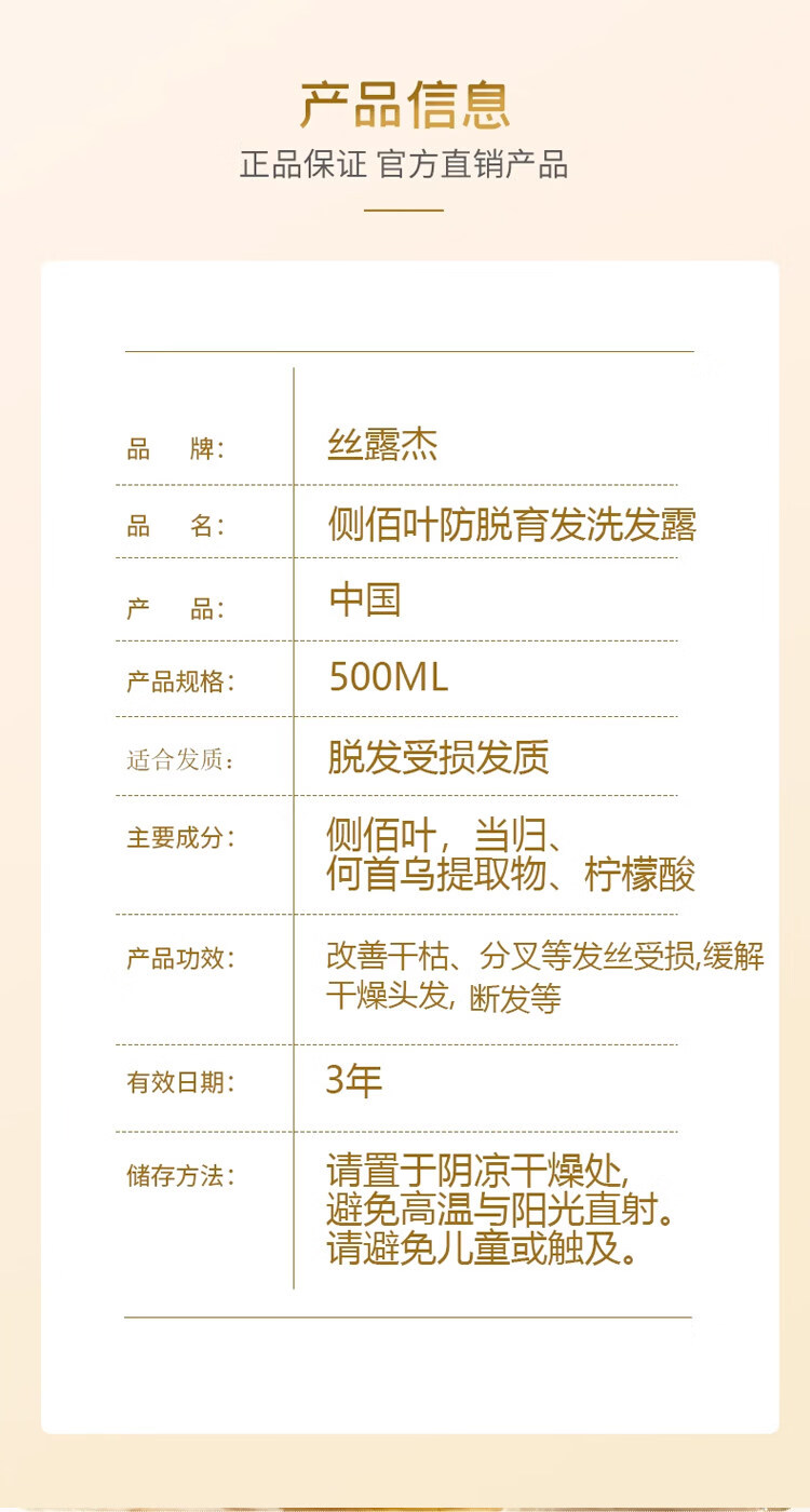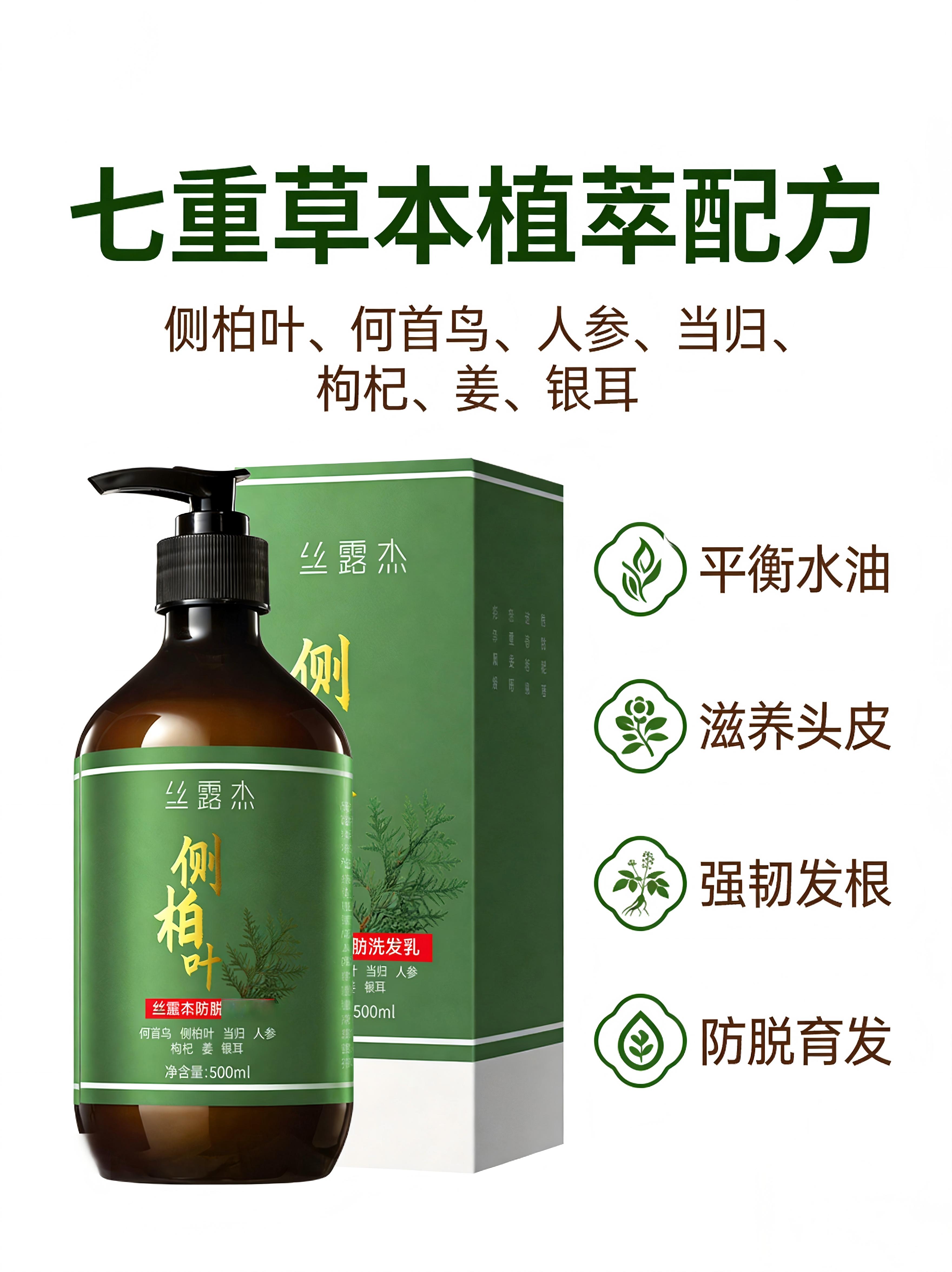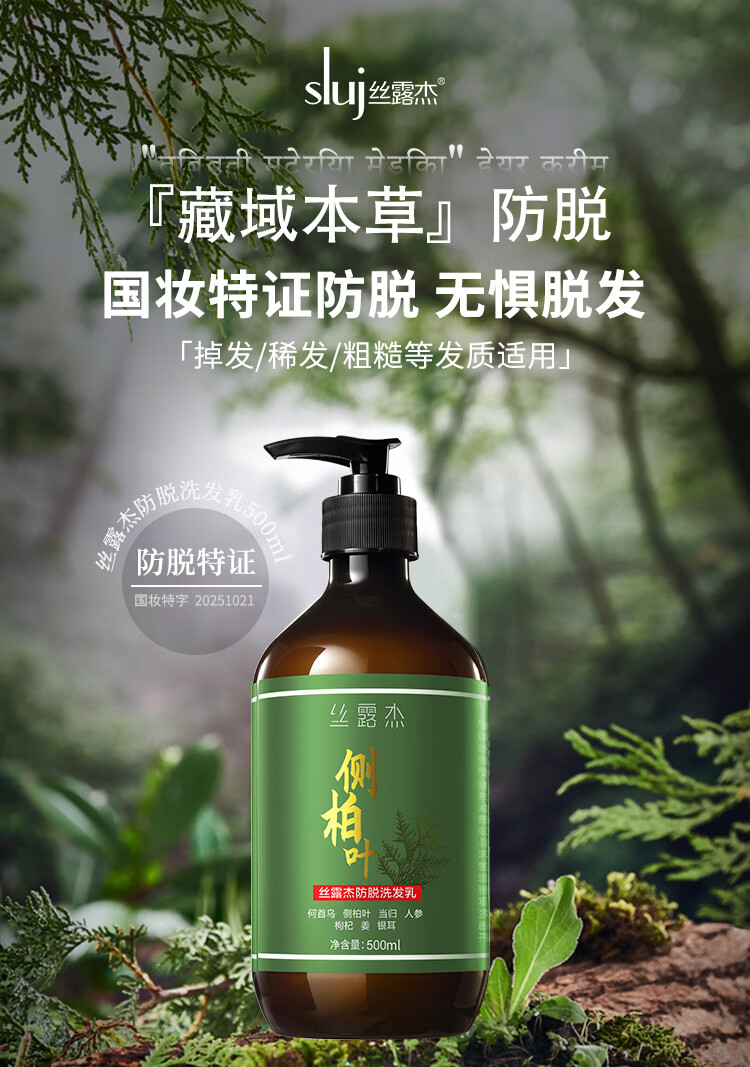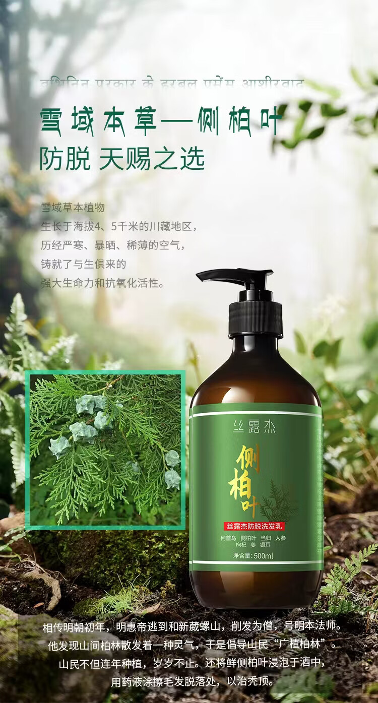 丝露杰(SLUJ)侧柏叶防脱洗发水;养发防断发 控油固发蓬松温和护发防断发正品 500ml