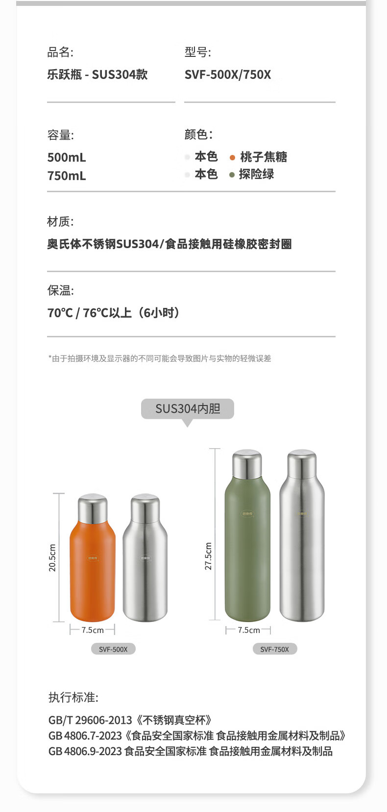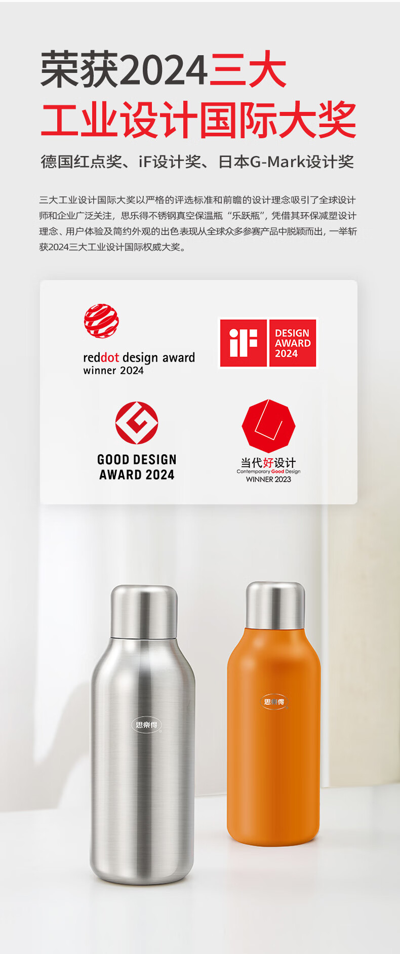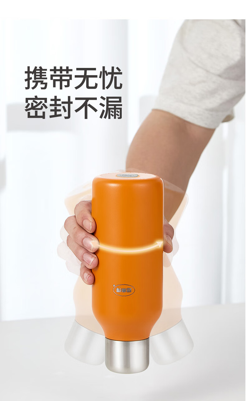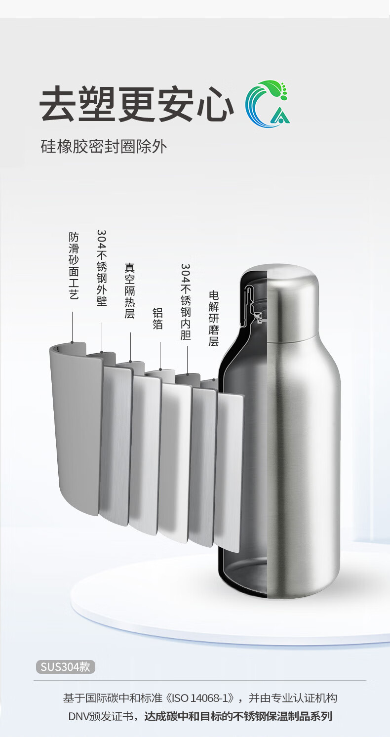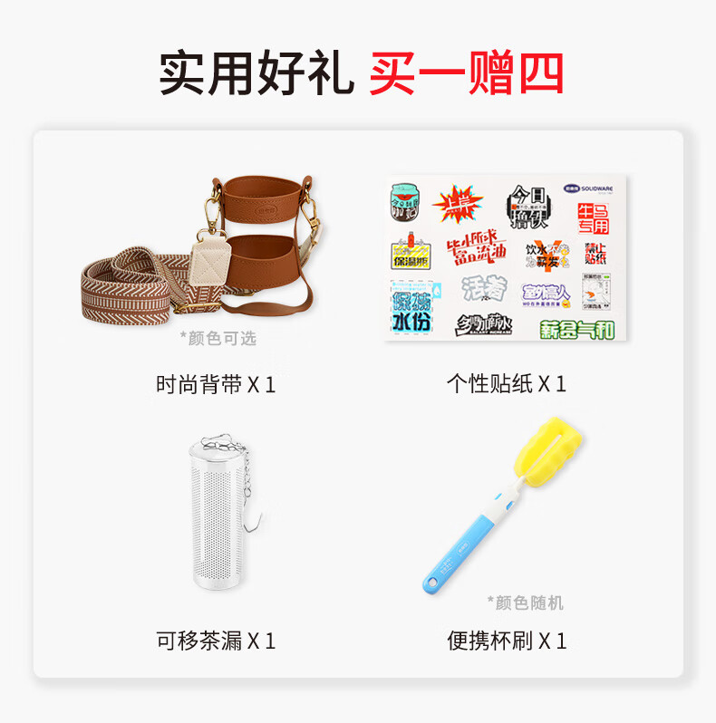 思乐得304不锈钢保温杯男士户外运动高颜值水瓶大容量女随手杯全钢瓶 304内胆 钢本色+棕色背带+茶漏+杯刷+贴纸500ml