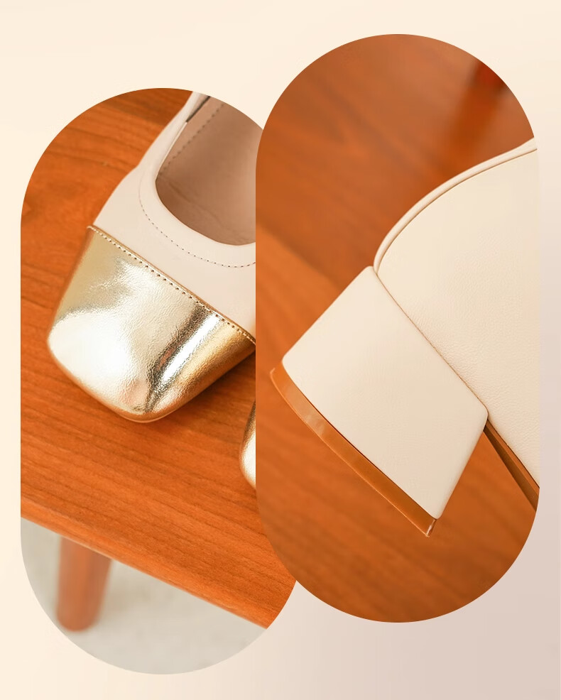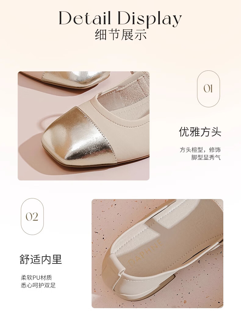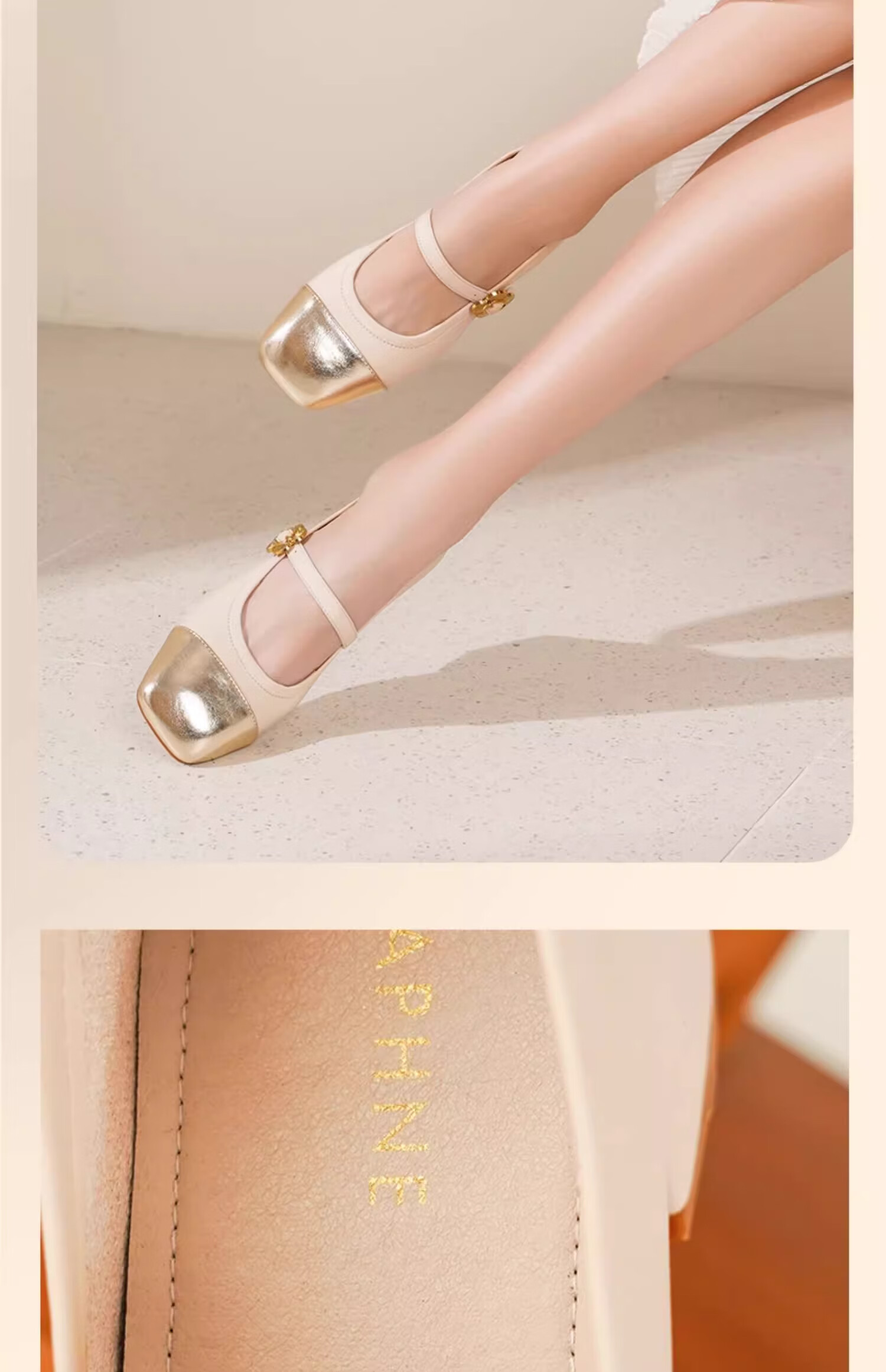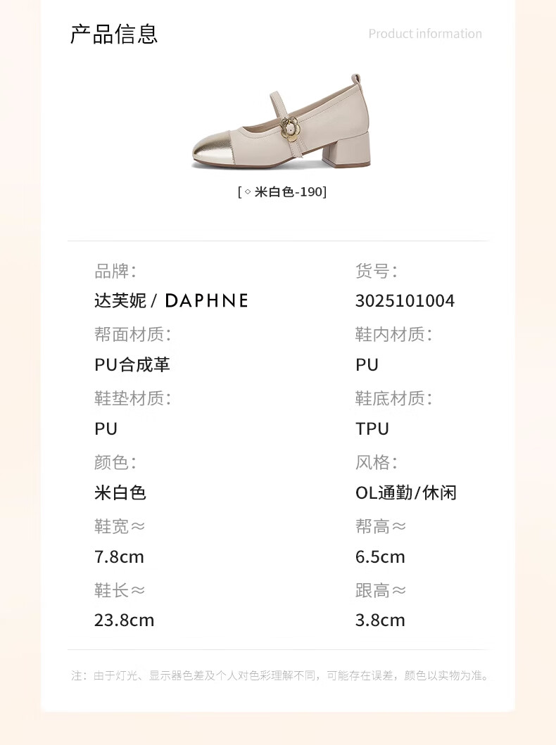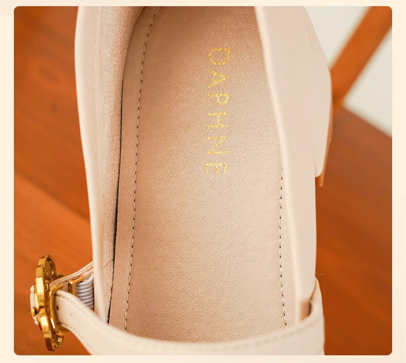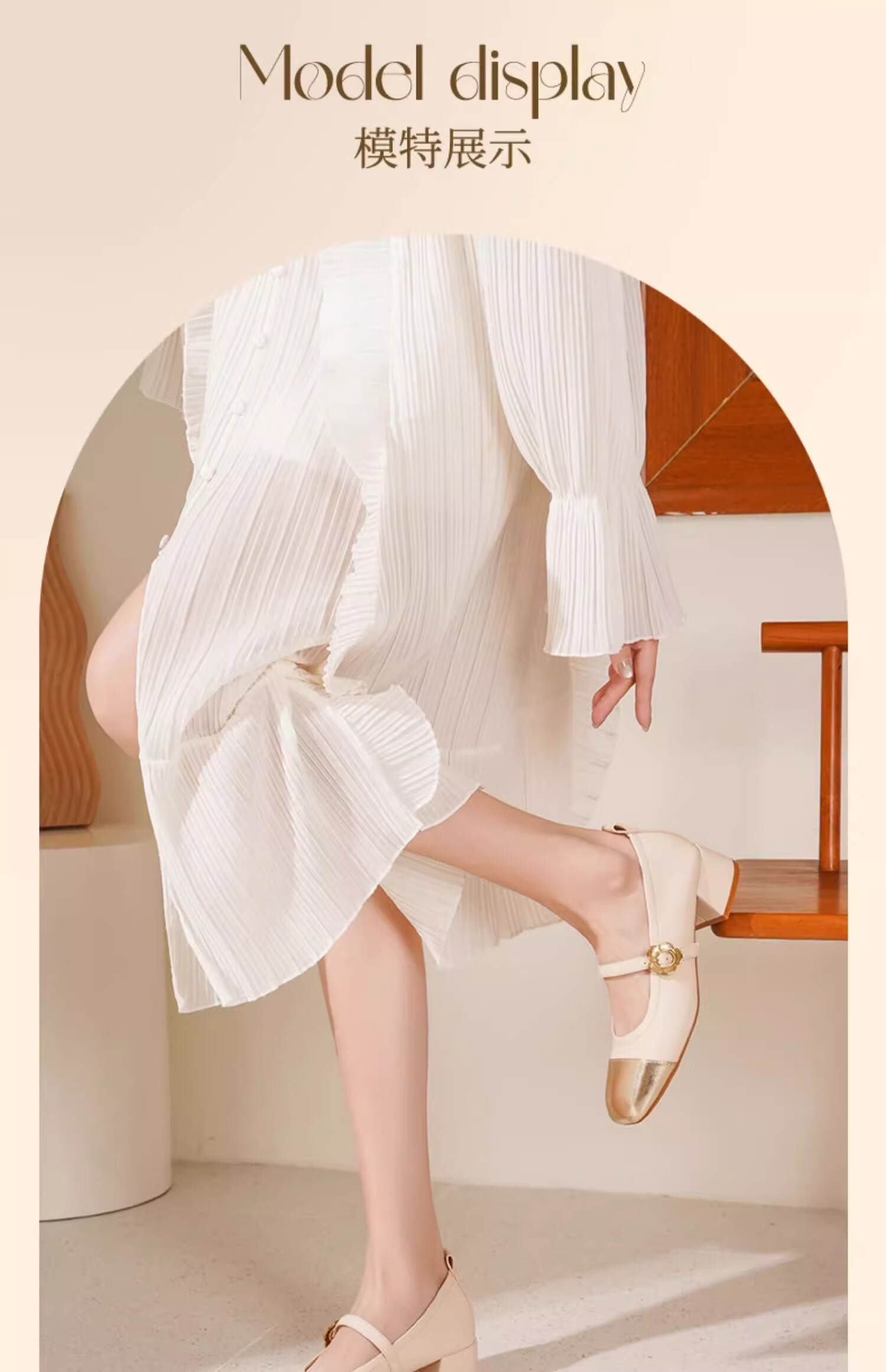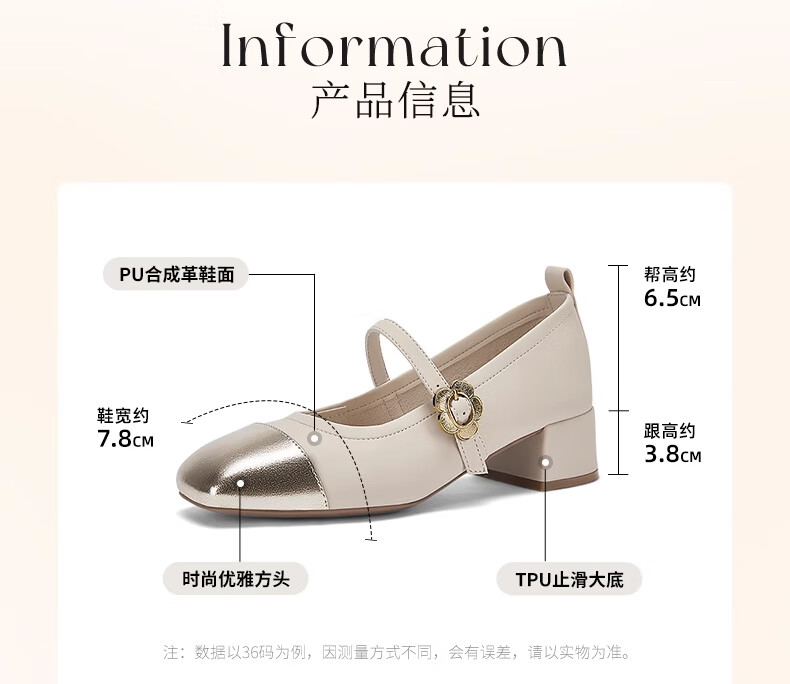 达芙妮玛丽珍女鞋2026春季新款气质花朵新中式拼色单鞋女粗跟高跟鞋JL 米金色【花朵搭扣】 跟高3.8cm 37