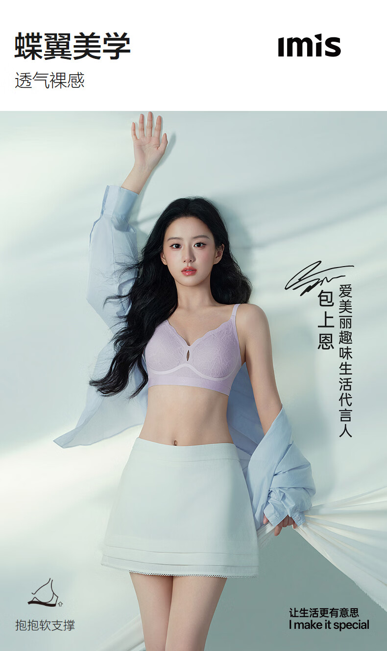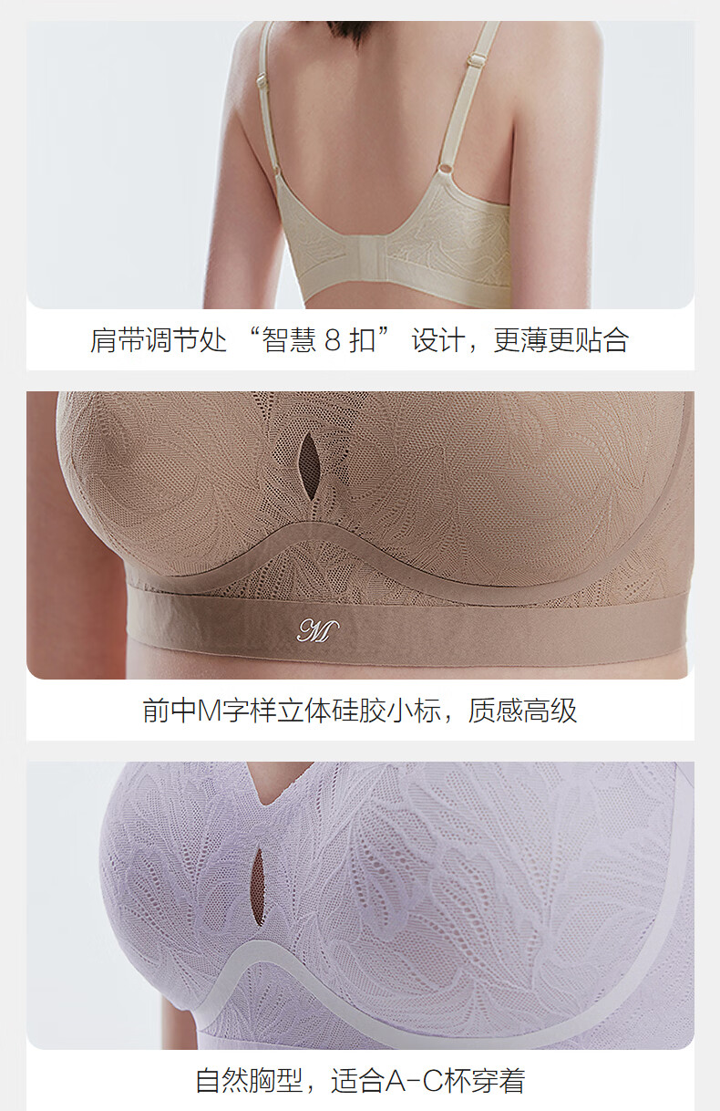 爱美丽【包上恩同款】夹心软支撑蝶翼提托透气薄隐孔杯文胸女IM17CHV2 冰紫LM0 2XL 175