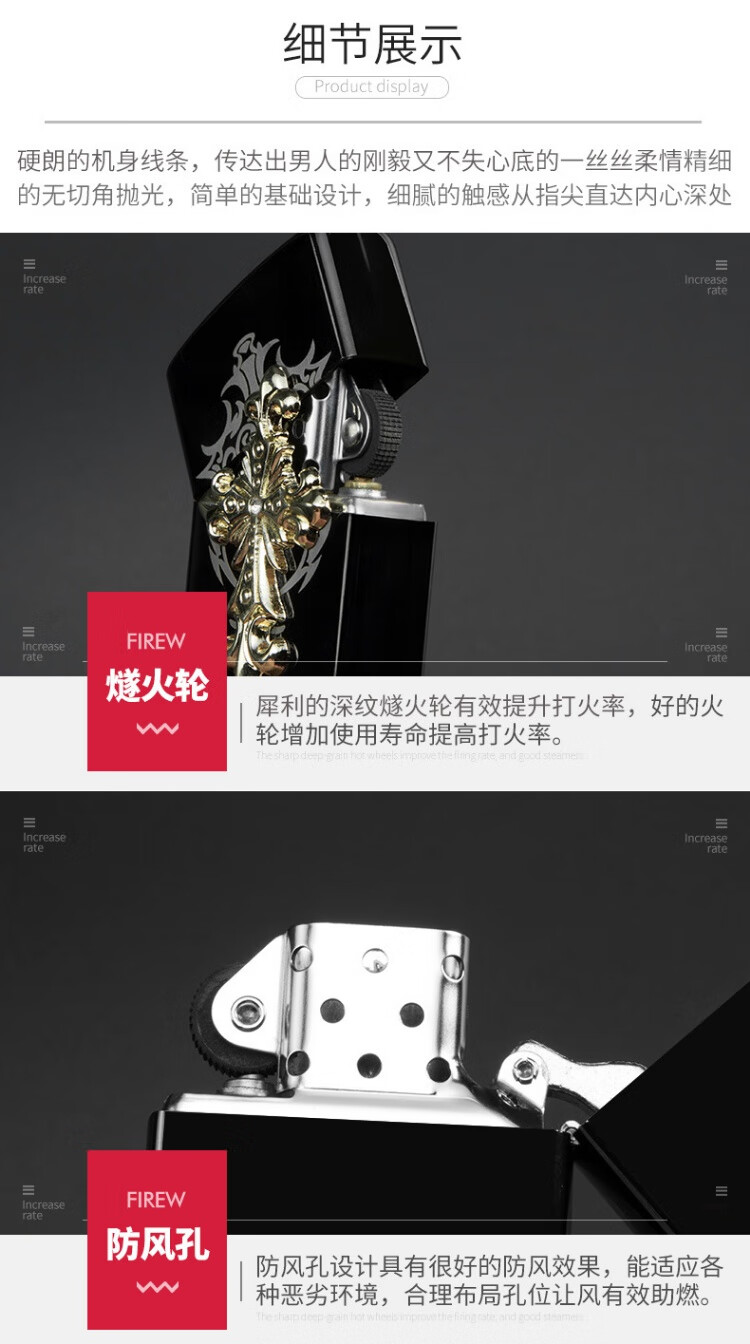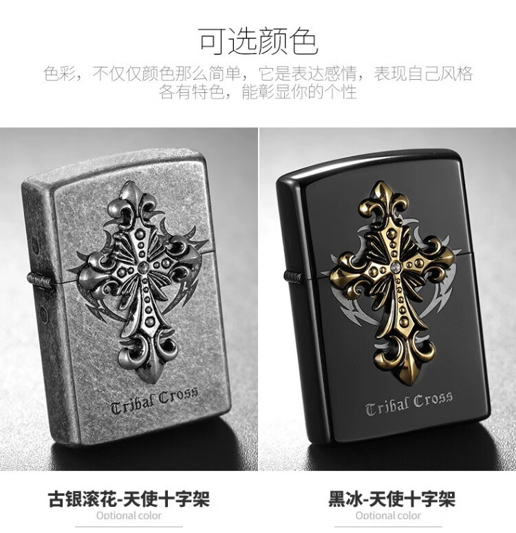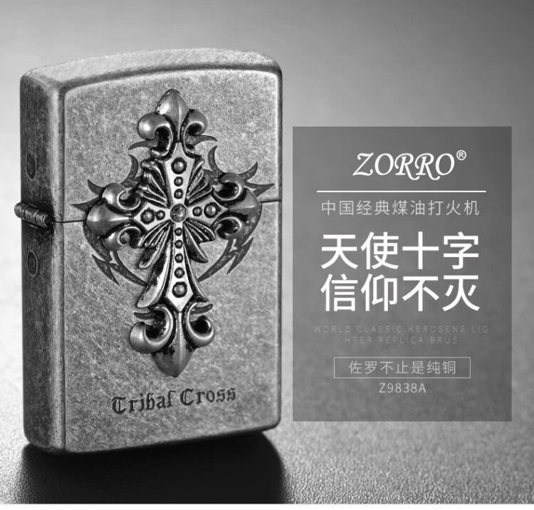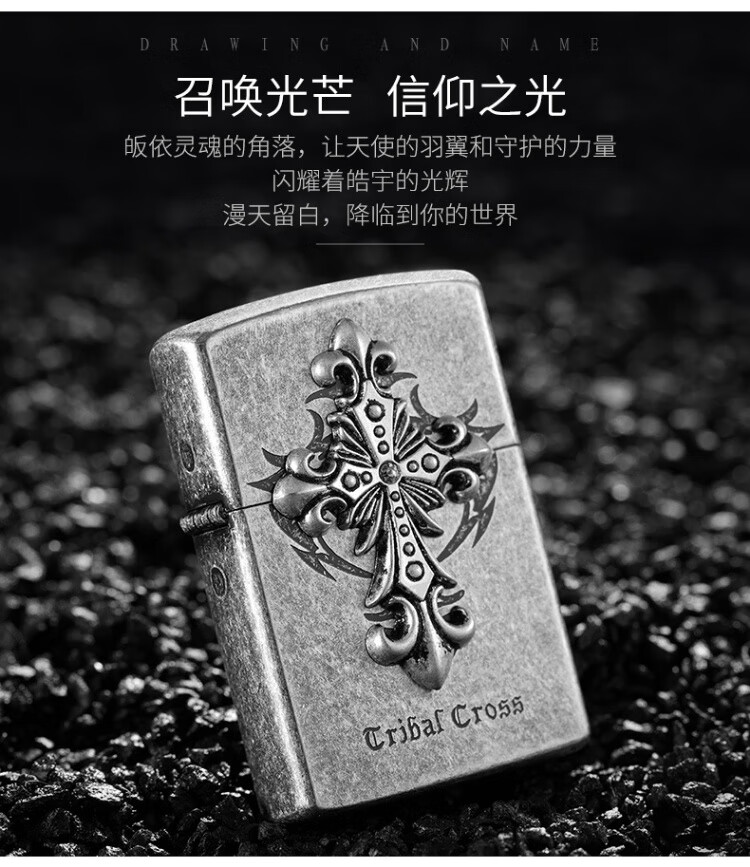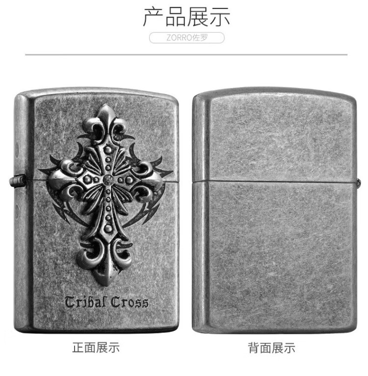 佐罗煤油打火机黄铜贴章十字架防风男士礼盒装创意个性生日礼物 古银十字架(打不着需另购油)