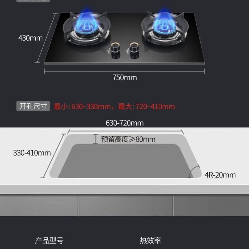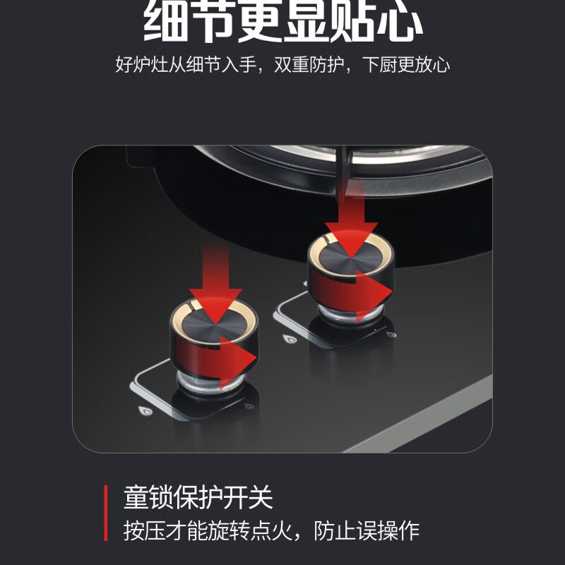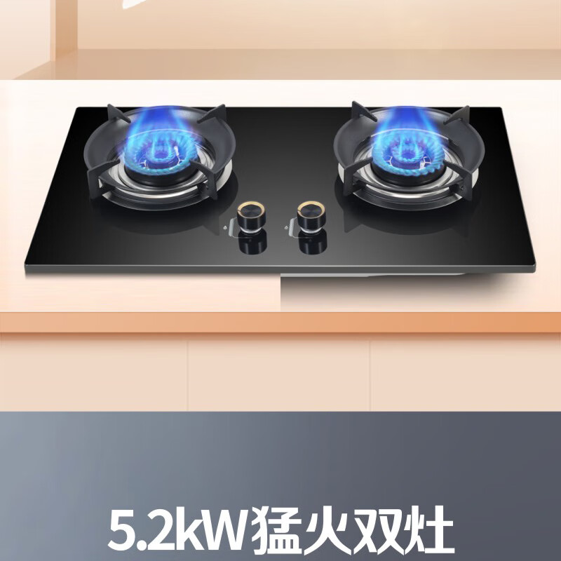 荣胜新品750大面板燃气灶钢化玻璃防爆面板聚能大火力5.2kW猛火节能双灶台嵌入式两用液化气灶天然气灶 天然气丨防爆钢化玻璃面板