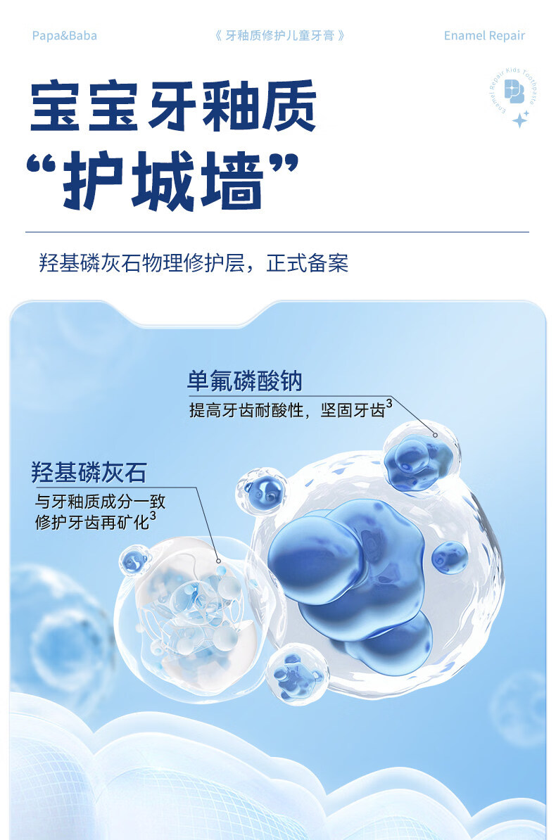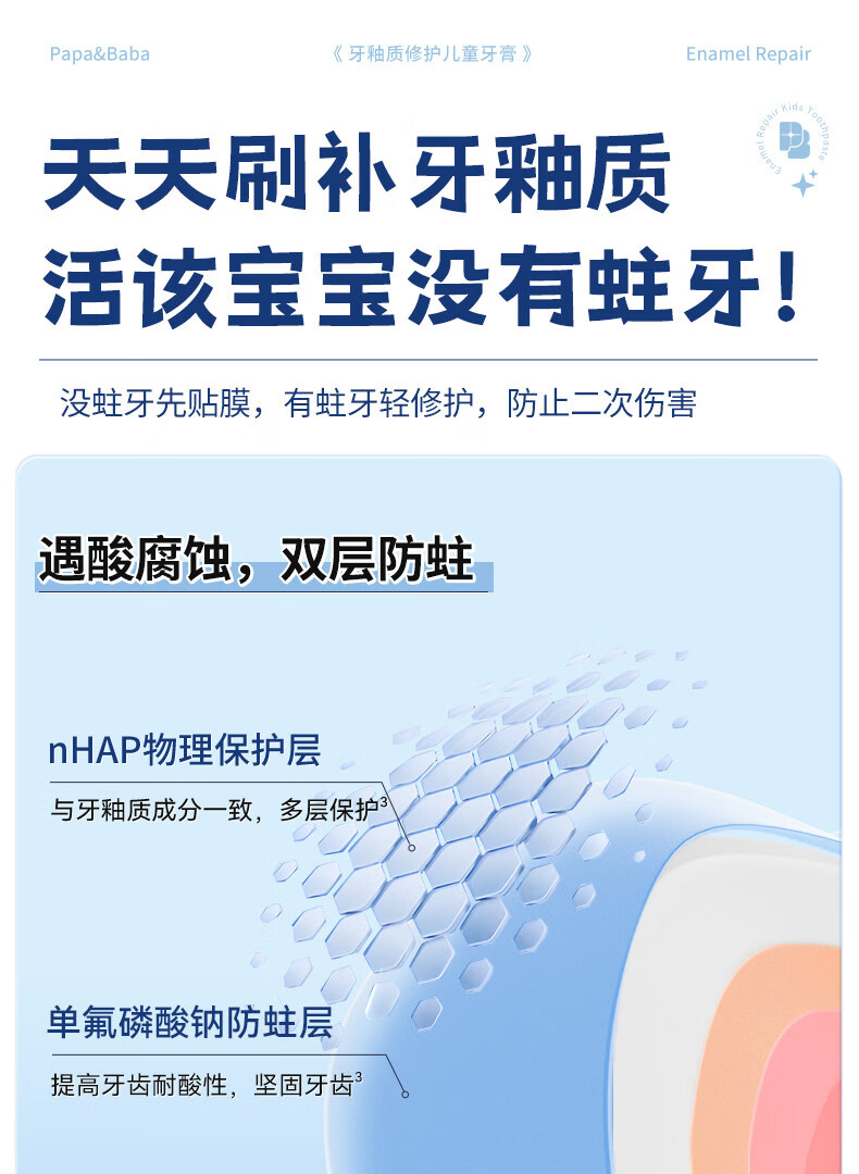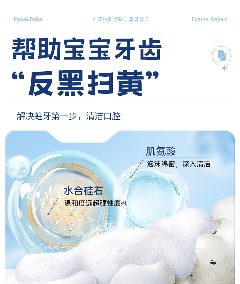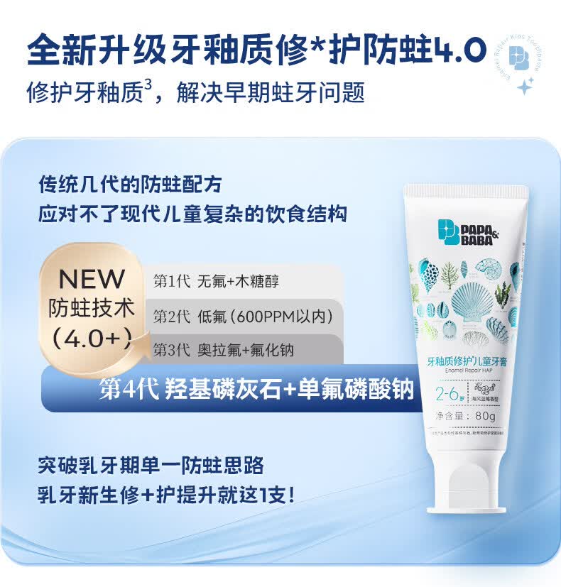 PAPA&BABA泡泡爸爸儿童牙膏修护牙釉质防蛀固齿祛黄呵护口腔护理牙膏 【共160g】2-6岁乳牙期80g*1+小样20g*4